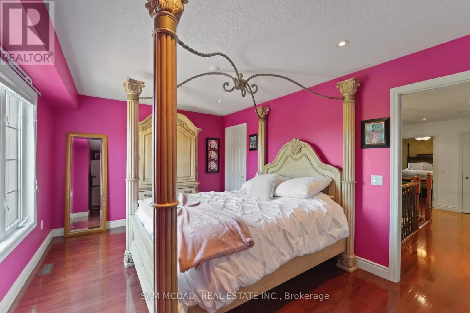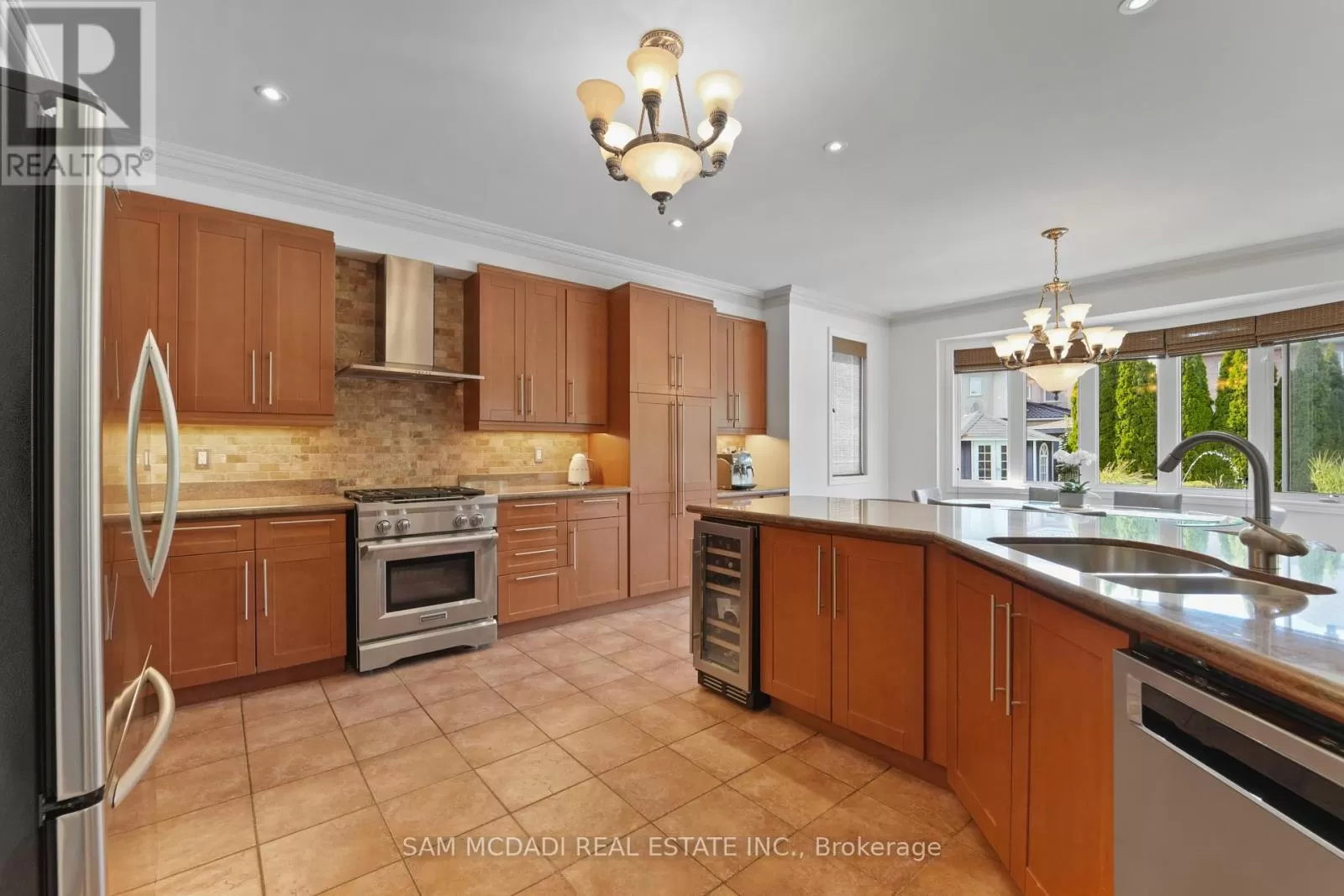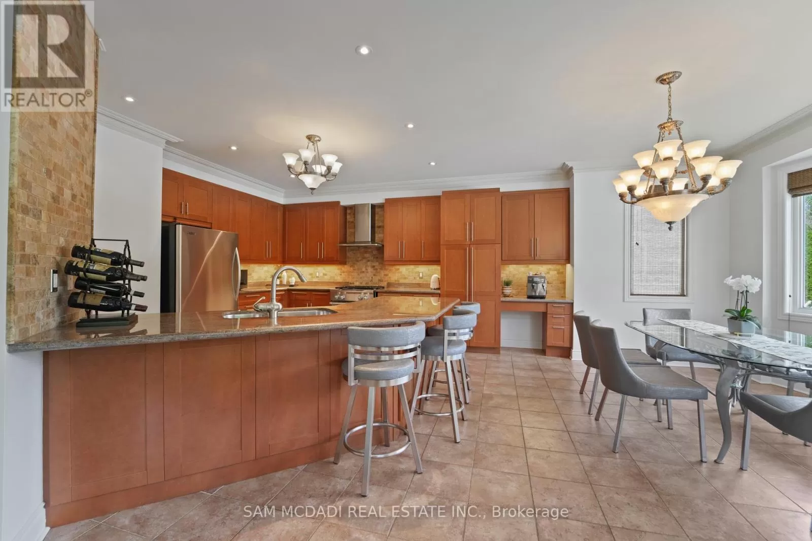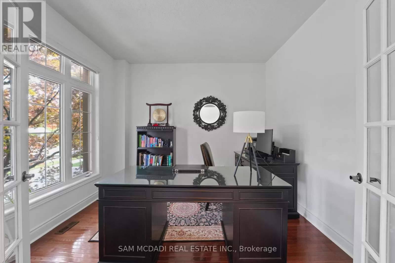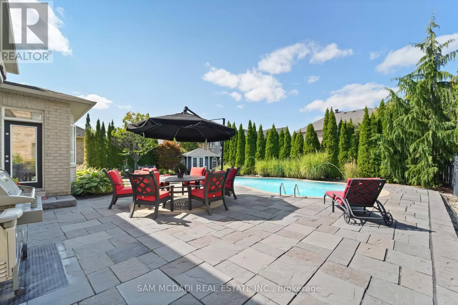 Countryside Dr & Goreway Dr Welcome to this meticulously maintained detached 2-storey home, perfectly situated on a private and exclusive street overlooking a beautiful parkette and green space. Offering 3,534 sq. ft. above grade with 4 bedrooms, 4 bathrooms, main floor office, this residence combines elegance, comfort, and functionality. The exterior is professionally landscaped with mature trees, two serene water features, inground irrigation system, and a stunning saltwater heated pool (3' - 8' depth) with three cascading waterfalls creating your own private backyard oasis. Inside, youll find spacious principal rooms and an open-concept kitchen with a center island, stone countertops, built-in desk, stainless steel appliances, and direct flow into the living area featuring a custom wall unit and cozy gas fireplace. Elegant dining room leading to 2 storey living room perfect for entertaining. Open oak staircase with wrought iron balusters. Hardwood flooring, crown molding, pot lights throughout and custom walk-in closets in all bedrooms elevate the homes style and practicality. The primary retreat boasts a walk-in closet and a luxurious 5-piece ensuite. New countertops in all bathrooms, upgraded hardwood on the second level and new front door/entry way. Security system with cameras. Parking is never an issue with a 3-car tandem garage and room for 5 more on the driveway8 total spaces. This rare offering blends luxury, privacy, and convenience, all in an exceptional setting. (id:27476)