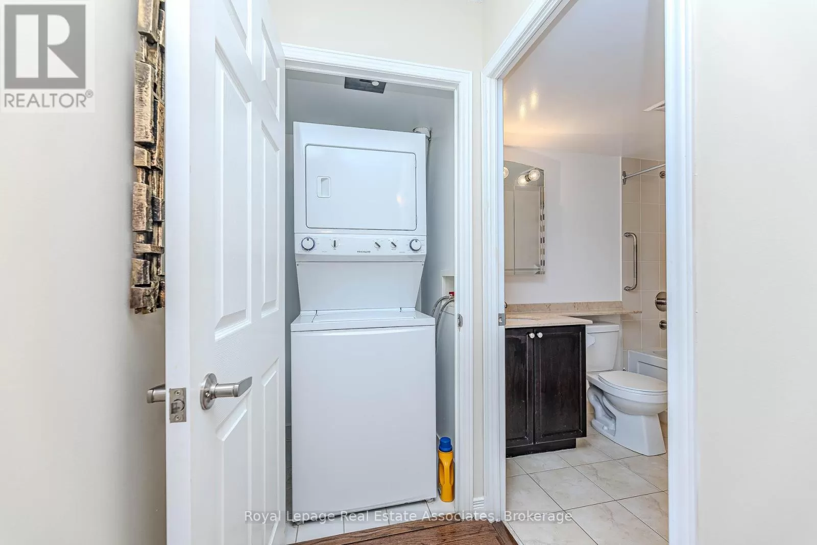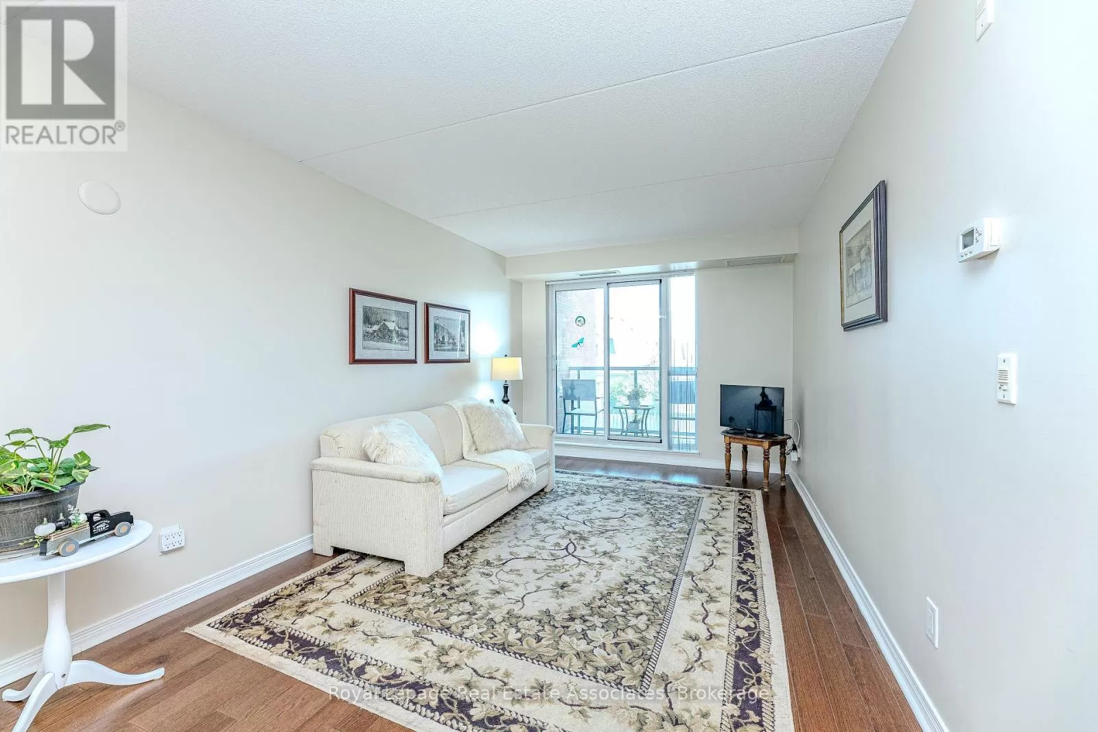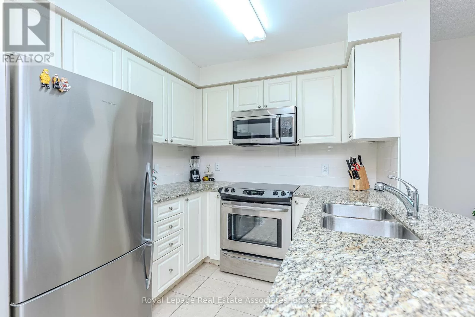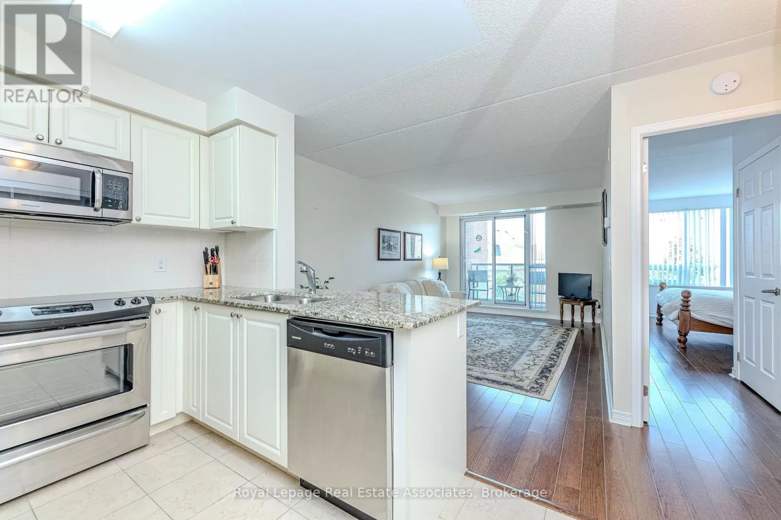 Cross Streets: Great Lakes Dr & Sandalwood. ** Directions: 410 hiway north to sandalwood, turn east and at first lights turn left into Rosedale Community. GREAT OPPORTUNITY HUGE Price Improvement- same price as a small studio - AMAZING VALUE! ROSEDALE VILLAGE GEM -UNIQUE RESORT-STYLE AMENITIES AND GOLF COURSE FOR YOUR OWN EXCLUSIVE USE. This beautifully maintained 1 bedroom, 1 bathroom low rise, adult lifestyle condo offers an ideal blend of comfort, style, and convenience. Bright unit with Eastern Exposure, inviting balcony for your morning coffee or just relaxing. This unit features a full kitchen equipped with granite countertops, modern cabinetry, undermount sink, Stainless Steel appliances: over-the-range microwave, dishwasher, stove and fridge. There is lots of space in the unit for a cozy eat-in area. The unit features lovely engineered flooring throughout and has a bright open living area with a walk-out to the private balcony. The primary bedroom has a walk in closet and large picture window. Other features: Ensuite stackable laundry; Spacious Full 4 pc washroom with granite vanity counter top, undermount sink, and soaker tub. Includes one underground parking space and a secure storage locker. Building amenities include: an amazing main-floor party/activity room, with kitchenette, fireplace, and outdoor patio with BBQ. Exceptional community amenities include: Clubhouse with gymnasium and inground pool, tennis courts, shuffleboard, pickle ball, lawn bowling, billiards and library; let's not forget the 9-hole golf course! No more shoveling snow or cutting grass - just enjoy the comfort, security and convenience in this beautifully landscaped tranquil community.ju (id:27476)