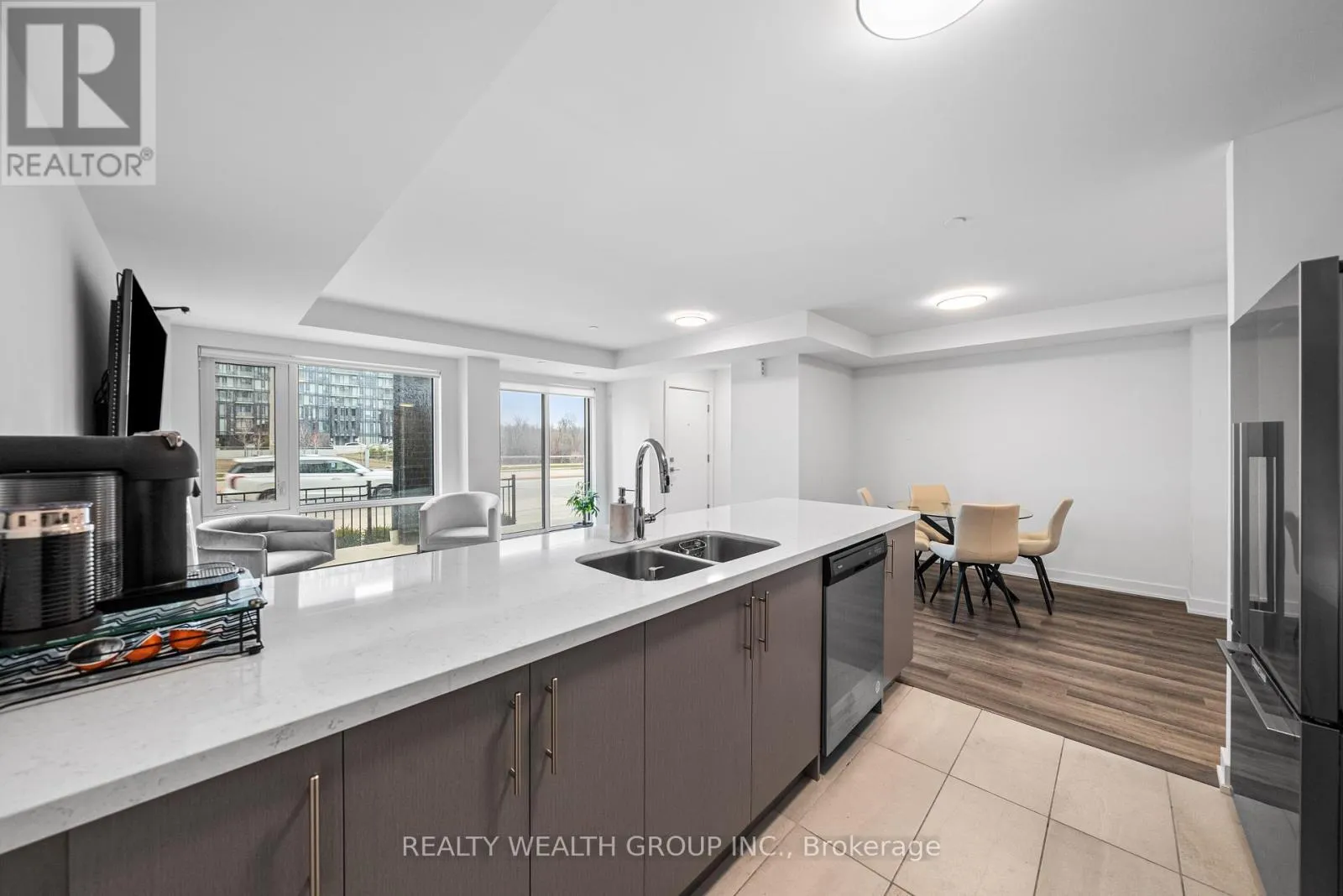 Cross Streets: Sandalwood Pkwy/Veterans Drive. ** Directions: SE. Welcome to this stunning main floor unit in this sought-after Northwest Brampton community! Enjoy the convenience of being within walking distance to all major amenities including the Cassie Campbell Rec Centre, grocery stores, banks, and just a 5-minute drive to Mount Pleasant GO Station. Step inside to a bright and spacious great room that flows into a modern kitchen featuring a massive island, stainless steel appliances, and a dedicated dining area perfect for entertaining. High end finishes throughout and the home boasts two full 4-piece bathrooms, a smart and functional layout, and low maintenance fees. Ideal for first-time buyers or savvy investors. A must-see! (id:27476)