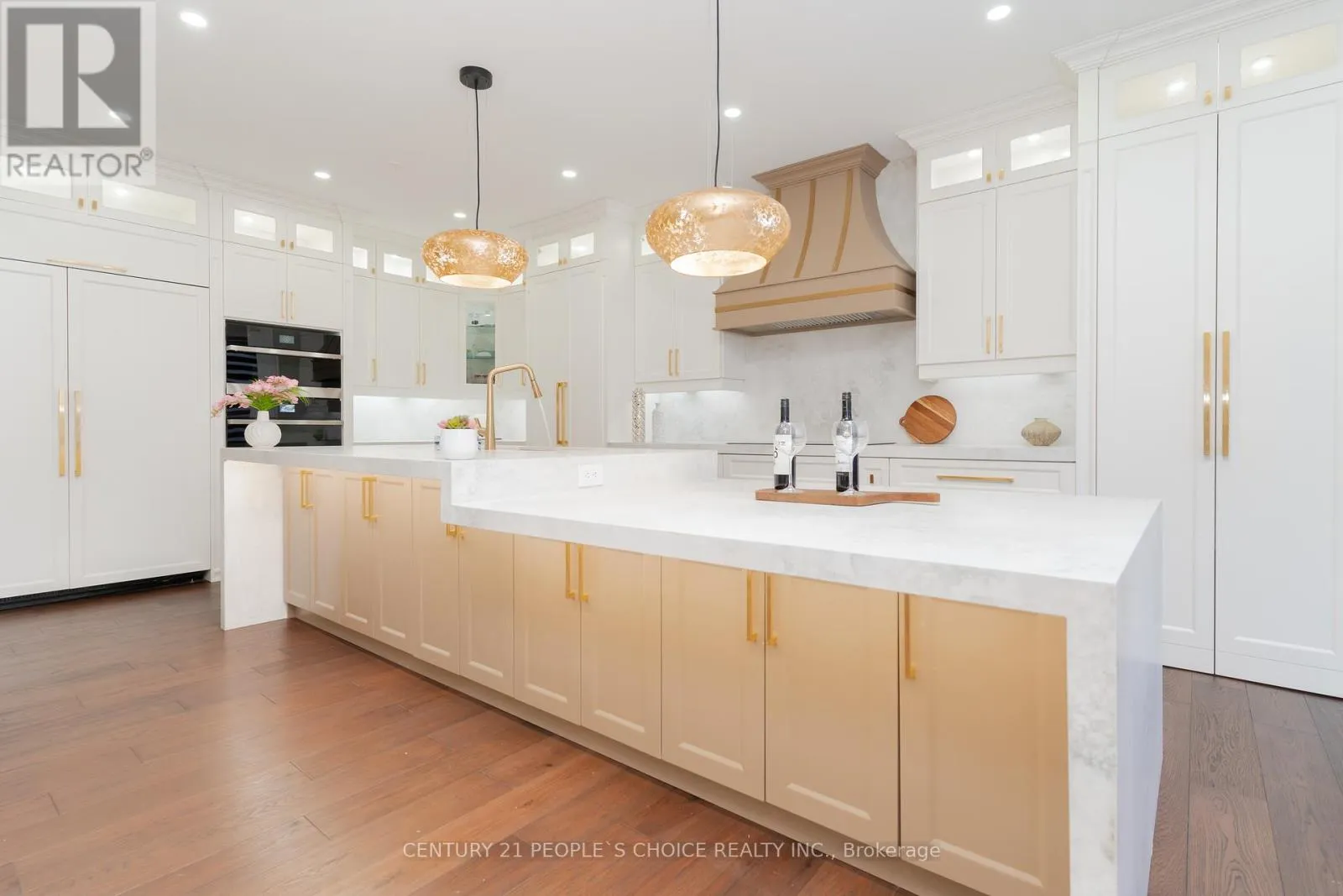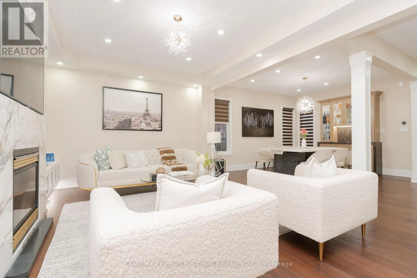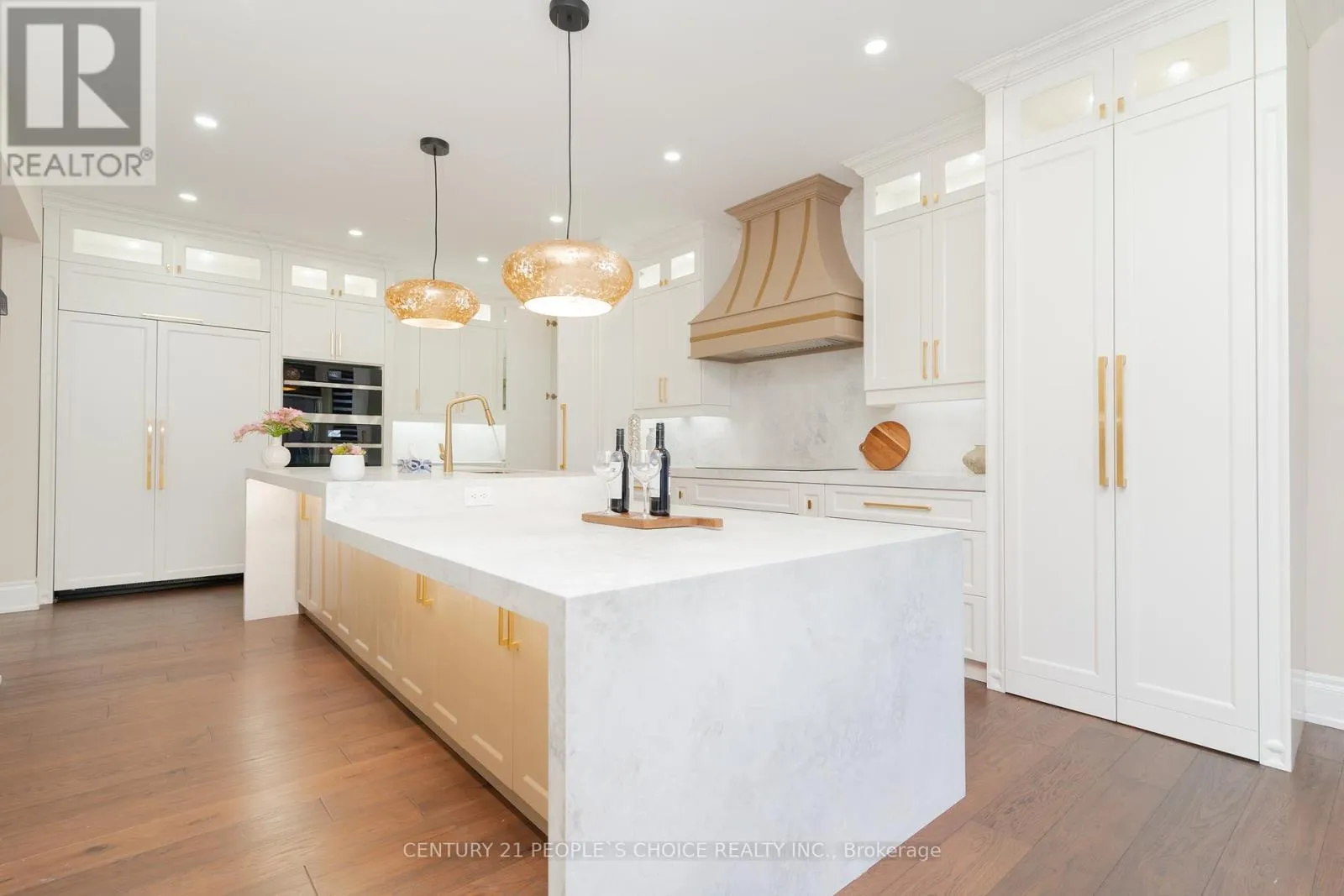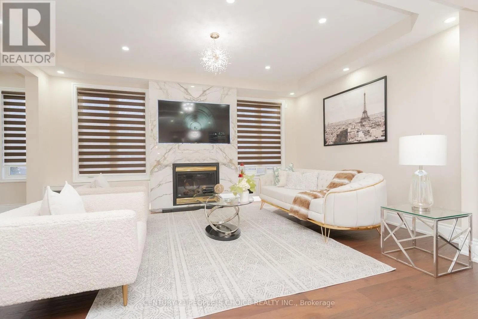 Mcvean Drive & Cottrelle Blvd. Welcome to this beautifully renovated 3,320 sq. ft. "Smart Home" featuring top-tier upgrades throughout. The main floor is enhanced with new engineered hardwood flooring and boasts a brand-new luxury gourmet kitchen, complete with a spacious center island, stunning countertops, and built-in appliances. The kitchen also includes a 48-inch built-in cupboard panel refrigerator and dishwasher. This home offers two kitchens, including a fully equipped spice kitchen, and a well-appointed layout with separate living, dining, and family rooms. Additionally, there is an office on the main floor.The home features smooth ceilings, upgraded baseboards, and a striking porcelain slab gas fireplace. An oak staircase with iron pickets adds a touch of elegance. The master suite offers a private retreat with a luxurious 5-piece ensuite and his-and-her closets. Enjoy convenient garage access directly into the home.The professionally landscaped and fenced yard includes concrete surrounding the house, ensuring both beauty and functionality. A 12x14 ft. gazebo with a marble wall and built-in TV offers the perfect setting for outdoor relaxation. With over $200K in upgrades, this home is front-facing a serene pond, offering both luxury and tranquility. (id:27476)