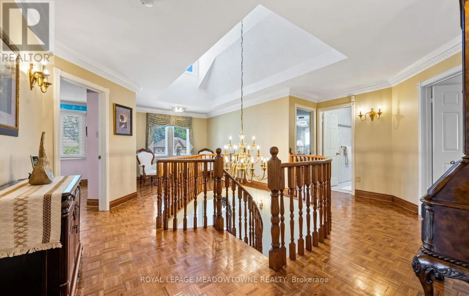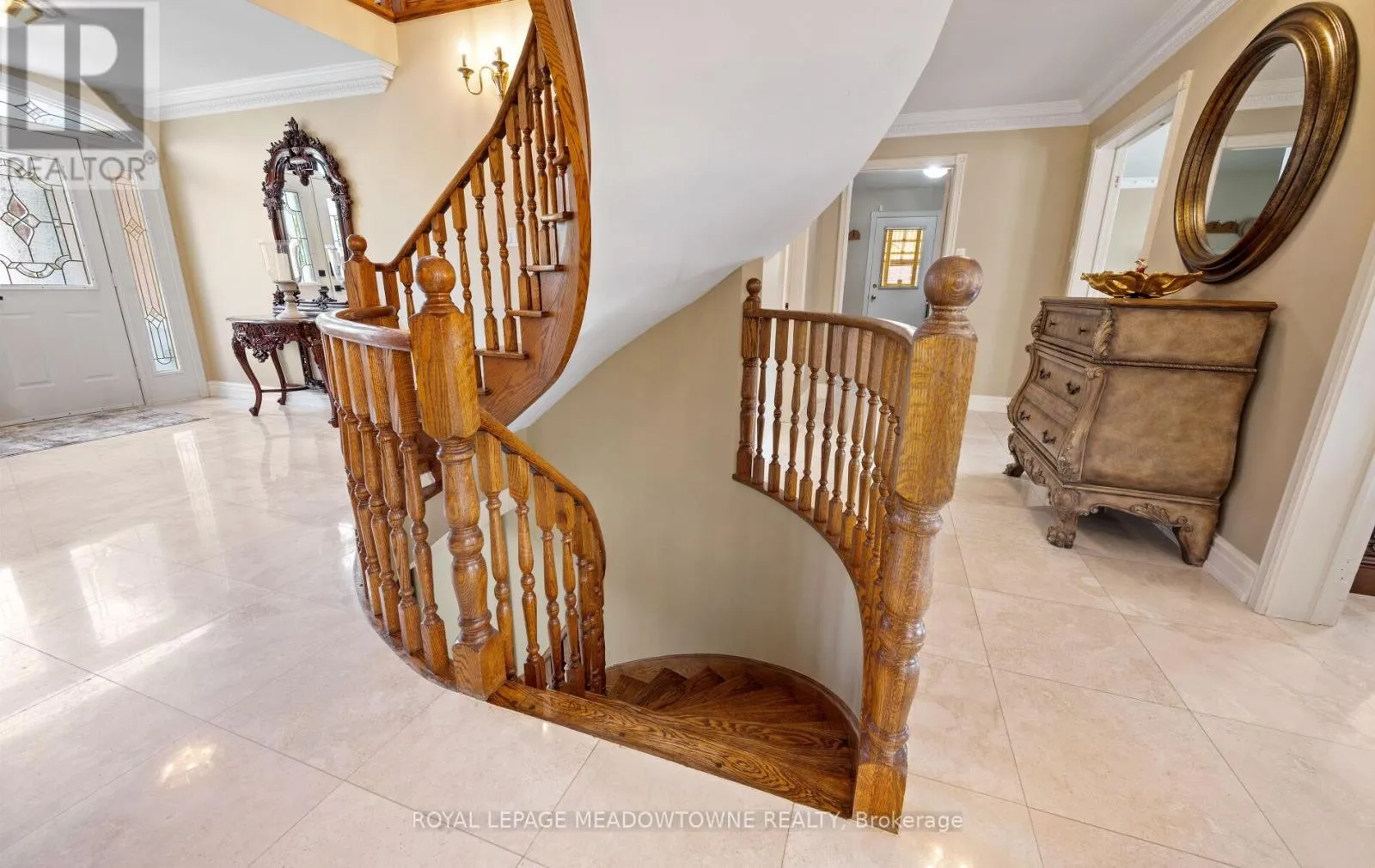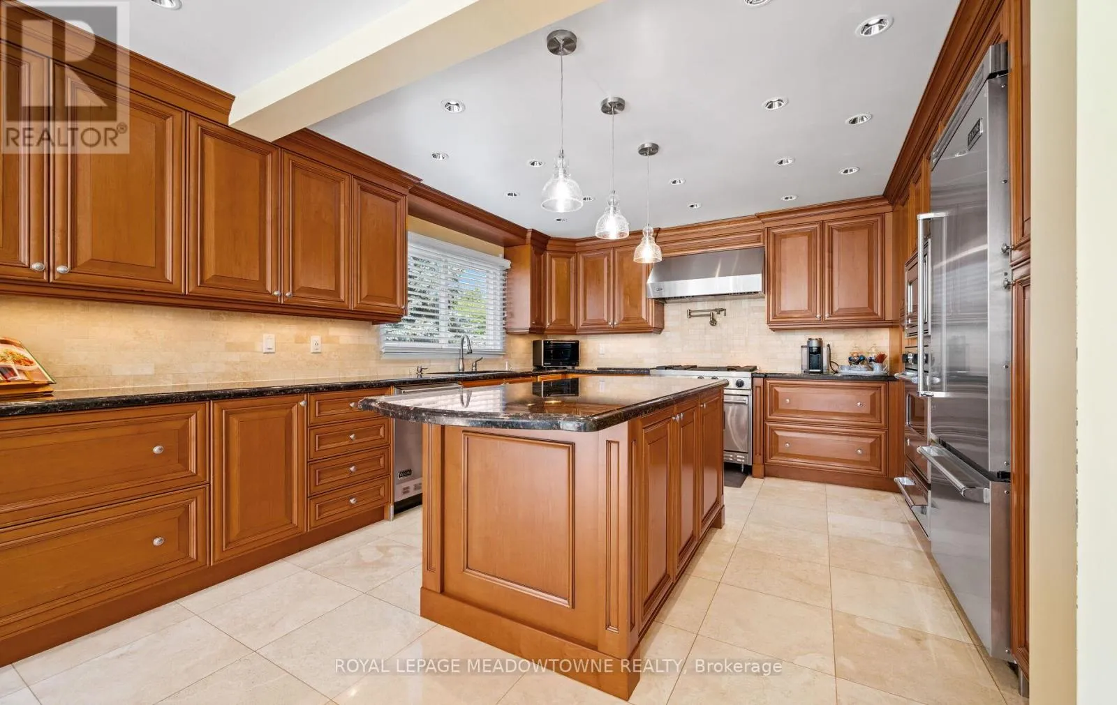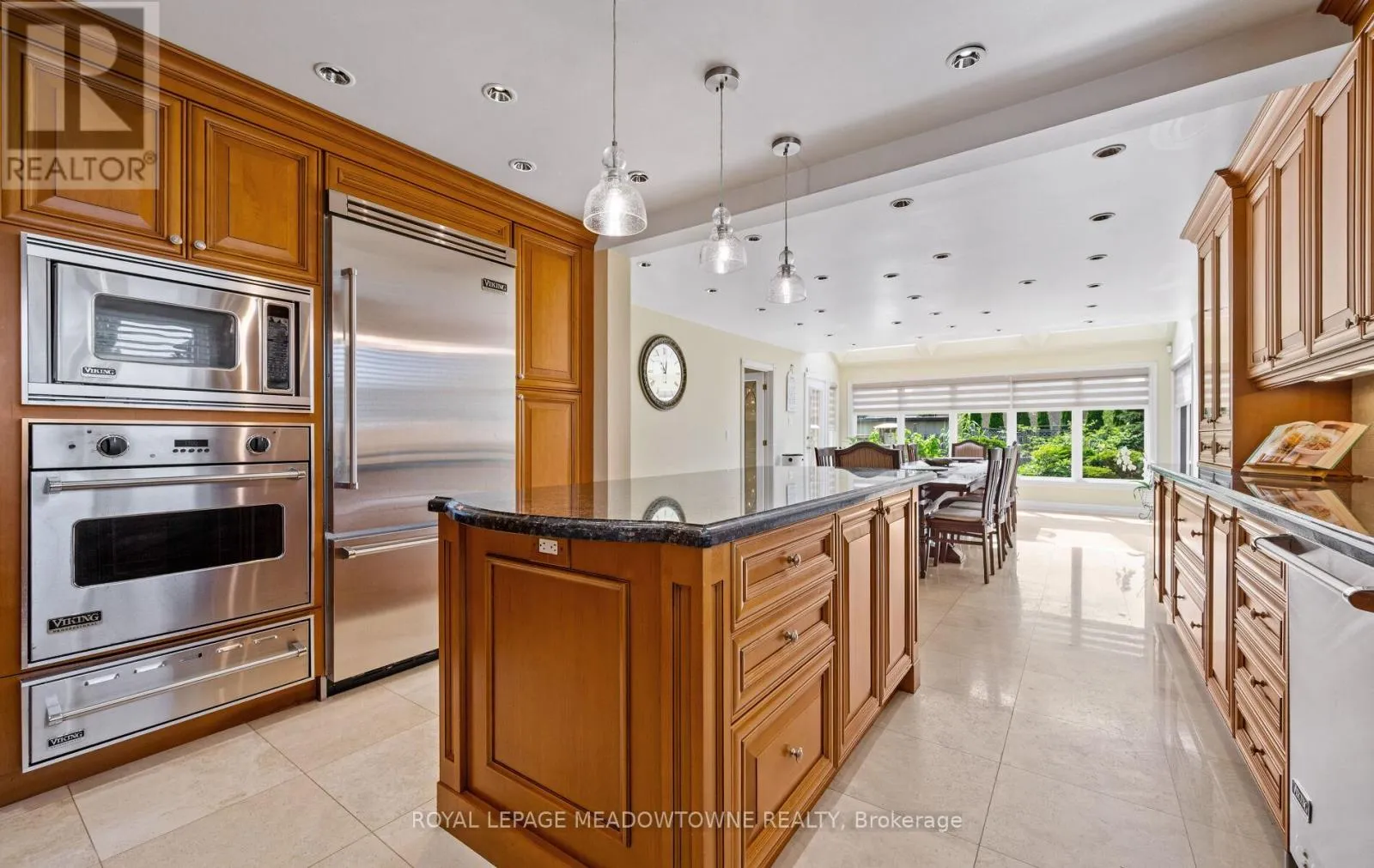 Hurontario Street & Conservation Dr Welcome to Your Forever Home in the Coveted Conservation Drive Area Set on a premium 70+ ft wide lot and surrounded by nature, this custom-built masterpiece offers over 5500 sq. ft. of luxurious living space, a 3-car garage, and parking for 8+ vehicles. The fully landscaped grounds feature a serene, all-season Koi pond complete with a charming footbridge, underground sprinkler system, and a built-in outdoor pizza oven perfect for entertaining in style. Enjoy peace of mind with new garage doors, updated bathroom vanities, a security alarm system, and surveillance cameras already installed. Many windows have also been replaced, reducing future costs and improving efficiency. Inside, discover5 spacious bedrooms, grand natural stone flooring throughout most of the main level, and oversized skylights that bathe the foyer and kitchen in natural sunlight. The chefs kitchen boasts Viking high-end appliances, including a professional-grade hood fan with warming lights, a warming drawer, and generous prep space for the most discerning cook. Elegance meets craftsmanship with detailed plaster crown mouldings, a dramatic chandelier, and thoughtful design throughout. Two staircases lead to a fully finished basement featuring a 5-person sauna, wood-burning fireplace, custom bar, second kitchen, expansive cantina (beneath the garage), and endless storage. Located steps from Loafer's Lake, Heart Lake Rec Centre, and scenic trails, this home offers a lifestyle few can match. Wake up to birdsong, stroll the Etobicoke Creek Trail, or zipline through the trees at Heart Lake Conservation Area nature and community in perfect harmony. This isn't just a home its a sanctuary. (id:27476)