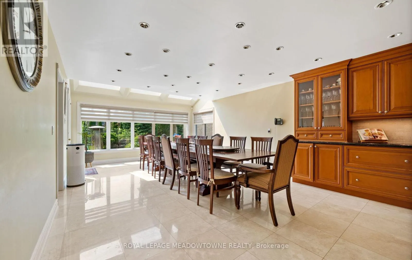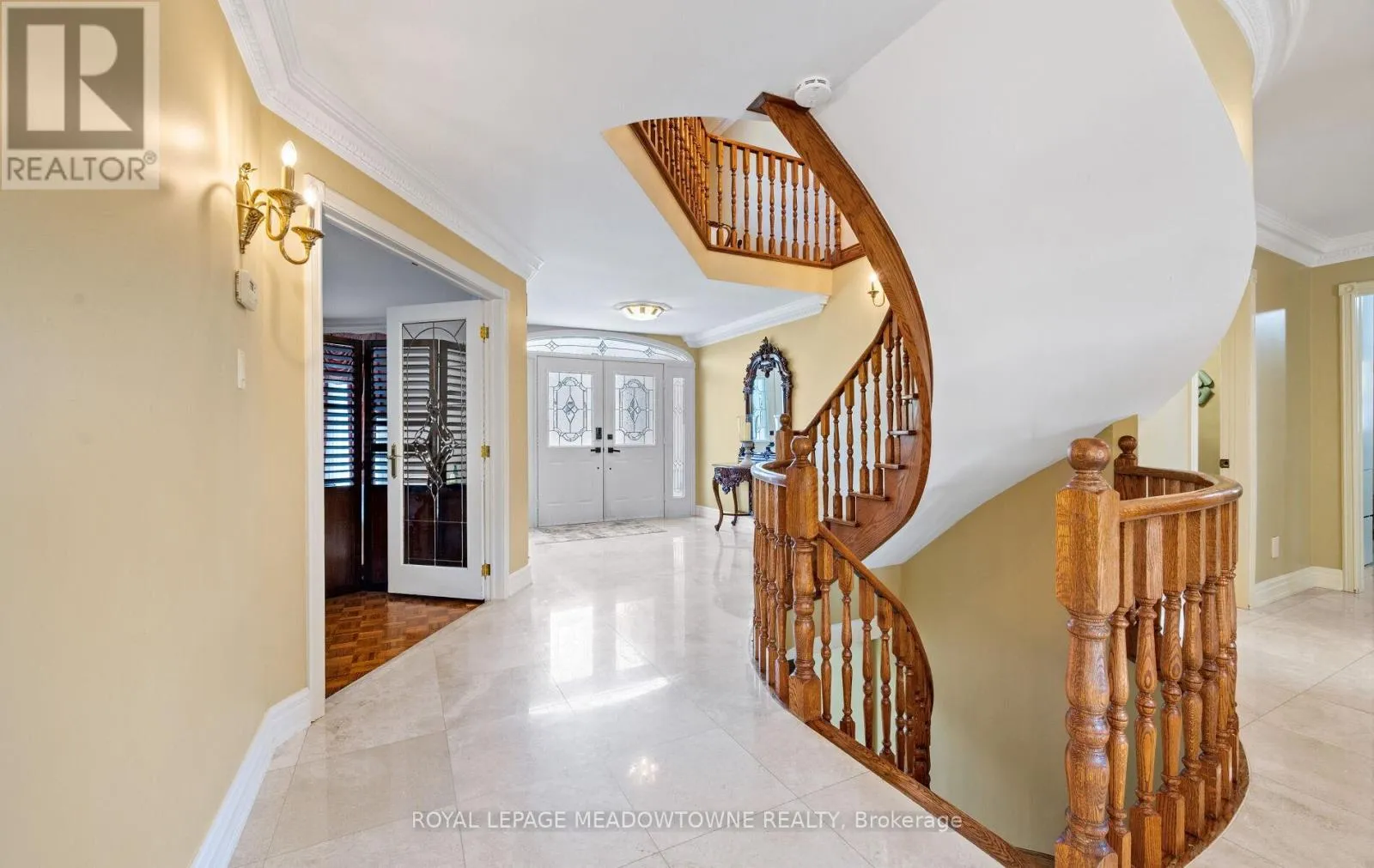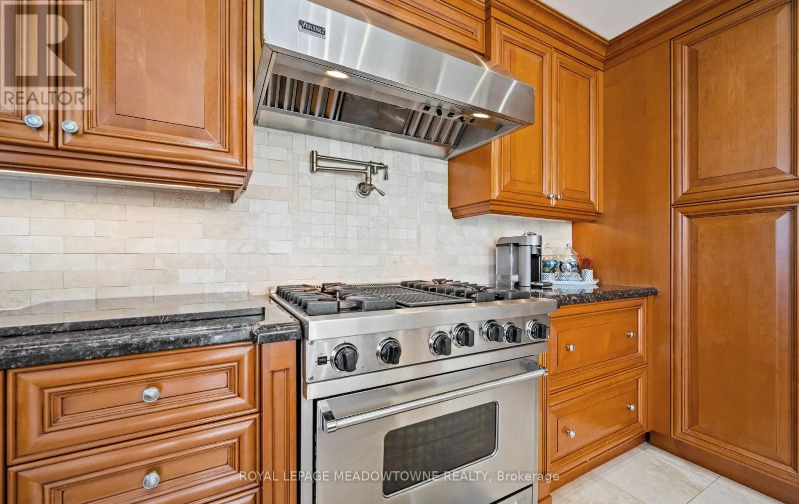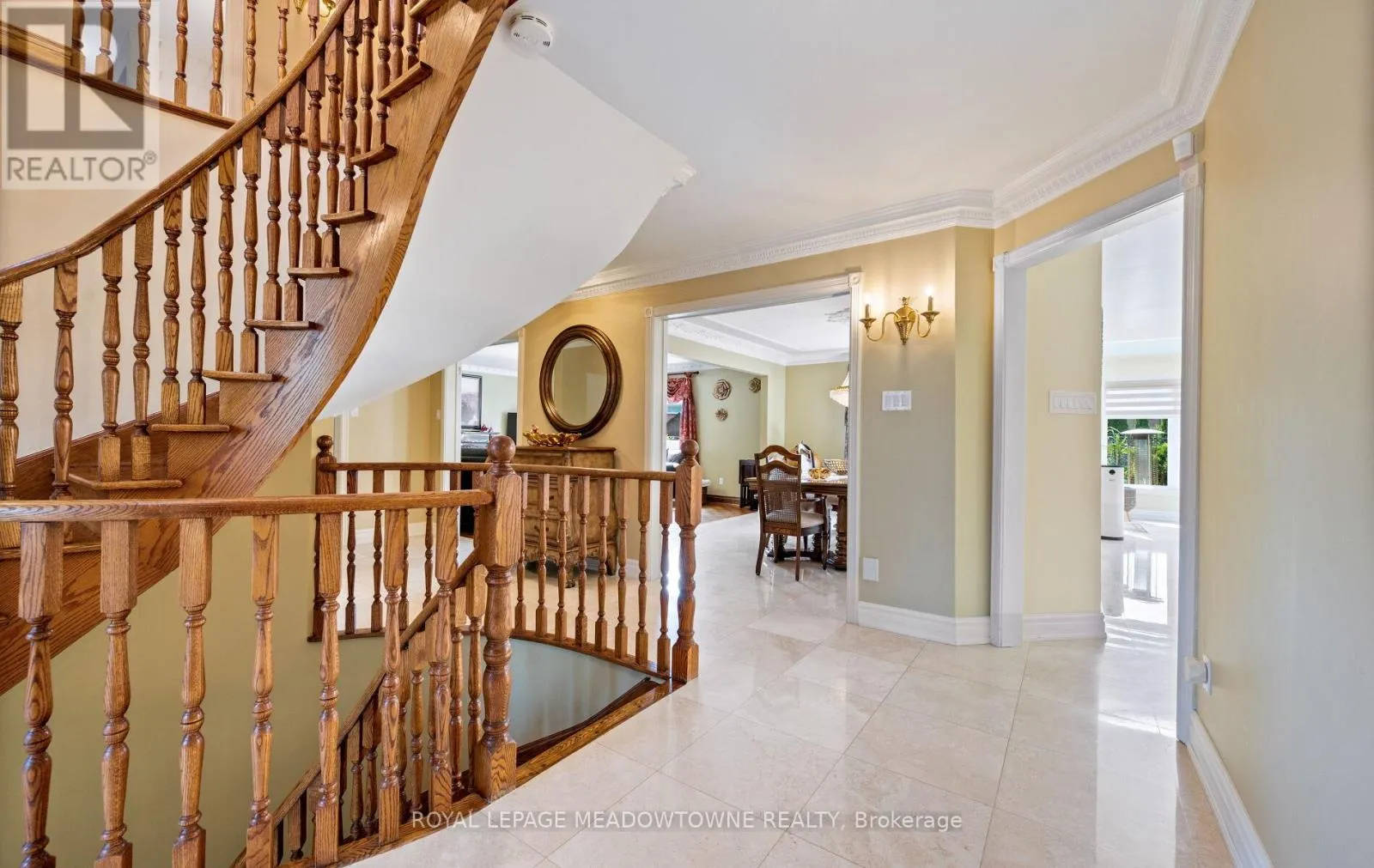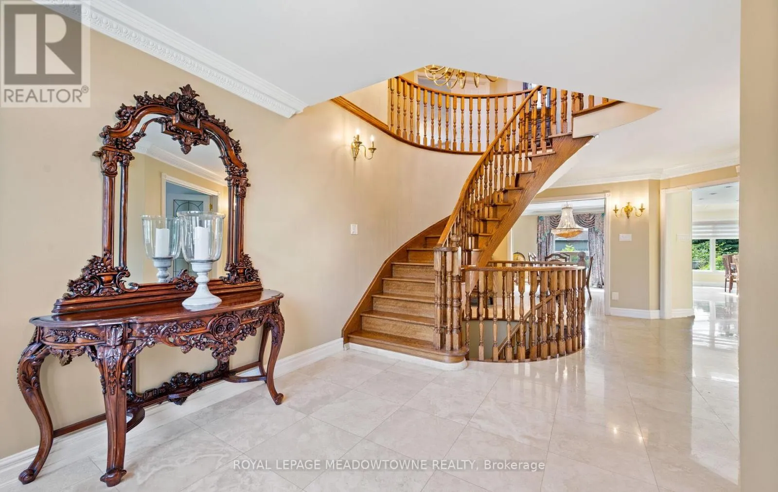Hurontario Street & Conservation Dr Welcome to Your Forever Home in the Coveted Conservation Drive Area Set on a premium 70+ ft wide lot and surrounded by nature, this custom-built masterpiece offers over 5500 sq. ft. of luxurious living space, a 3-car garage, and parking for 8+ vehicles. The fully landscaped grounds feature a serene, all-season Koi pond complete with a charming footbridge, underground sprinkler system, and a built-in outdoor pizza oven perfect for entertaining in style. Enjoy peace of mind with new garage doors, updated bathroom vanities, a security alarm system, and surveillance cameras already installed. Many windows have also been replaced, reducing future costs and improving efficiency. Inside, discover5 spacious bedrooms, grand natural stone flooring throughout most of the main level, and oversized skylights that bathe the foyer and kitchen in natural sunlight. The chefs kitchen boasts Viking high-end appliances, including a professional-grade hood fan with warming lights, a warming drawer, and generous prep space for the most discerning cook. Elegance meets craftsmanship with detailed plaster crown mouldings, a dramatic chandelier, and thoughtful design throughout. Two staircases lead to a fully finished basement featuring a 5-person sauna, wood-burning fireplace, custom bar, second kitchen, expansive cantina (beneath the garage), and endless storage. Located steps from Loafer's Lake, Heart Lake Rec Centre, and scenic trails, this home offers a lifestyle few can match. Wake up to birdsong, stroll the Etobicoke Creek Trail, or zipline through the trees at Heart Lake Conservation Area nature and community in perfect harmony. This isn't just a home its a sanctuary. (id:27476)
