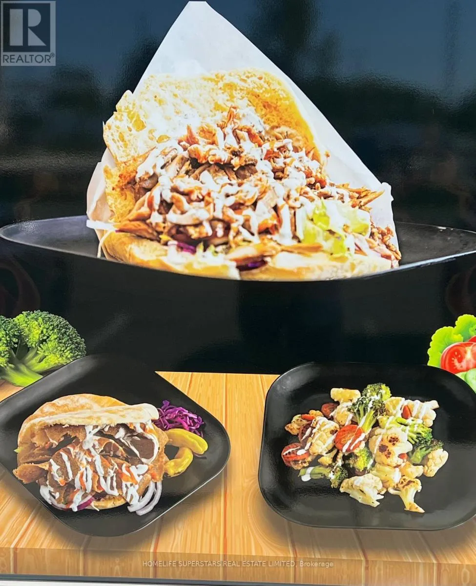 Cross Streets: Mayfield Rd/Mcvean Dr. ** Directions: N. This exceptional Turnkey restaurant offers maximum exposure and steady customer potential. Ample front parking makes it highly accessible for dine-in guests and takeout traffic, while its prime position in the area ensures a consistent flow of customers from surrounding retail and dense residential neighborhoods. Fully renovated throughout, the 900sq.ft. Dining space is bright and spacious, with seating for 22. The professionally designed kitchen is equipped with fully functional equipment, a 12-ft exhaust hood, 2 Burner Stove, 1ft. Flat Grill, 1 Fryer, 2 Shawarma Grill, 1 Electric Shawarma Grill, walk-in freezer and extensive prep areas, making it suitable for any cuisine concept, whether continuing as a quick-service restaurant or rebranding into a new specialty. Lease 5 + 5 Rent $4739.39 with TMI and HST .This versatile opportunity is ideal for seasoned restaurateurs looking to expand their brand or investors seeking a high-traffic, ready-to-go business. (id:27476)