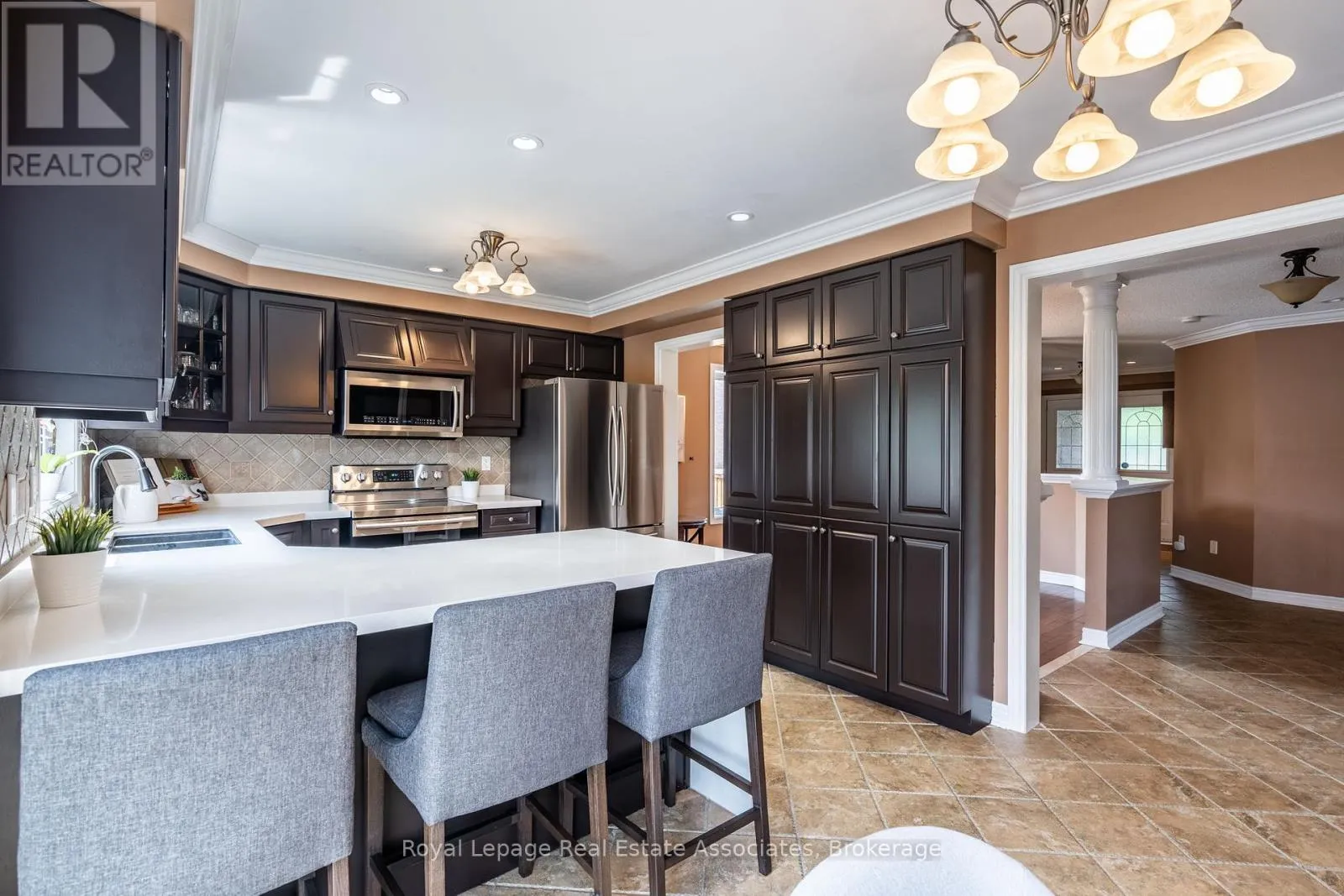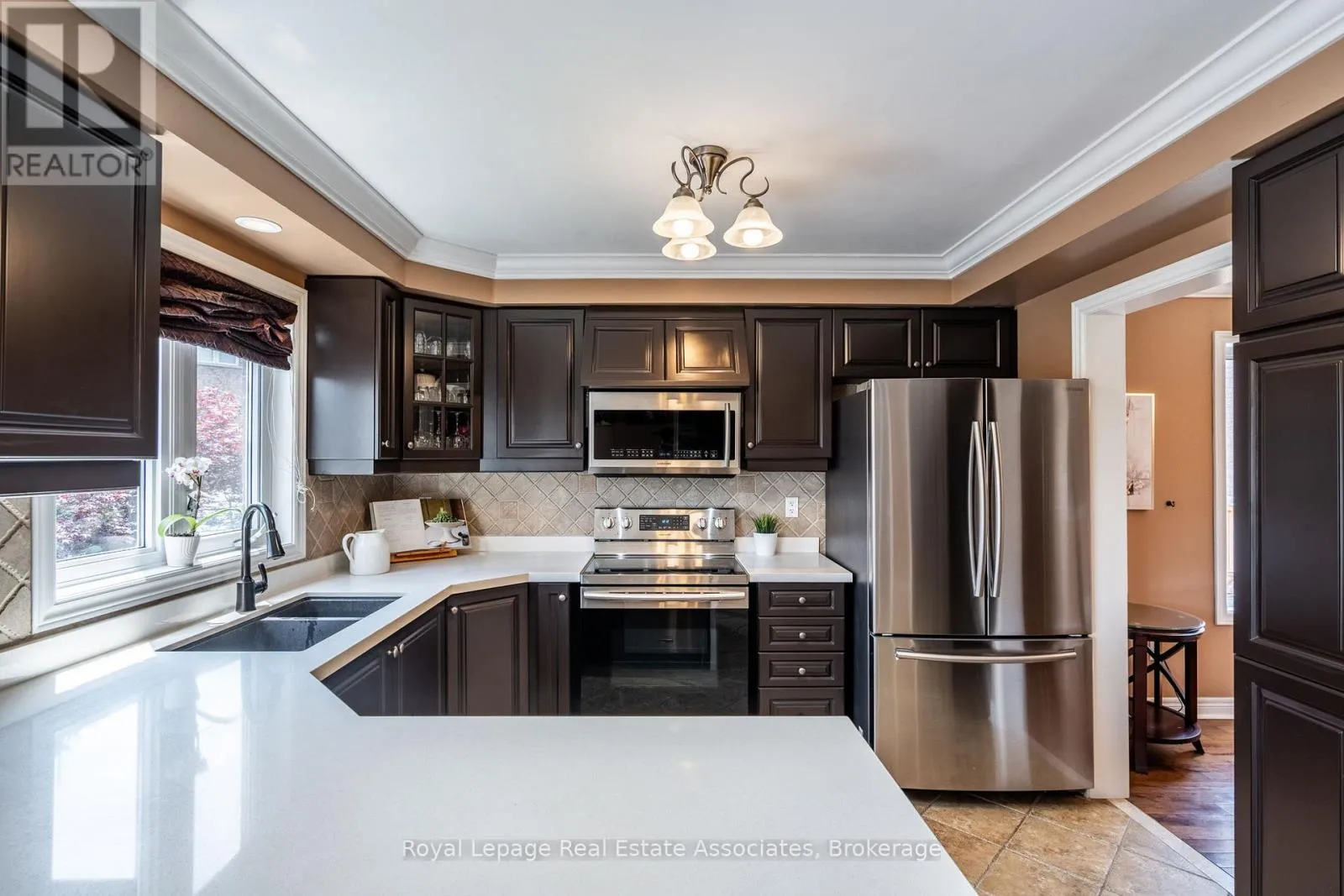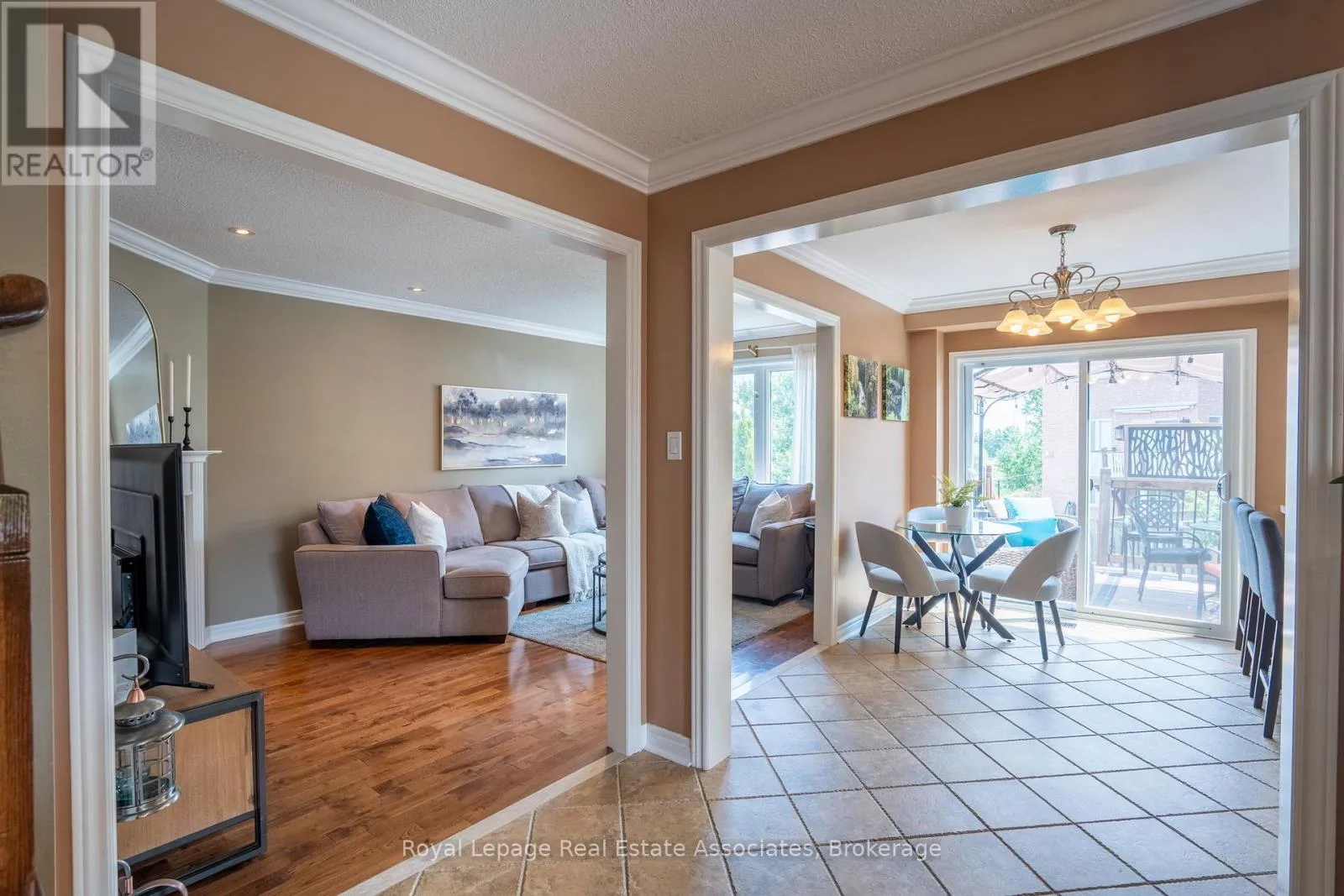 Harwood Rd / Sandyside Cres Welcome to 16 Sandyside Crescent, located in the sought-after Meadows of Fletchers Creek! This stunning 4 bedroom, 2.5bathroom home is filled with pride of ownership and nestled on a beautifully landscaped lot that backs onto a serene ravine with no rear neighbours. Step inside to Italian porcelain tiles that carry through the foyer, powder room, and into the chef-inspired kitchen. The living and dining areas feature rich hardwood flooring, perfect for both entertaining and relaxing. The upgraded kitchen is a showstopper with stainless steel appliances, quartz countertops, an undermount granite sink, and a stylish breakfast bar for extra seating. A new patio door leads to a raised deck overlooking the lush, private backyard oasis. Upstairs, you'll find four spacious bedrooms, including a serene primary suite with a spa-like ensuite. All bathrooms are thoughtfully finished with solid oak vanities. And there's more! The walkout basement is a hidden gem with endless possibilities. Whether you're envisioning an income-generating suite, space for multi-generational living, or a personalized retreat like a home gym, theatre, kids playroom, or chill pad, this space is ready for your vision. This is the one you've been waiting for. A perfect blend of style, comfort, and natural beauty! Kitchen updated '17, washer & dryer '19, appliances '20-21, laundry updated '23, windows '25, furnace &A/C ' 18, patio door '25 and roof '17. (id:27476)