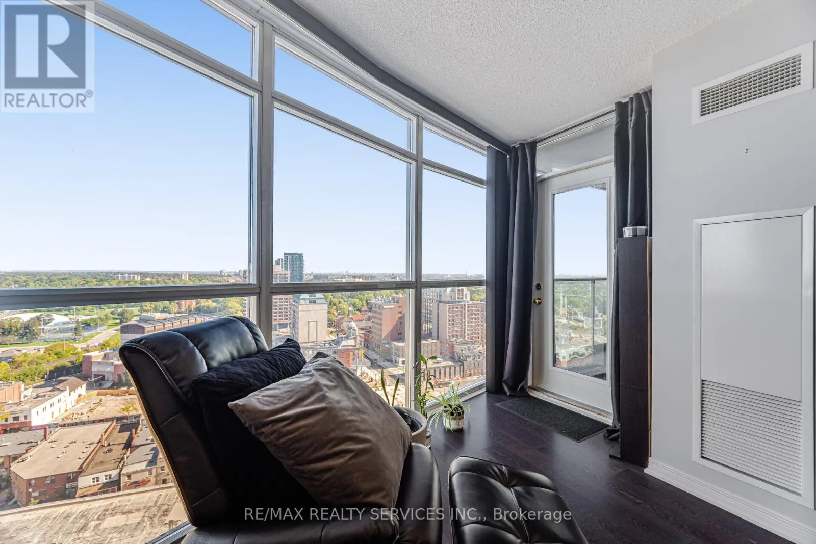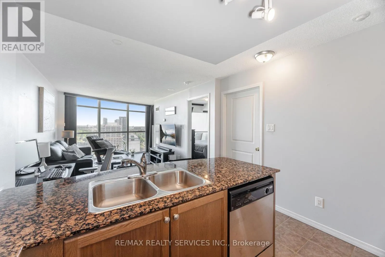 Cross Streets: Main and Queen. ** Directions: North of Queen. Fabulous opportunity to own your own home! The prestigious Renaissance in Historic Downtown Brampton. Amazing views from high up and a very private balcony. This suite is meticulously kept and truly ready to move in. Floor to ceiling windows flood the space with natural light, creating an open, airy feel. The kitchen features granite counters, stainless steel appliances and a convenient breakfast bar. Ample bedroom with a huge window and full closet. Ensuite laundry. Located a very short walk to the GO train terminal making it a commuter's dream. Gage Park, City Hall, PAMA, Farmers Market and restaurants steps away. The building features an attentive 24-hour concierge , 3rd floor terrace with seating and communal BBQ's, Indoor pool, sauna, gym, party room and so much more! (id:27476)