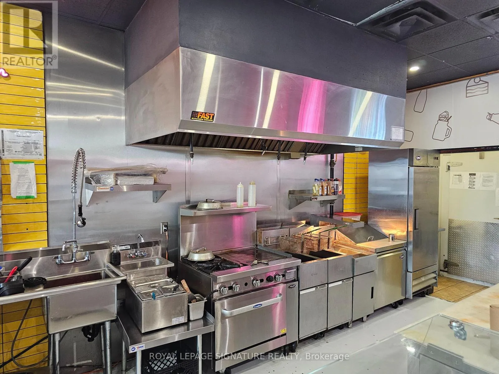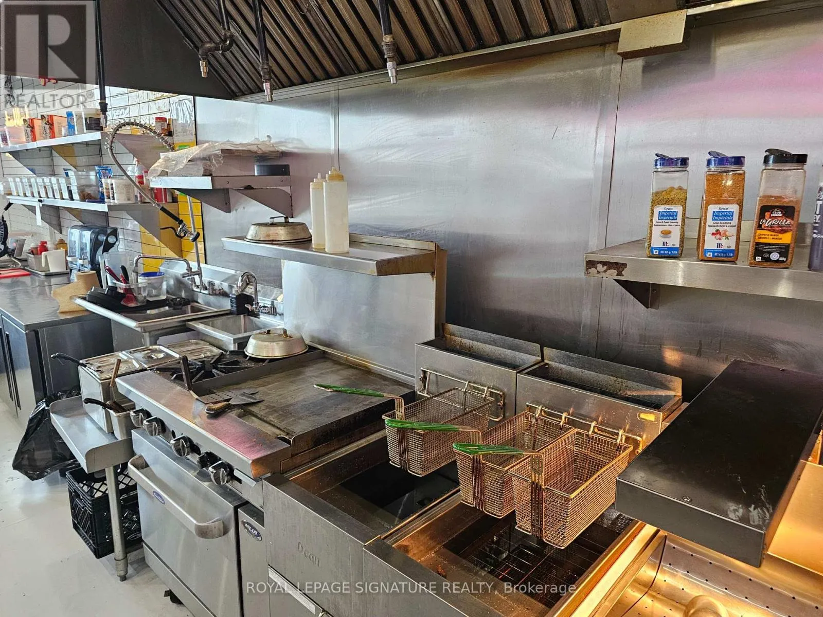 Queen St E & Airport Rd This turnkey quick service restaurant is located in a prime Brampton location near the airport, offering excellent exposure and accessibility. The space is available for rebranding into a new concept, cuisine, or franchise, with a wide array of uses open to operators looking for a proven layout in a high-traffic area. The 1,490 sq. ft. unit is designed with efficiency in mind, making it ideal for minimizing labour costs while maximizing output. It comes fully equipped with an 8-ft commercial hood, two walk-in coolers, and high-end equipment, providing everything needed to launch operations quickly and smoothly. With a very competitive lease rate of $5,666 gross rent including TMI and 5+ 5 years remaining, this is a strong opportunity for an operator seeking a flexible and well-positioned space. Please do not go direct or speak to staff or ownership. (id:27476)