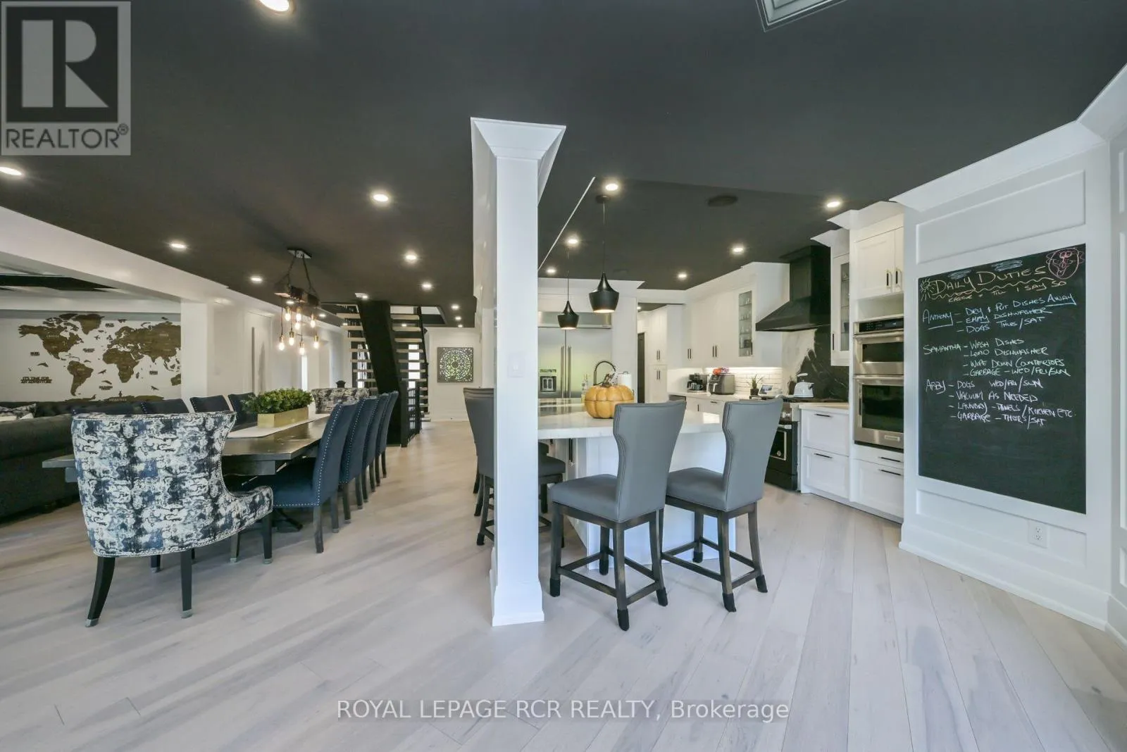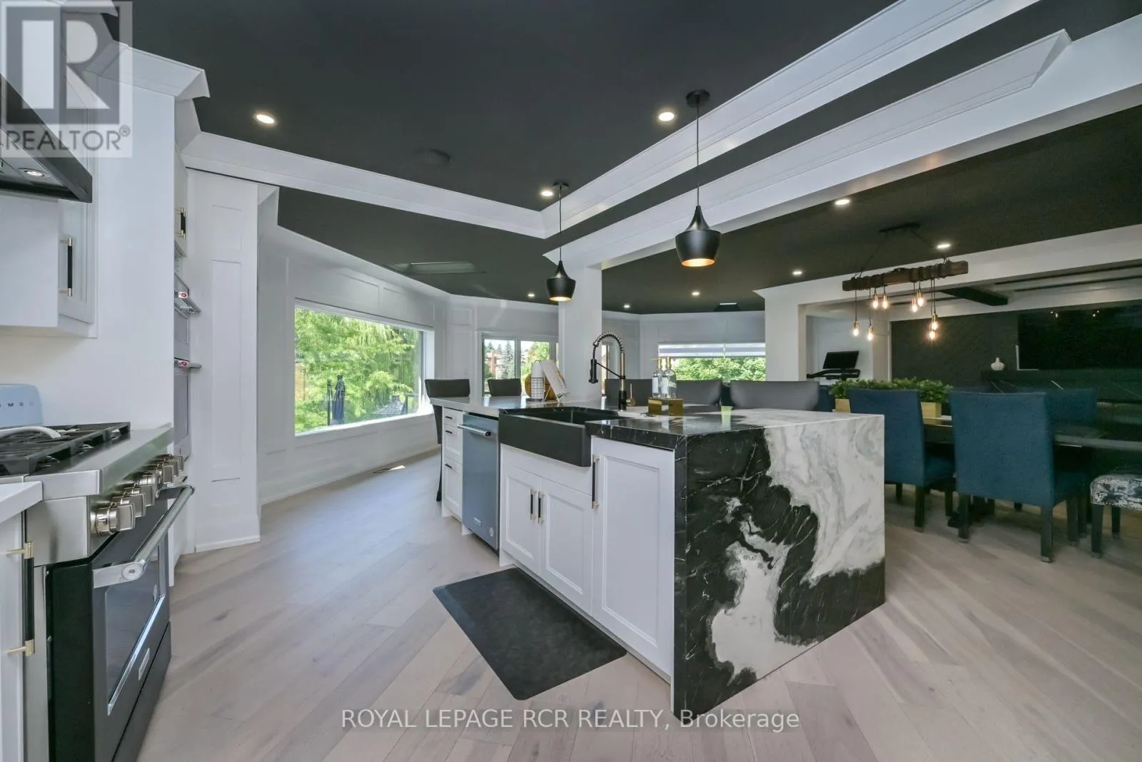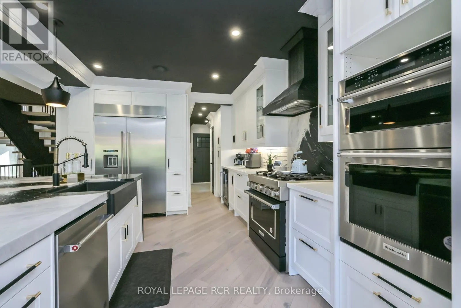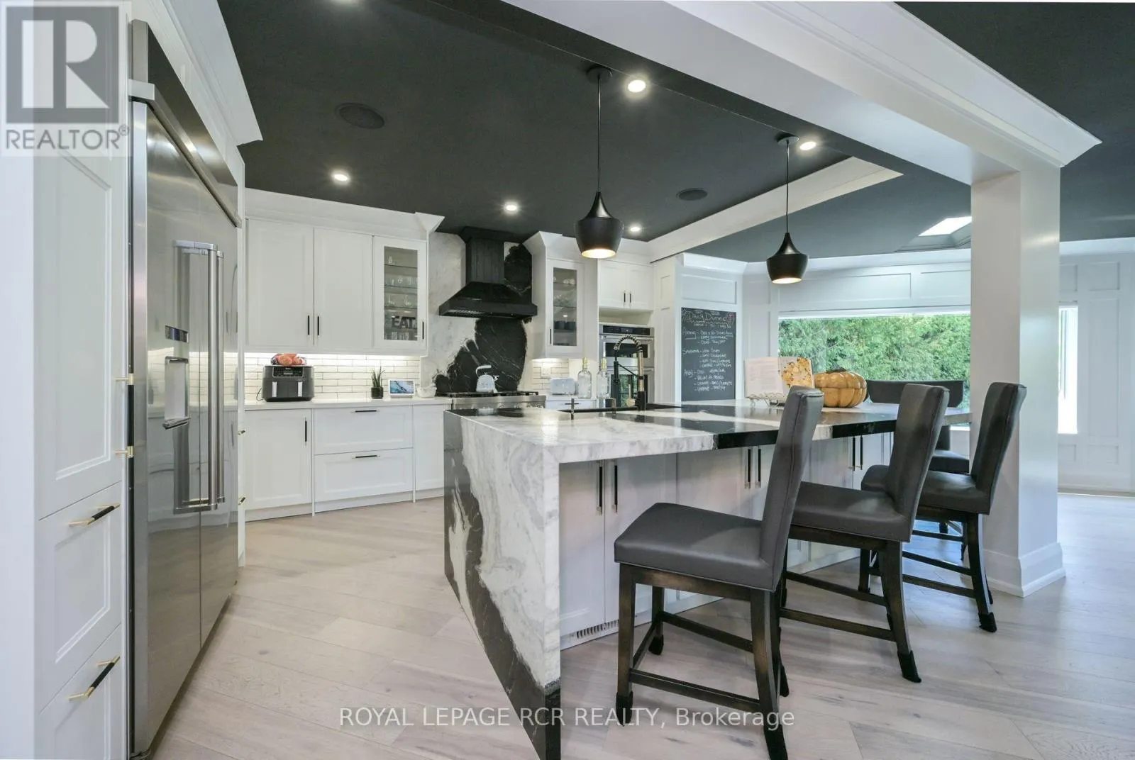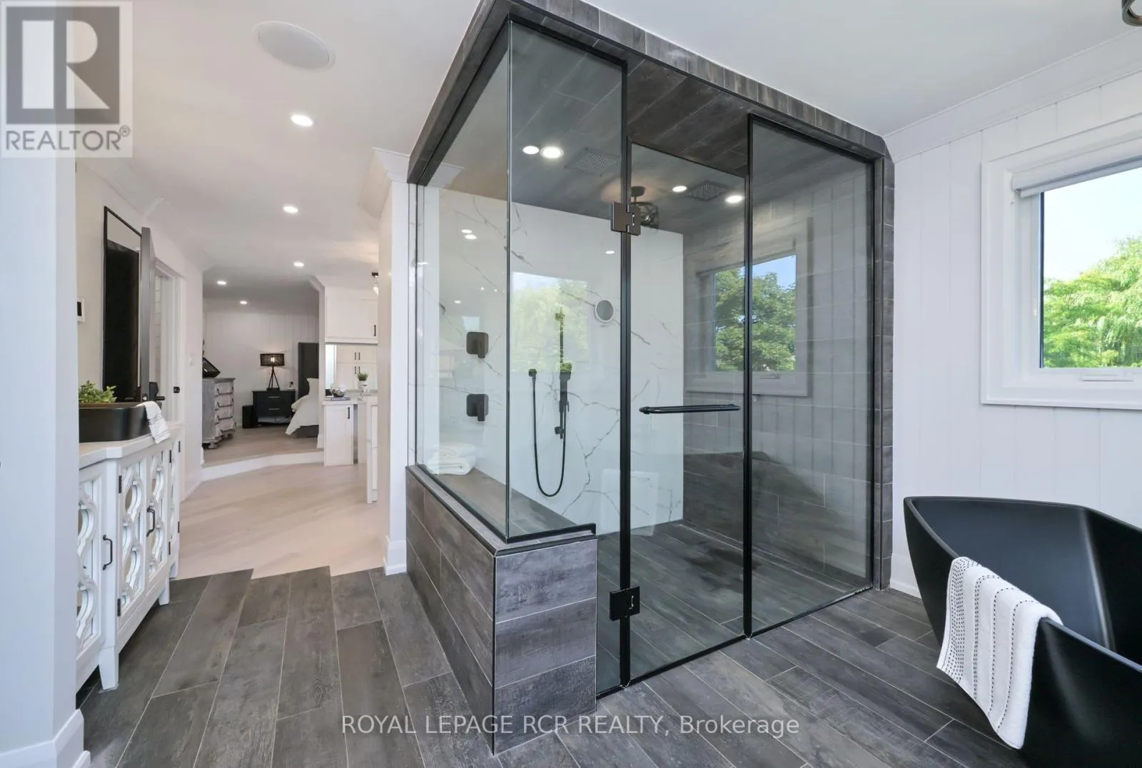 Cross Streets: Kennedy Rd & Conservation. ** Directions: Kennedy Rd N - Christie Drive. Waltz into your dream home! Nestled in the North end of Brampton (Stonegate) this fully renovated 2-story home is a masterclass in contemporary comfort & timeless elegance. Situated on an ultra-private ravine lot w/no neighbors behind & views of nothing but nature & a beautiful pond, this home & property is the perfect blend of serenity, style & functionality. Offering a turn-key lifestyle. Surrounded by lush foliage, perennial/mature trees that provide natural shade, the lg backyard cant be beat. Enjoy a cozy evening on the 2tier composite deck or soak in the hot tub. As you step through the new front door, you're immediately greeted by a beautiful open staircase w/iron railings & a view right to the back of the house. To the right is a functional office w/built-in cabinet, fireplace, coffered ceiling & accent wall. To the left is a tiled mudroom, w/heated floors & a 2 pc bath. New engineered hdwd floors run throughout the main floor & upper level. Every inch of this home has high end finishes. Chefs dream kitchen boasts oversized island w/quartz counters & sink, subway tile backsplash, top of the line Kitchen-aid SS appliances gas range & b/I oven/microwave combo for all your cooking needs. Sep pantry area. Eat-in dining rm w/ample space for entertaining & attaches to the sunroom area w/3 lg windows & w/o to deck. Family rm is a perfect place to watch TV & the coffered ceiling is next to none. Upstairs, you'll find 4 generously sized bdrms, each offering ample closet space, new flooring/crown molding/custom trim work. Renovated 4 pc main bath, updated w/new vanity, quartz countertop, tub/shower combo. Renovated 3 pc main bath w/new vanity, quartz countertop, & laundry. Primary bdrm w/dream closet, w/island in the middle, custom built-ins & renovated ensuite w/dbl sinks, quartz counters, modern hardware/fixtures & w/i glass shower & soaker tub. Lower-level features 2nd wood fireplace, lg windows & gym rm, 3 pc bath with w/i shower. Seeing it believing! (id:27476)