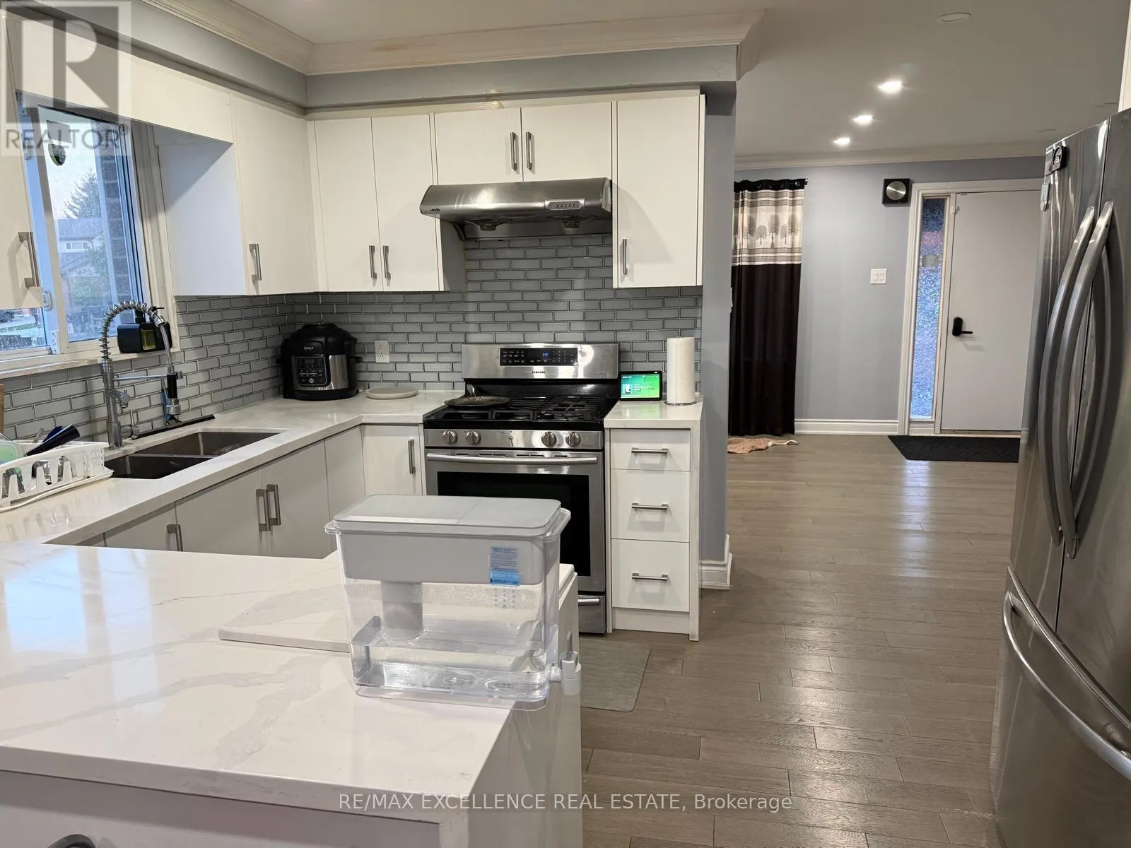 Williams Pkwy/Harridine Rd. Beautifully Renovated Corner Lot with Generous Room Sizes! Modern and stylish, with pot lights and hardwood floors through out. Direct garage access from inside the home. The kitchen boasts quartz countertops, a breakfast area, and a walk-out to a private backyard. Upgraded bathrooms and staircase. Move-In Ready! ** This is a linked property.** (id:27476)