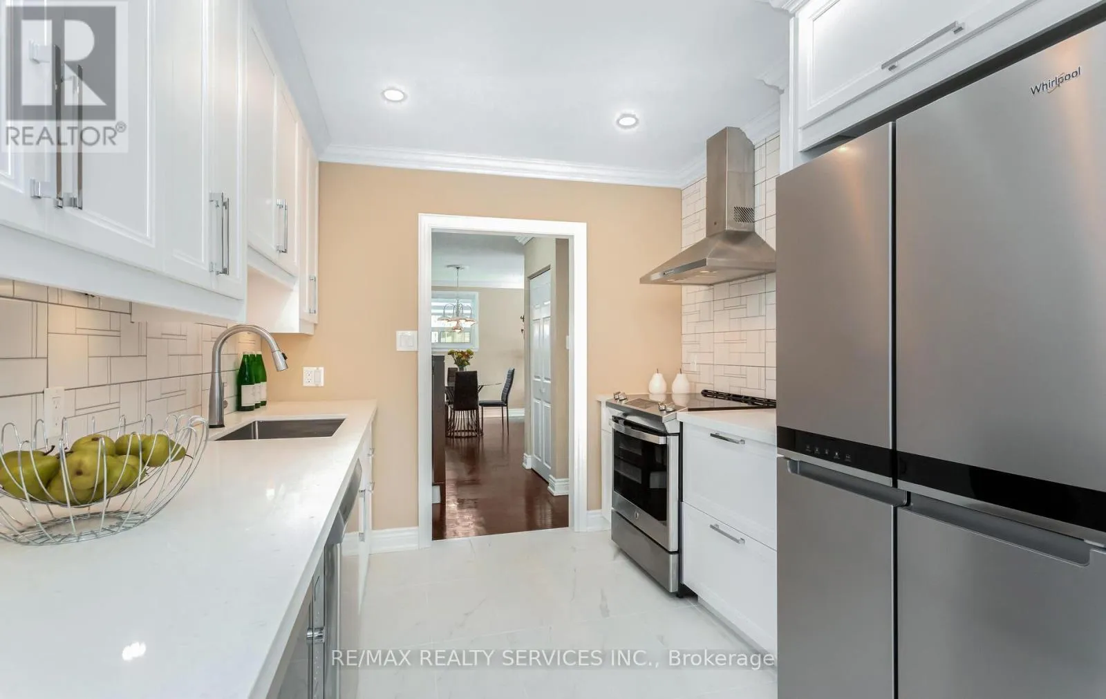 Cross Streets: Dixie Rd. & Balmoral Dr. ** Directions: Dixie to Balmoral to Crawley to Croydon Court. Absolutely Gorgeous Home! Perfectly suited for larger families or savvy investors! Very clean & well maintained! Huge premium irregular shaped treed lot w' an 80.50ft rear! This beauty showcases carefully thought-out renovations including the stylish kitchen & washrooms. Spacious 4 level backsplit featuring a double garage & 8 car parking! Premium court location. No sidewalk! The Kitchen features white cabinetry, decor backsplash, quartz counters, tile flooring, stainless steel appliances, valance & pot lighting + 2 large windows for plenty of natural daylight! Combined L shaped Living & Dining room area's with crown moulding & hardwood flooring. The Living rm features a 4 panel window O/L'g the front yard & patio. A mid level expansive Family room has engineered hardwood flooring, 2 large windows, pot lights, french doors & a neutral decor. Additionally, this level features a modern 3pc washroom w' a frameless glass shower enclosure, office &/or 4th bedroom + a convenient side entrance. All 3 bedrooms on the upper level have hardwood flooring, built in closets & large windows. Spacious 5pc main bathroom offering double sinks. The lower level offers added finished space featuring a large recreation rm w' a wet bar and a stainless steel fridge for convenience. This lower level also has an attractive modern 3pc washroom with a frameless glass shower panel. The laundry room & storage is also located on this level. Extras: CAC, Furnace, HWT, HRV unit all owned & installed Feb. 2022. Roofing shingles (June 2019). Exterior doors (May 2021) Fully fenced backyard with a patio & side entry gate. Close to schools, the Bramalea City Centre, Parks, Public transportation including the GO Station, restaurants & more! Short drive to Hwy 407 & 410. (id:27476)
