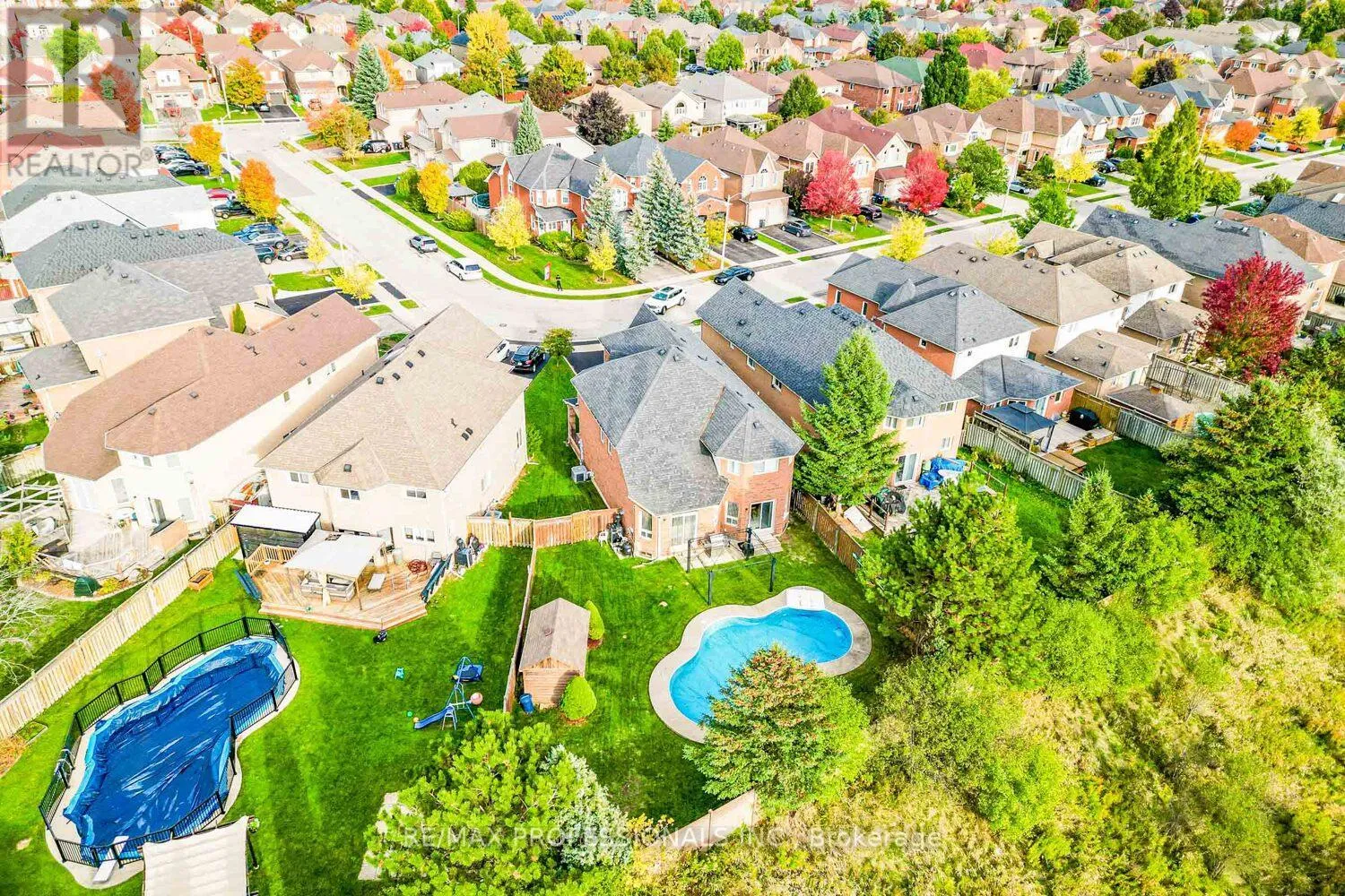 Mayfield & Hurontario Welcome to 62 Banington Cres! Situated on a premium pie-shaped lot on the quiet corner of the crescent, this exceptional 4-bedroom, 3-bathroom home offers 2,871 sq. ft. of above-grade living space and backs onto green space for added privacy. The lot measures 30 ft x 161 ft and widens to 79 ft at the rear, providing a spacious and beautifully landscaped backyard retreat. Inside, you'll find formal living, dining, and family rooms with hardwood floors. The large family room features a fireplace and soaring ceilings, and the bright kitchen includes a functional island and a sunny breakfast area with a walkout to the backyard oasis. Enjoy summer days around the beautiful 19.5-foot in-ground pool - perfect for BBQs and entertaining family and friends. The main floor includes a laundry room with access to the double car garage, while the upper level features hardwood throughout. The primary suite offers a 5-piece ensuite and walk-in closet, and all additional bedrooms are generously sized. This home has been freshly painted and includes several updates such as roof approximately in (2018) and furnace installed (2017). Gas lines are available for the dryer, range, and pool heater, providing added convenience and efficiency. Located close to major highways, schools, parks, and convenient shopping, this home combines space, style, and a prime location - truly a perfect family home. (id:27476)