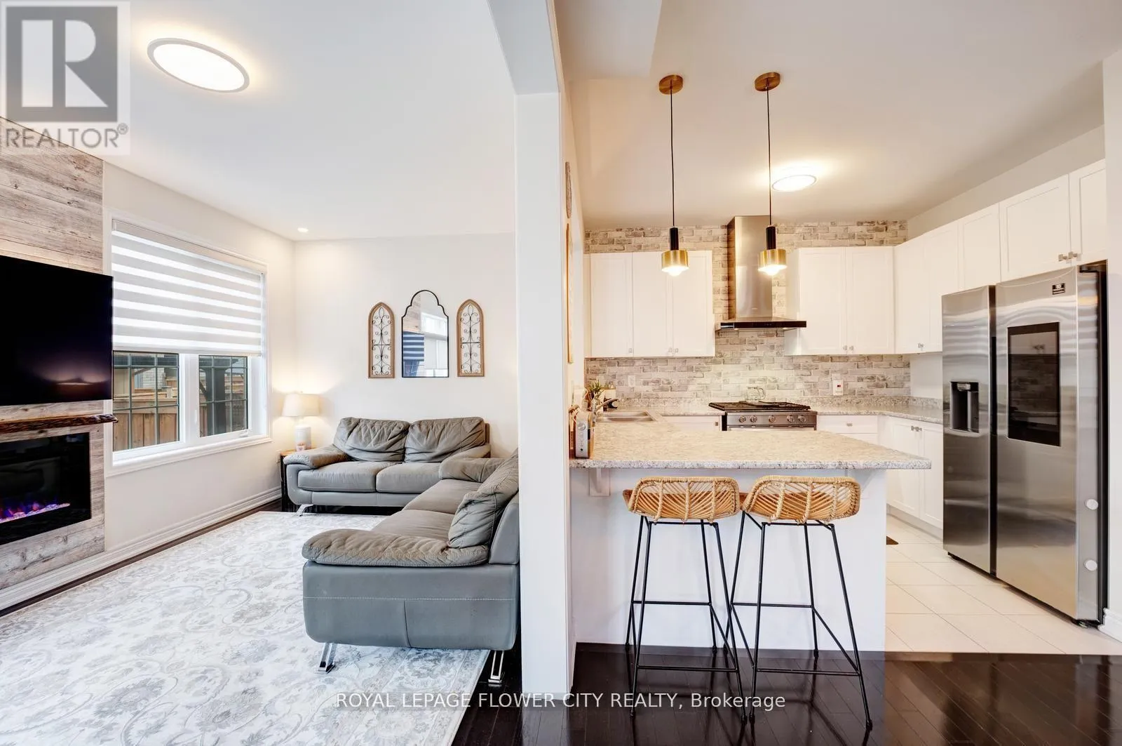 Mayfield / Chinguacousy Rd. Welcome to 14 Labrish Road A Rare Corner Townhome Gem! This stunning 2,100 sq. ft. corner townhome by Fieldgate Homes offers a thoughtfully designed layout paired with sleek, modern finishes throughout. Step into a bright, open-concept main floor featuring rich hardwood flooring, smooth 9-ft ceilings, and a gourmet kitchen complete with high-end stainless steel appliances. The inviting living area showcases LED pot lights and a custom feature wall with a built-in electric fireplace a perfect blend of style and comfort. An upgraded oak staircase leads you to the upper level, where hardwood flooring continues through the hallway and smooth 9-ft ceilings span across all bedrooms. The elegant primary suite boasts a tray ceiling extending the height to over 9 feet, a spacious walk-in closet, and a 4-piece ensuite. You'll also find three additional generously sized bedrooms, a second full bathroom, and a versatile den ideal for extra storage, a reading nook, or a kids' playroom. Step outside to a tranquil backyard retreat featuring a charming deck and a covered pergola perfect for relaxing or entertaining. Additional Highlights: Electric vehicle charger option in the garage. Smooth 9-ft ceilings on both main and upper levels. Oversized windows offering plenty of natural light3-piece bathroom rough-in in the basement. Central vacuum rough-inCold cellar / cantina in the basement. (id:27476)
