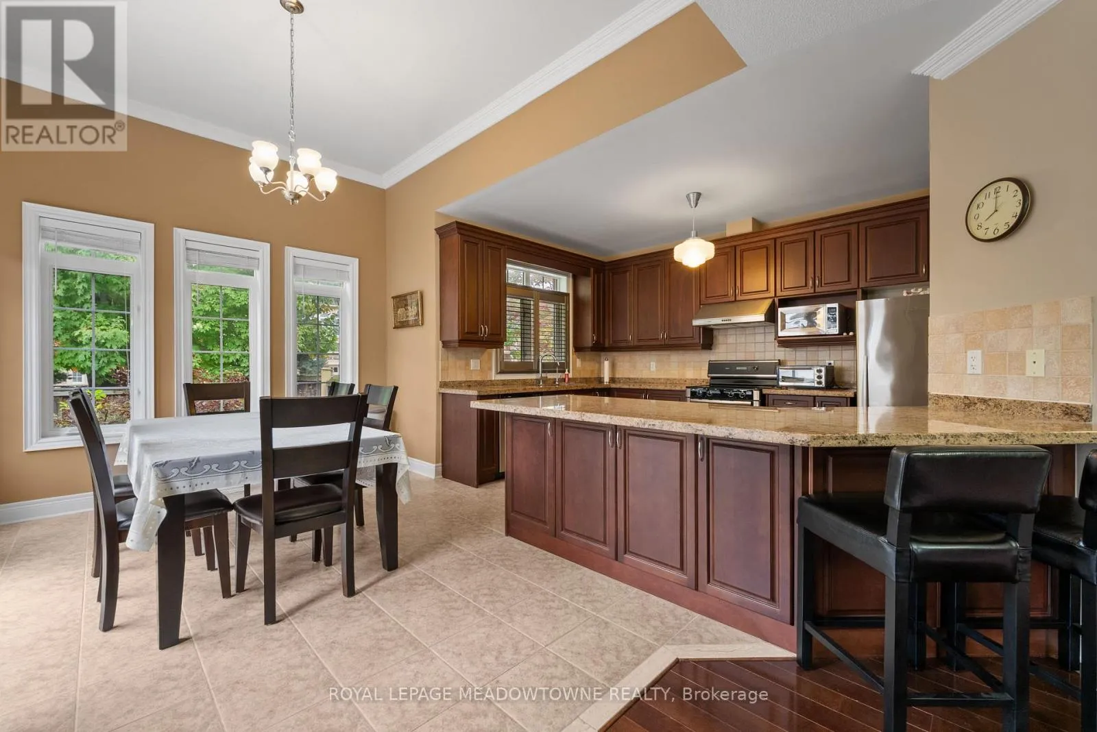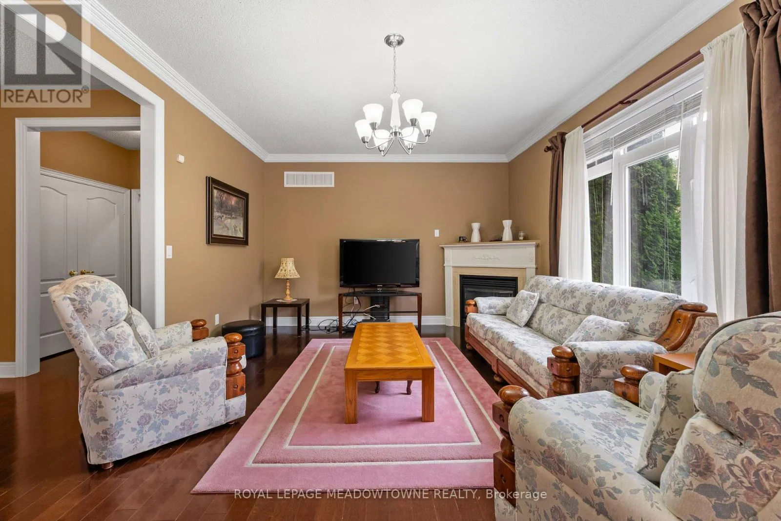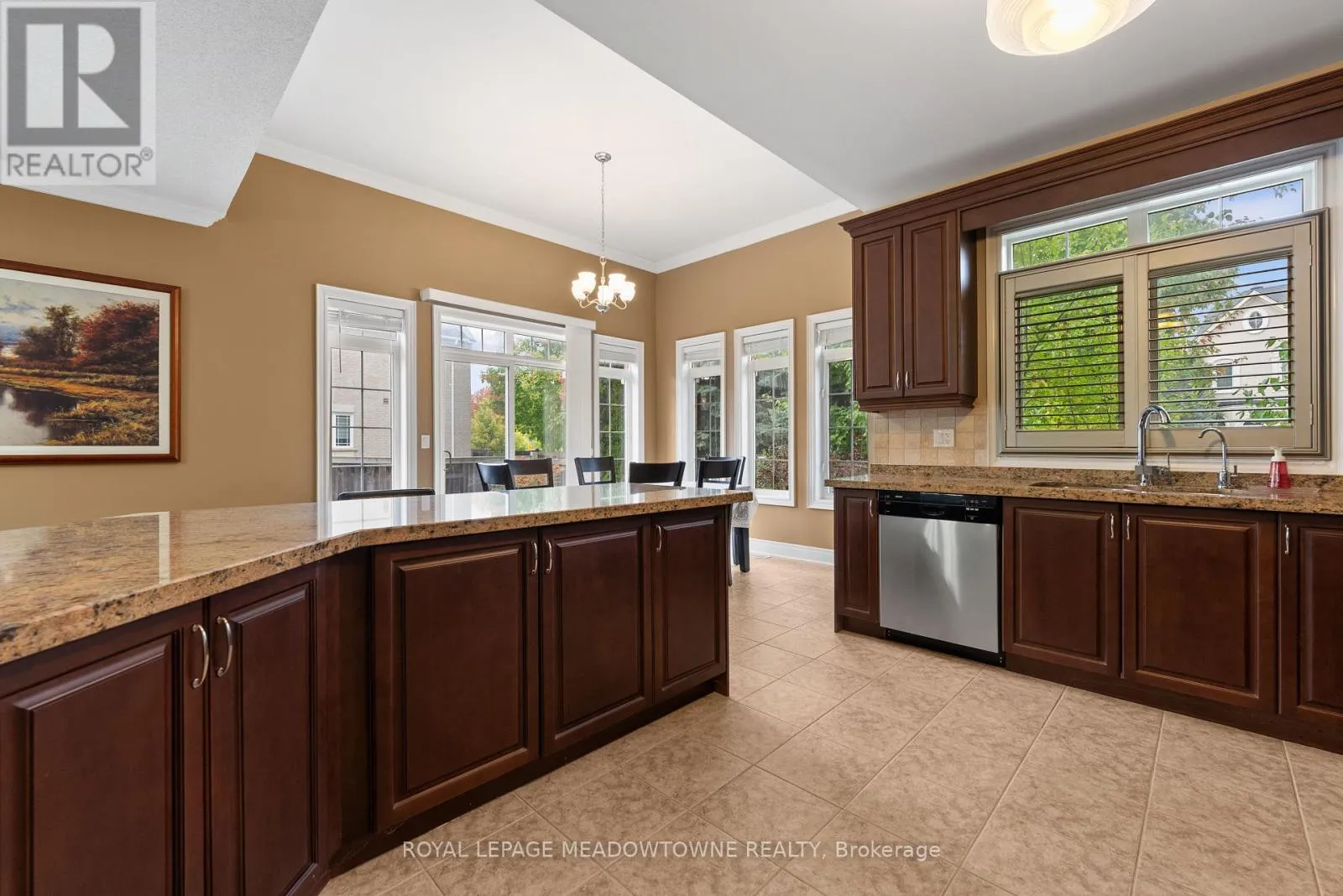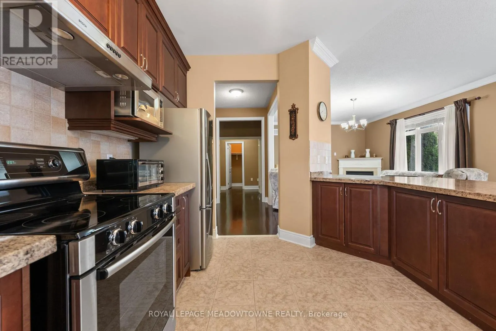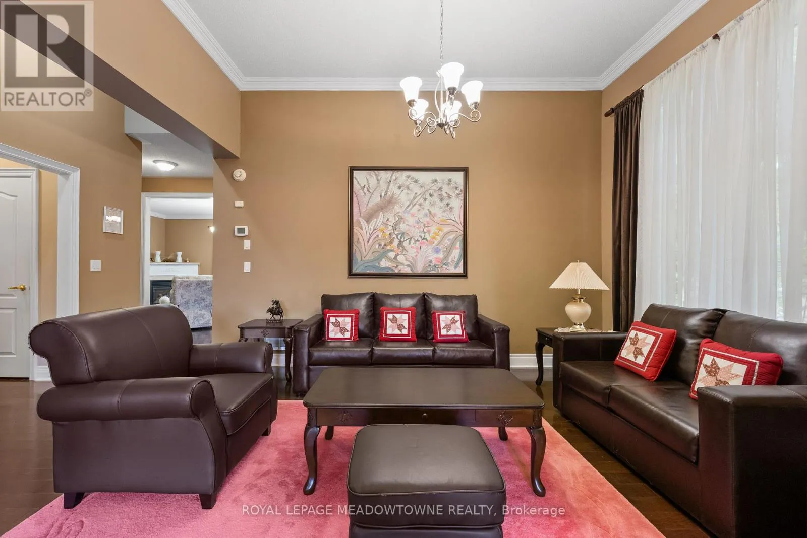 Financial Dr & Hallstone Road Gorgeous corner lot bungalow in the coveted Streetsville Glen Golf Course community. Elegant layout with soaring 10 ft and Gorgeous corner lot bungalow in the coveted Streetsville Glen Golf Course community. Elegant layout with soaring 10 ft and 12.5 ft ceilings and hardwood throughout. Sun filled interiors with abundance of windows. Living and dining rooms feature crown moulding, and the living room includes a gas fireplace. Spacious eat-in kitchen with stainless steel appliances, granite counters and a centre island, opening to the backyard. Front with patterned concrete walkways and curbs wrap the property. Rear interlock patio, beautifully landscaped and fully fenced with a gas line for the BBQ. Primary bedroom offers two closets and a five piece ensuite. Third bedroom is currently open as an office and van be converted back to a bedroom. Finished basement with a bedroom, a 3 piece bath, a dry bar, generous storage and a large open area with potential to create a second bedroom. Simply move in and enjoy. 12.5 ft ceilings and hardwood throughout. Sun filled interiors with abundance of windows. Living and dining rooms feature crown moulding, and the living room includes a gas fireplace. Spacious eat-in kitchen with stainless steel appliances, granite counters and a centre island, opening to the backyard. Front with patterned concrete walkways and curbs wrap the property. Rear interlock patio, beautifully landscaped and fully fenced with a gas line for the BBQ and a sprinkler system. Primary bedroom offers two closets and a five piece ensuite. Third bedroom is currently open as an office and van be converted back to a bedroom. Finished basement with a bedroom, a 3 piece bath, a dry bar, generous storage and a large open area with potential to create a second bedroom. Simply move in and enjoy. (id:27476)