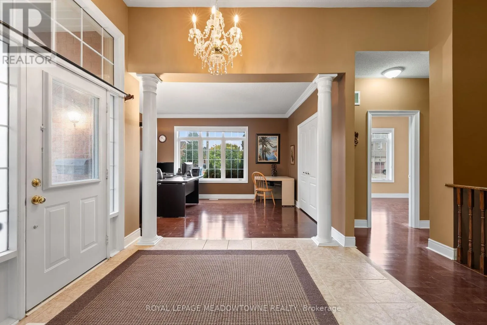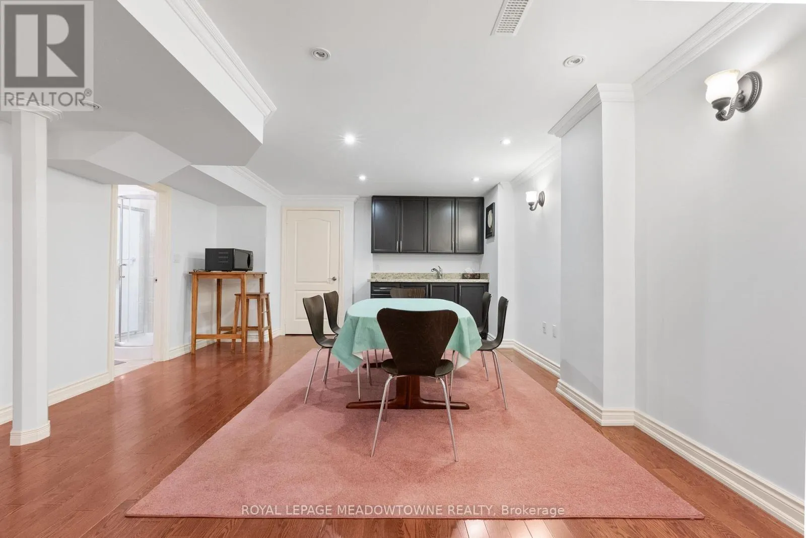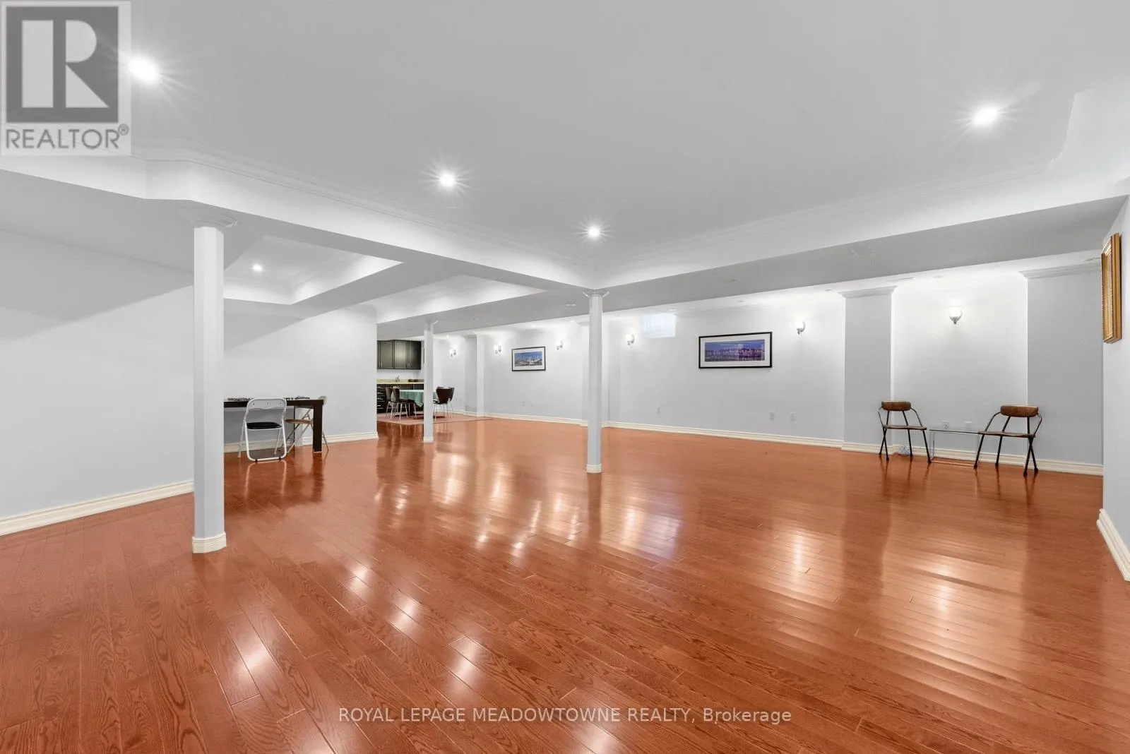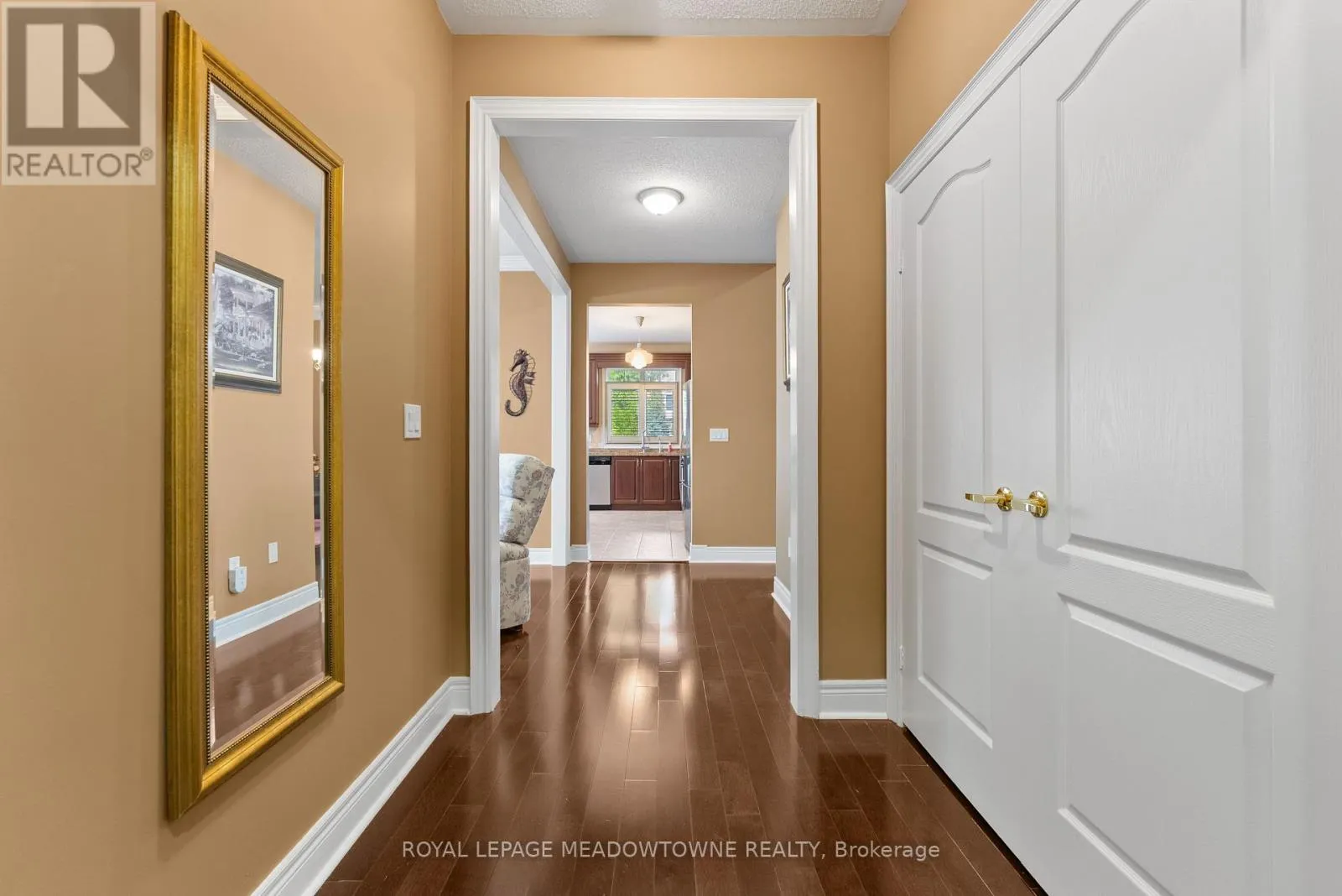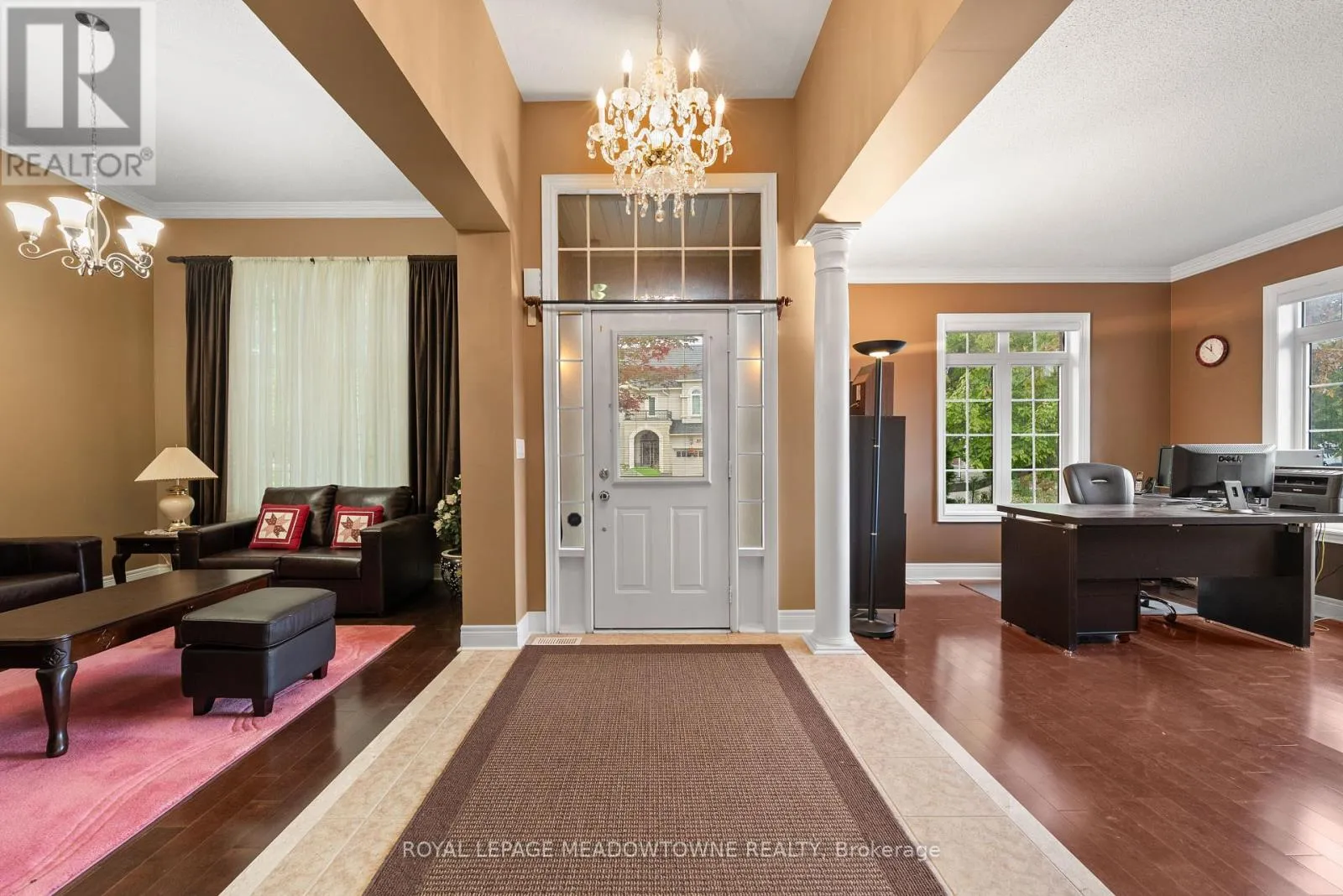 Financial Dr & Hallstone Road Gorgeous corner lot bungalow in the coveted Streetsville Glen Golf Course community. Elegant layout with soaring 10 ft and Gorgeous corner lot bungalow in the coveted Streetsville Glen Golf Course community. Elegant layout with soaring 10 ft and 12.5 ft ceilings and hardwood throughout. Sun filled interiors with abundance of windows. Living and dining rooms feature crown moulding, and the living room includes a gas fireplace. Spacious eat-in kitchen with stainless steel appliances, granite counters and a centre island, opening to the backyard. Front with patterned concrete walkways and curbs wrap the property. Rear interlock patio, beautifully landscaped and fully fenced with a gas line for the BBQ. Primary bedroom offers two closets and a five piece ensuite. Third bedroom is currently open as an office and van be converted back to a bedroom. Finished basement with a bedroom, a 3 piece bath, a dry bar, generous storage and a large open area with potential to create a second bedroom. Simply move in and enjoy. 12.5 ft ceilings and hardwood throughout. Sun filled interiors with abundance of windows. Living and dining rooms feature crown moulding, and the living room includes a gas fireplace. Spacious eat-in kitchen with stainless steel appliances, granite counters and a centre island, opening to the backyard. Front with patterned concrete walkways and curbs wrap the property. Rear interlock patio, beautifully landscaped and fully fenced with a gas line for the BBQ and a sprinkler system. Primary bedroom offers two closets and a five piece ensuite. Third bedroom is currently open as an office and van be converted back to a bedroom. Finished basement with a bedroom, a 3 piece bath, a dry bar, generous storage and a large open area with potential to create a second bedroom. Simply move in and enjoy. (id:27476)