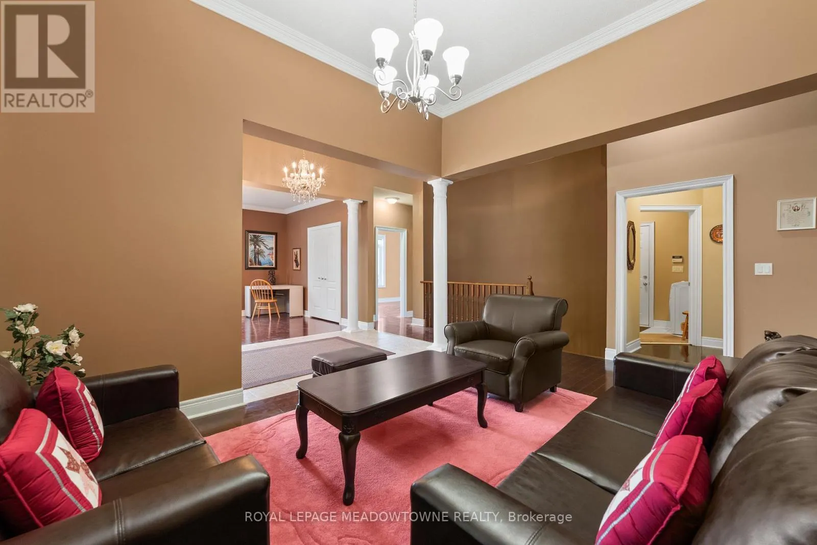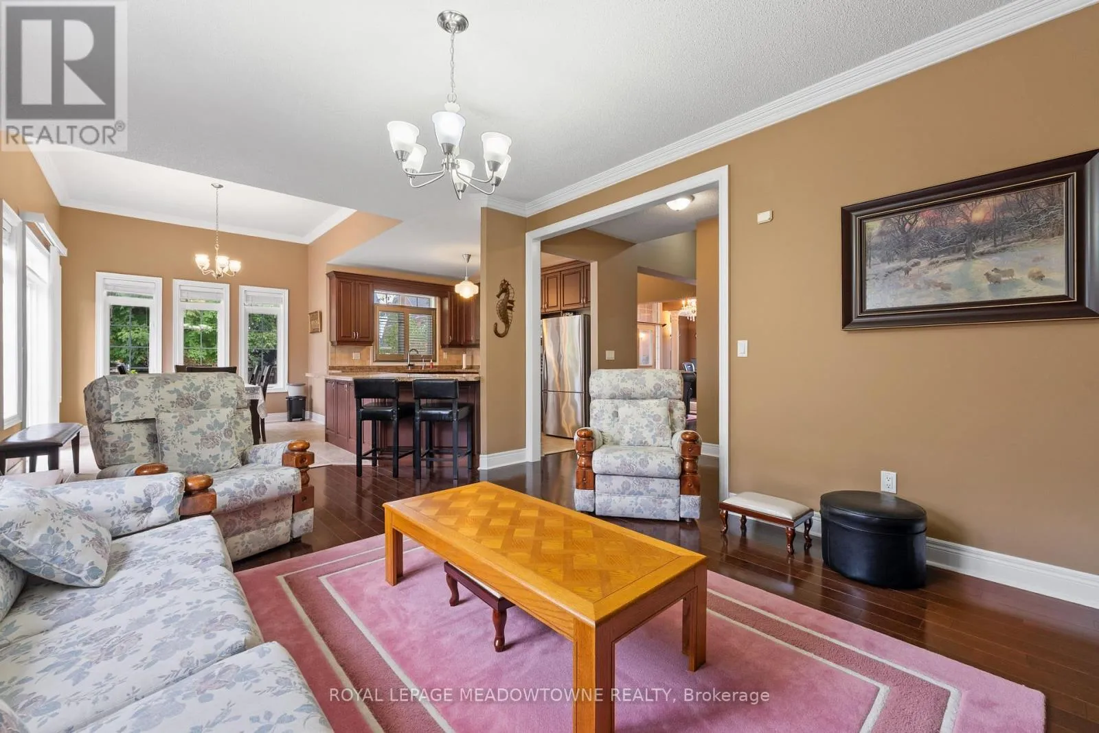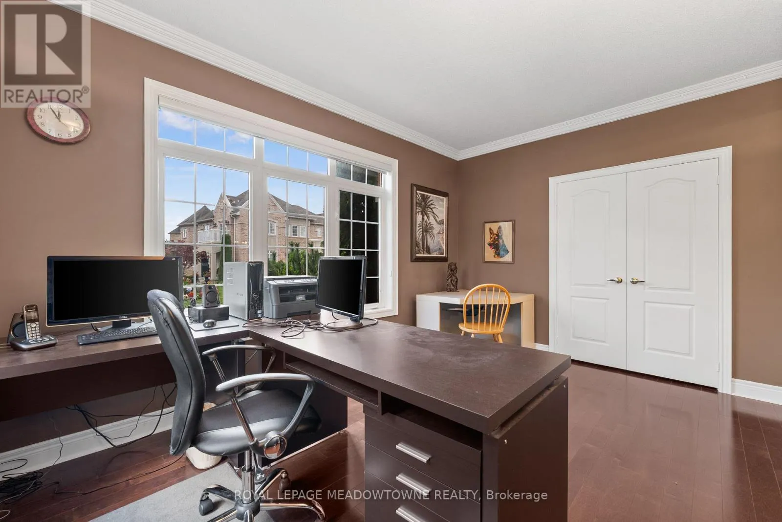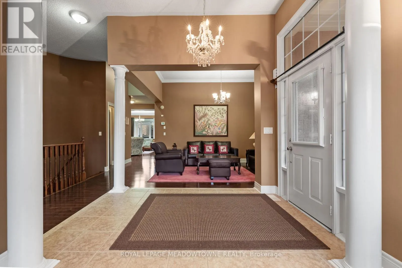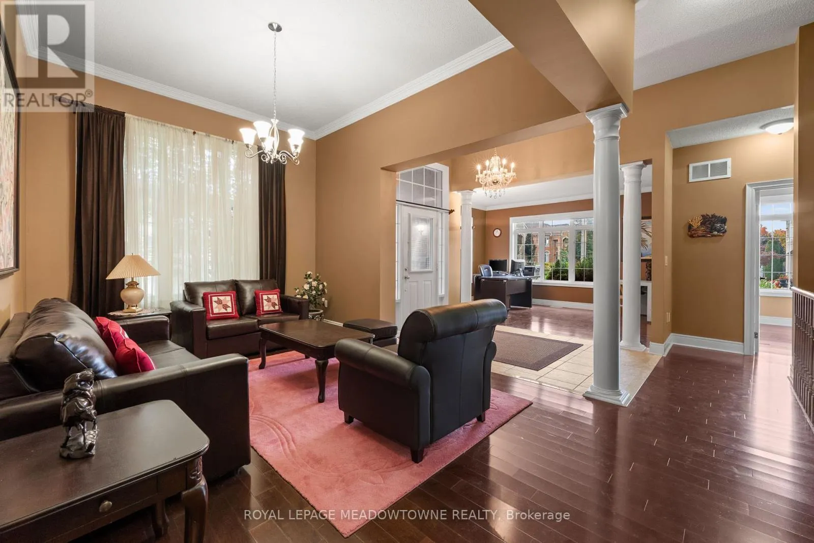 Financial Dr & Hallstone Road Gorgeous corner lot bungalow in the coveted Streetsville Glen Golf Course community. Elegant layout with soaring 10 ft and Gorgeous corner lot bungalow in the coveted Streetsville Glen Golf Course community. Elegant layout with soaring 10 ft and 12.5 ft ceilings and hardwood throughout. Sun filled interiors with abundance of windows. Living and dining rooms feature crown moulding, and the living room includes a gas fireplace. Spacious eat-in kitchen with stainless steel appliances, granite counters and a centre island, opening to the backyard. Front with patterned concrete walkways and curbs wrap the property. Rear interlock patio, beautifully landscaped and fully fenced with a gas line for the BBQ. Primary bedroom offers two closets and a five piece ensuite. Third bedroom is currently open as an office and van be converted back to a bedroom. Finished basement with a bedroom, a 3 piece bath, a dry bar, generous storage and a large open area with potential to create a second bedroom. Simply move in and enjoy. 12.5 ft ceilings and hardwood throughout. Sun filled interiors with abundance of windows. Living and dining rooms feature crown moulding, and the living room includes a gas fireplace. Spacious eat-in kitchen with stainless steel appliances, granite counters and a centre island, opening to the backyard. Front with patterned concrete walkways and curbs wrap the property. Rear interlock patio, beautifully landscaped and fully fenced with a gas line for the BBQ and a sprinkler system. Primary bedroom offers two closets and a five piece ensuite. Third bedroom is currently open as an office and van be converted back to a bedroom. Finished basement with a bedroom, a 3 piece bath, a dry bar, generous storage and a large open area with potential to create a second bedroom. Simply move in and enjoy. (id:27476)