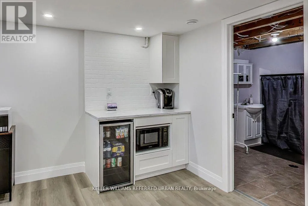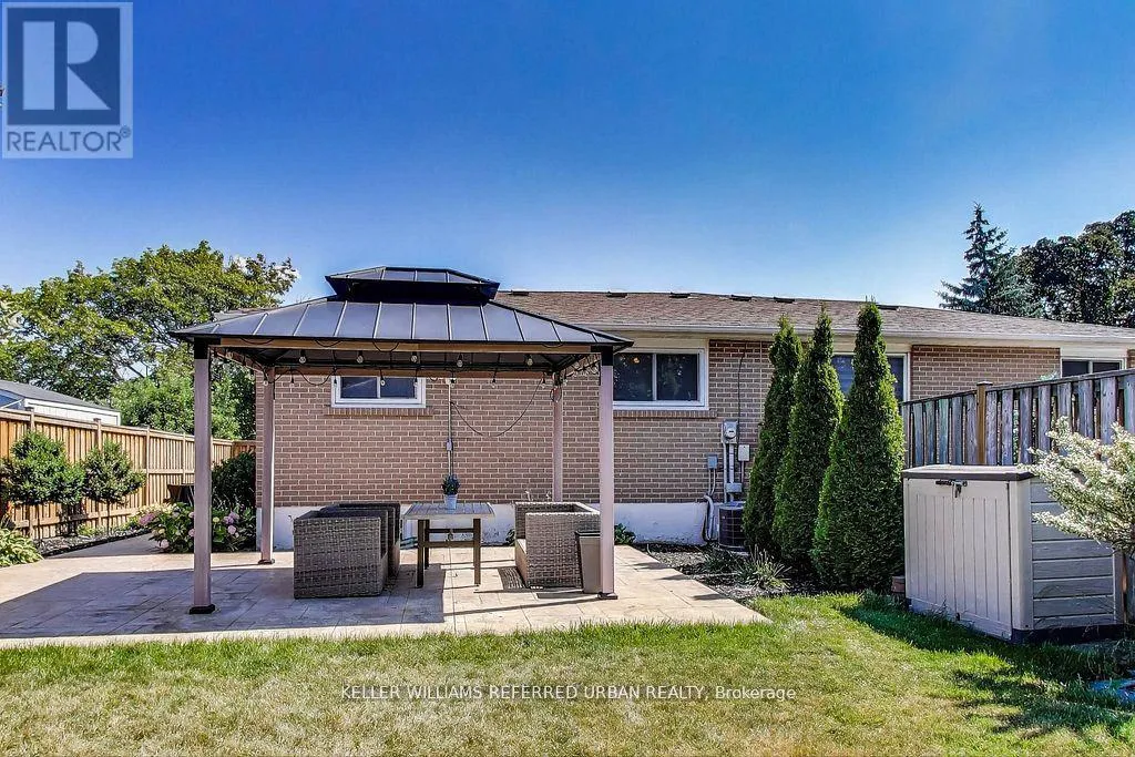 Queen St E & Finchgate Blvd Welcome to this well-maintained semi-detached backsplit bungalow, perfectly situated in a family-friendly neighborhood near Queen St E & Finchgate Blvd. This charming home sits on a generous 35 ft wide by almost 170 ft deep lot - offering a spacious backyard ideal for kids to play, weekend projects, or outdoor entertaining. Featuring 3 bedrooms and 1.5 baths, this home is filled with natural light and enhanced by custom cordless blinds throughout. The bright and functional layout includes a spacious recreation room in the basement with a kitchenette, perfect for extended family or hosting guests. Enjoy outdoor living with a stamped concrete patio, natural gas line for BBQ, and two backyard sheds - one fully equipped with electrical connections and heating, providing the perfect space for a hobby room, play area, or private retreat. Additional highlights include ample under-stairs storage and a new AC (2024) for your comfort and peace of mind. A true family home in a welcoming community, close to schools, parks, shopping, and transit - this property offers both comfort and convenience for today's growing families. (id:27476)