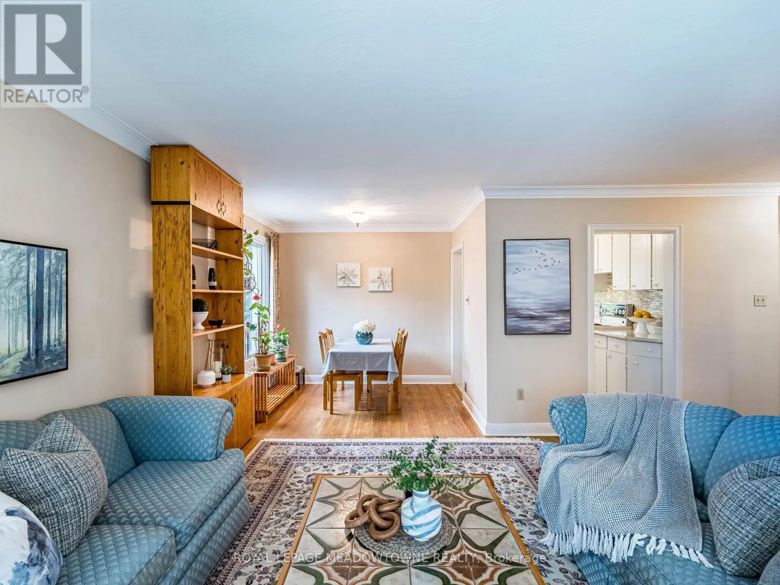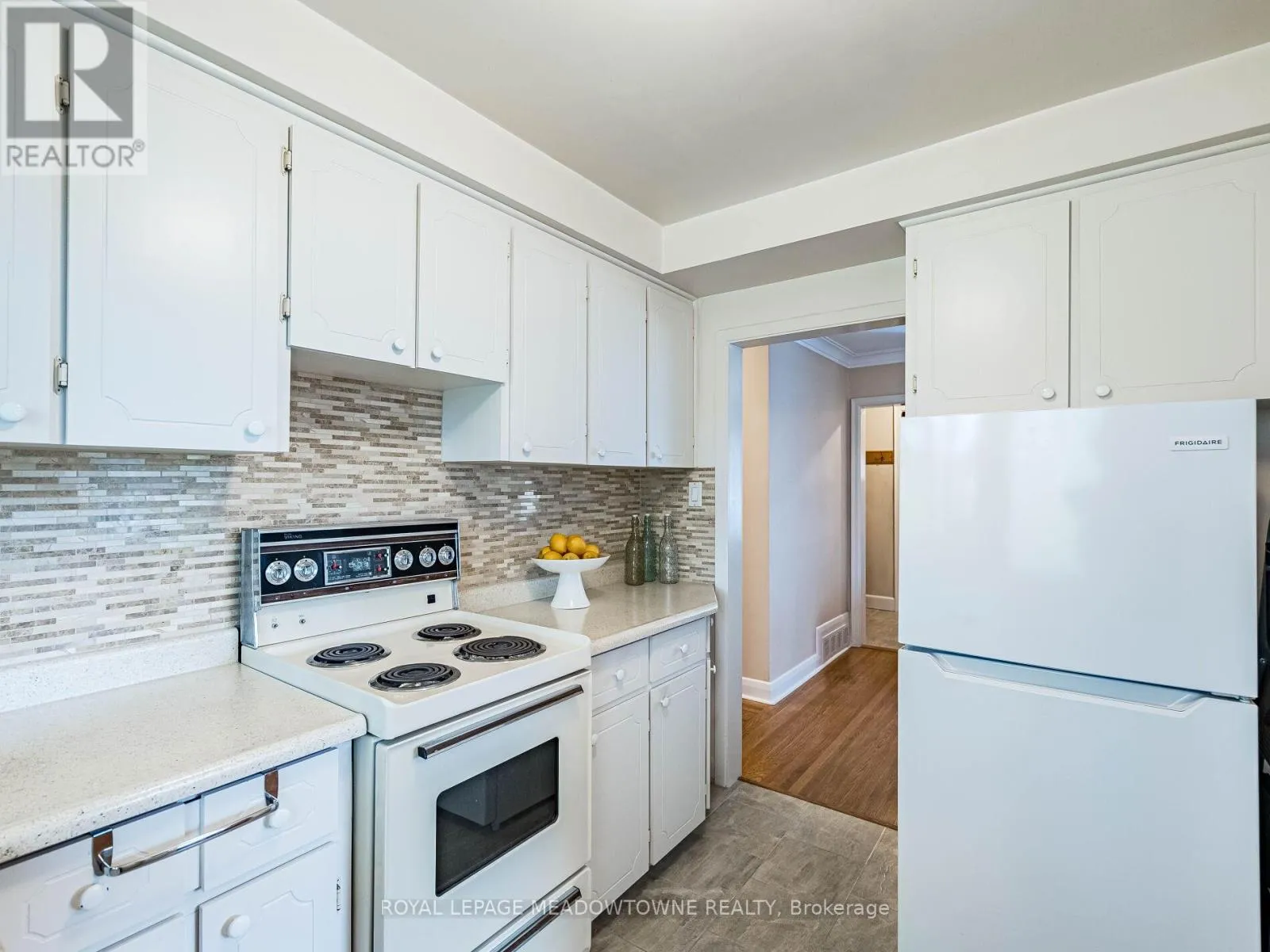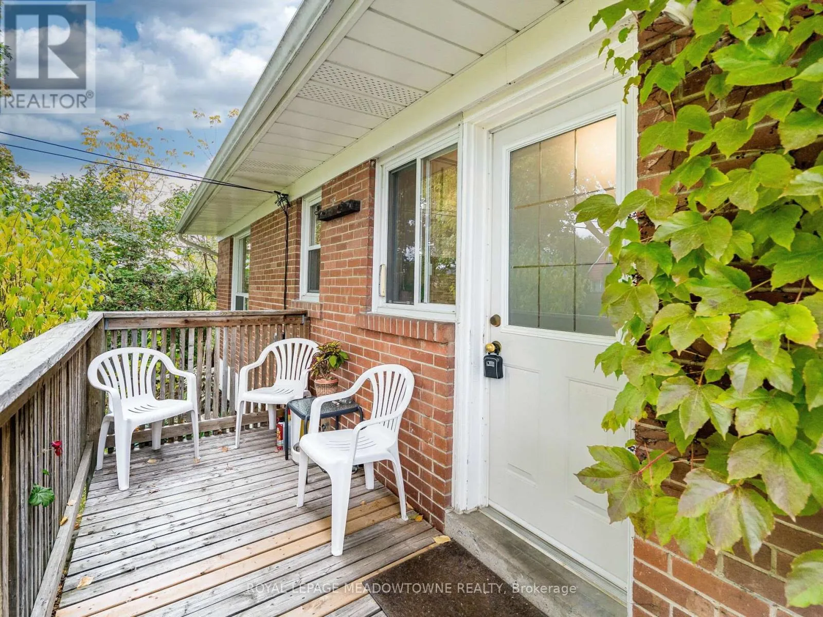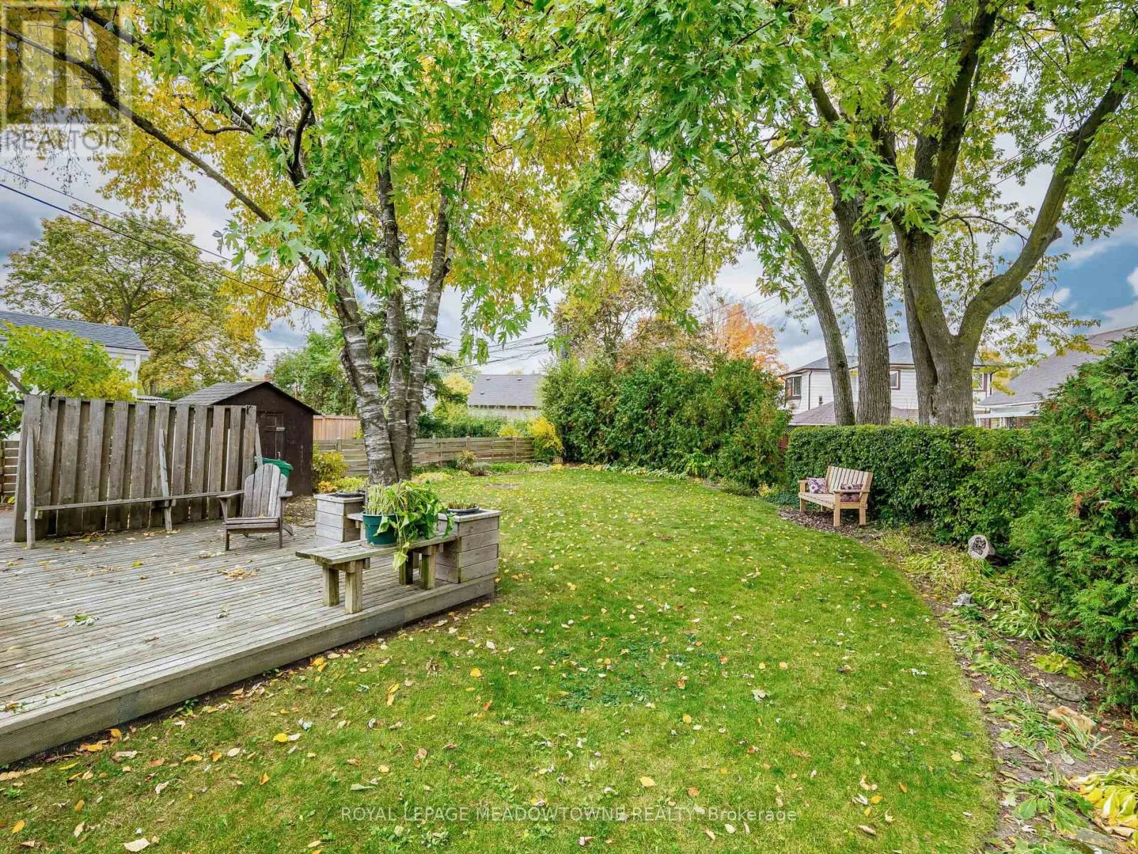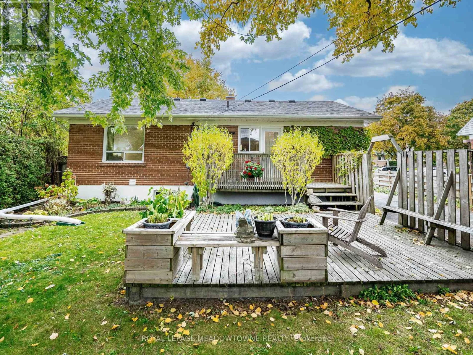 Cross Streets: Clarence St & Main St S. ** Directions: Clarence St & Erlesmere Ave. Charming 3-Bedroom Bungalow in a Mature Downtown Brampton Neighbourhood! Nestled on a quiet, tree-lined street just steps from parks, schools, hospital, transit, and vibrant downtown Brampton, this solid all-brick bungalow exudes warmth and pride of ownership. Lovingly maintained by the same owner for over four decades, it offers timeless appeal and modern comfort. Sun-filled living room with a large picture window and elegant crown moulding, complemented by gleaming hardwood floors throughout. The bright kitchen features ceramic floors, a newer backsplash and countertop, and a walkout to a two-tier deck overlooking a private, park-like yard with lush perennial gardens and majestic mature trees. Three spacious bedrooms, a 4-piece bath with ceramic finishes and Toto toilet, and a partly finished basement with above-grade windows, panelled rec area, subflooring, and laundry with newer side-by-side washer and dryer. Breakers, new furnace (Nov 2022), roof (approx. 10 yrs), rebuilt exterior chimney (2025). A wonderful opportunity to own a lovingly cared-for home in a welcoming family neighbourhood! (id:27476)
