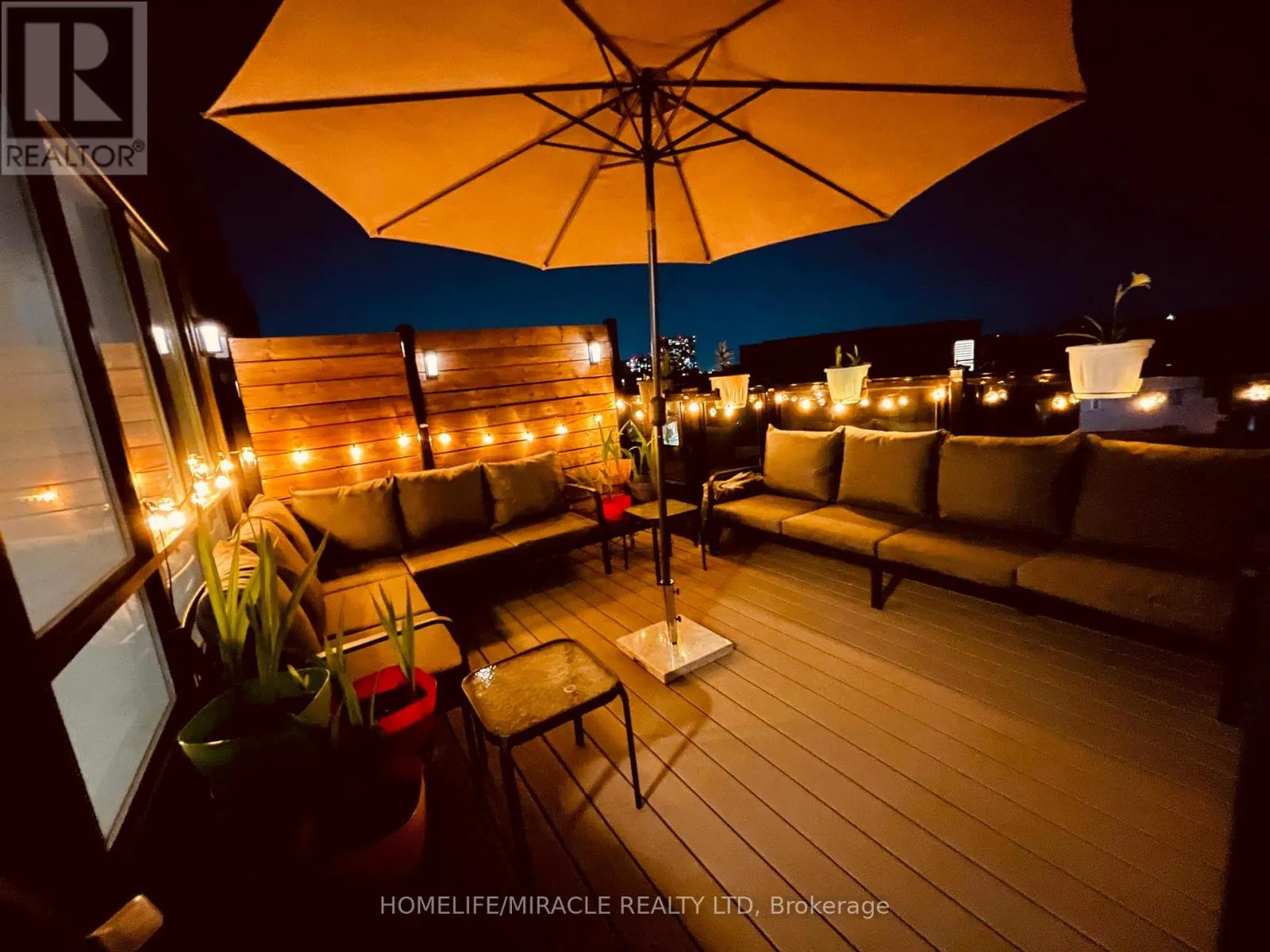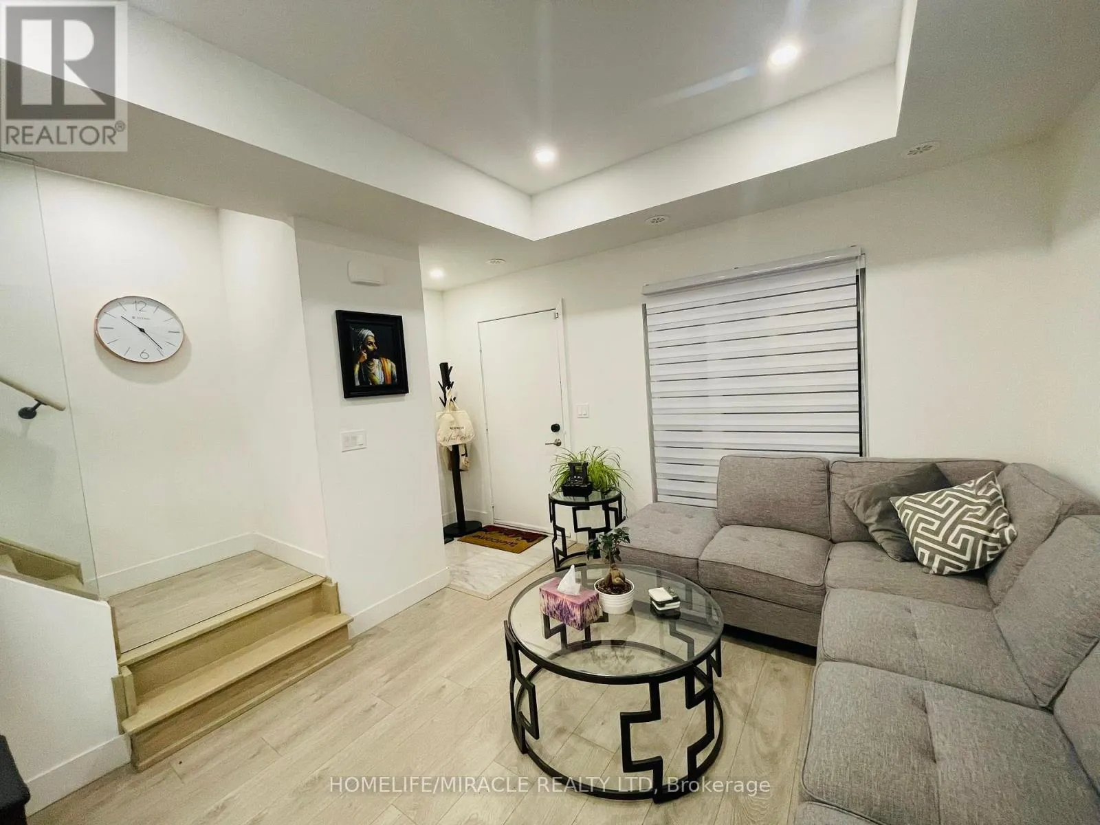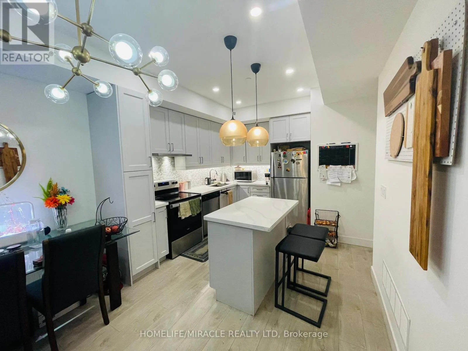 Steeles and Malta "Welcome to this sun-filled, spacious urban townhouse nestled in the heart of Brampton! This spectacular home boasts 3 bedrooms, 1 den and 3 washrooms, facing a garden and children's play area. Features include a generously sized living/dining area, elegant potlights, freshly painted walls, high ceilings, an inviting oak staircase, and luxurious flooring throughout. The gourmet kitchen is adorned with a stylish backsplash, quartz countertops, eat-in island and stainless steel appliances. Each roomy bedroom comes complete with ample closet space, complemented by 2 full washrooms. Enjoy entertaining on the rooftop terrace, while the convenience of a full-sized laundry room on the upper level enhances daily living. With one parking spot below offering direct access to the home, convenience is key. This well-maintained and inviting home also includes condo fees covering landscaping, snow removal, visitor parking, garbage disposal and property management. Don't miss out on this must-see gem! Plus, included are stainless steel appliances (fridge, stove, dishwasher), recessed pot lights in all rooms, washer and dryer, and window coverings. Close proximity to Brampton GO station, Brampton Transit terminal, Shoppers World, and the upcoming LRT, connecting Mississauga Port Credit and Go Transit to downtown Toronto." (id:27476)