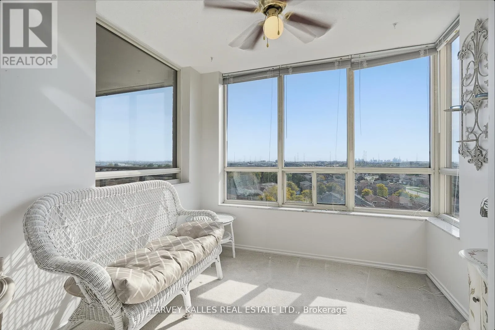 Hurontario/Ray Lawson Welcome to 20 Cherrytree Dr #812 A beautiful Corner Condo with Unobstructed Southwest Views! Step into one of the most coveted layouts in the building a beautifully upgraded 2 Bedroom + Den + Sunroom, rare large locker, 2 Bathroom suite offering a generous 1,537 sq ft of bright, open concept living space . Enjoy all inclusive utilities + internet in this meticulously maintained unit that combines luxury , comfort, and unbeatable convenience. The spacious living and dining areas are perfect for entertaining or relaxing, with a seamless walkout to a large private balcony showcasing stunning panoramic views. The sundrenched den, framed by windows, is ideal as a home office, reading nook, or bedroom. The custom designed kitchen features quartz countertops,soft close, dovetail drawers, upgraded backsplash, designer flooring, and a charming eat in breakfast area a chef's delight! Retreat to the oversized primary bedroom with a walk in closet and a spa-inspired 5 piece ensuite complete with a walk in shower, soaker tub, and granite vanity. One additional spacious bedroom and large den and a second full bathroom provide excellent flexibility for families or guests. Enjoy added features like an elegant foyer with double mirrored closets, a bright sunroom, upgraded flooring, and an oversized insuite laundry room with extra storage. Resort Style Living in a Gated Community: 24-Hour Security & Concierge, Outdoor Pool with Lounge Area, BBQ Terrace, Gym, Library, Squash & Tennis Courts, Party Room, Walking Trails & Manicured Gardens. Unbeatable Location: Minutes to Fletcher' s Creek Trail, Brampton Golf Club, GO/ Zoom Transit, Future Hurontario LRT, and quick access to Hwy 410, 407 , 401 the perfect hub for commuters ! Don't miss this opportunity to own a rarely offered corner suite in one of Brampton's most sought after communities ! (id:27476)