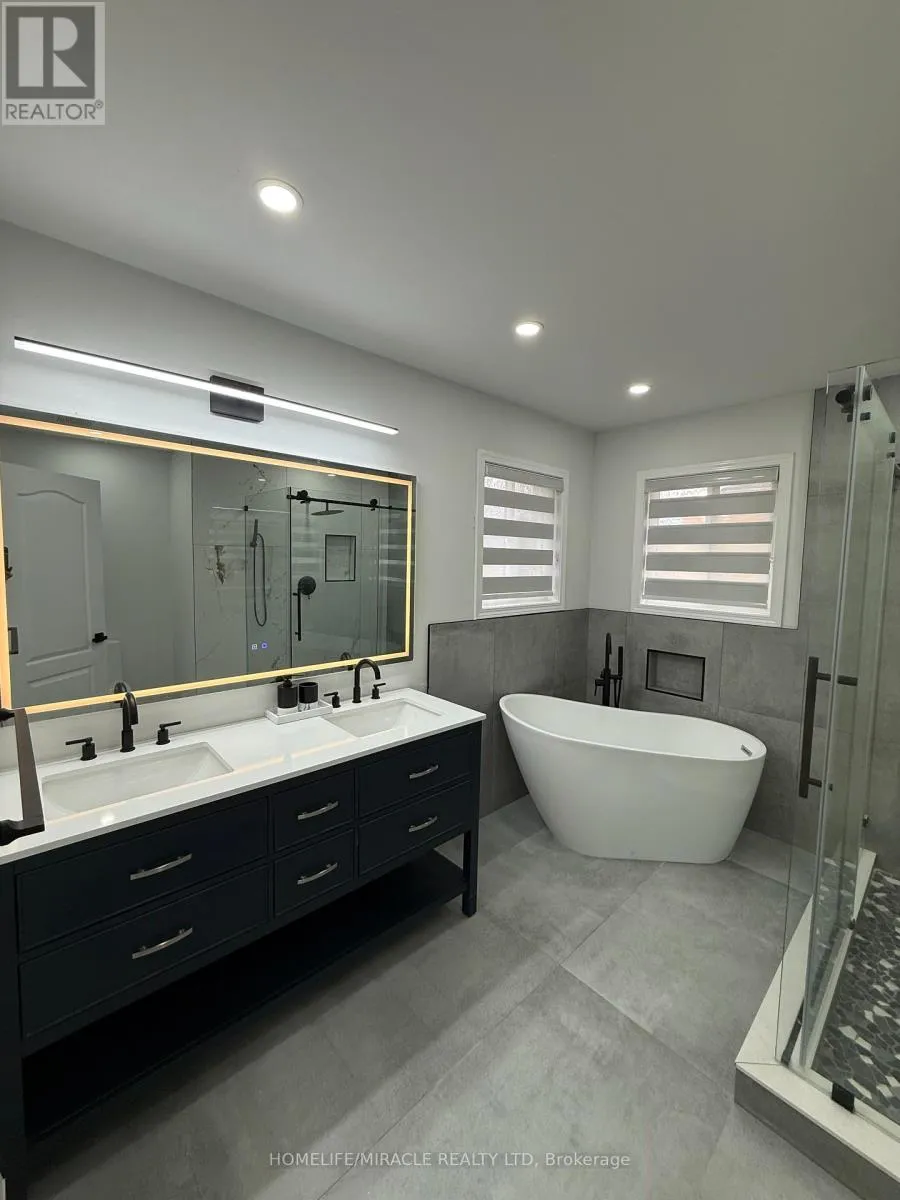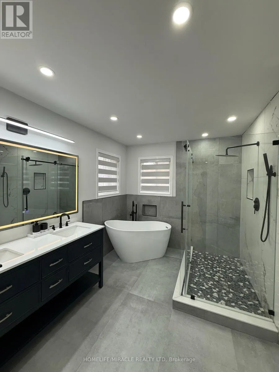 Creditview/ Sandalwood Stunning fully upgraded North-facing all-brick home with grand double-door entry. Features 4 spacious bedrooms, new engineered hardwood on main & upper levels, and heated porcelain floors in foyer, hall, baths & kitchen. Gorgeous open-concept layout with combined living/family room and formal dining. New chef's kitchen with waterfall island & breakfast bar. Upstairs offers 3 fully renovated baths. Professionally -finished 3-bedroom basement with separate side entrance-ideal for extended family living. Upgrades include pot lights, concrete driveway, and new garage doors. Move-in ready & meticulously maintained! Don't miss one! (id:27476)