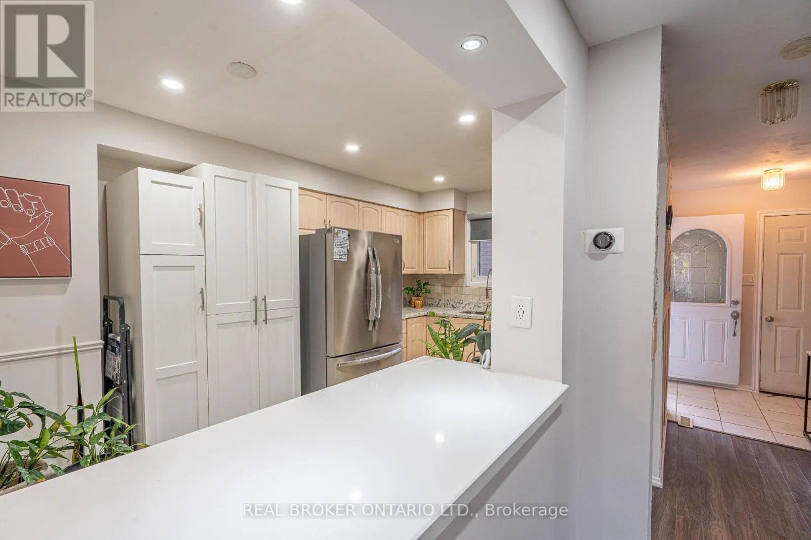 Cross Streets: Kennedy and Williams Pkwy. ** Directions: Kennedy and Linkdale Road. A fabulous mint condition 3 bedroom home with finished basement! Affordable and spotless, a great family home just move in. This beautifully maintained freehold townhouse offers nearly 1,800 sq ft of living space across three functional levels, including the basement. The open-concept living and dining area is enhanced with pot lights, laminate flooring, and a stylish accent wall, creating a warm, modern feel. The updated kitchen (2023) boasts quartz countertops, and a new Fridge (2024) - perfect for cooking enthusiasts. Enjoy a deep private backyard with mature trees and no rear neighbors-perfect for relaxing or entertaining. Additional updates include new Windows (2022), Roof (2019), Fencing (2020), and an enclosed Porch (2022). Convenient direct garage access and 3 parking spaces (1 garage + 2 driveway). Located in a mature, family-friendly neighborhood, you're steps from parks, trails along Etobicoke Creek, public transit, hospitals, and with grocery stores and restaurants just a walk away. This hidden gem proves you can upsize affordably - right here in Brampton North (id:27476)