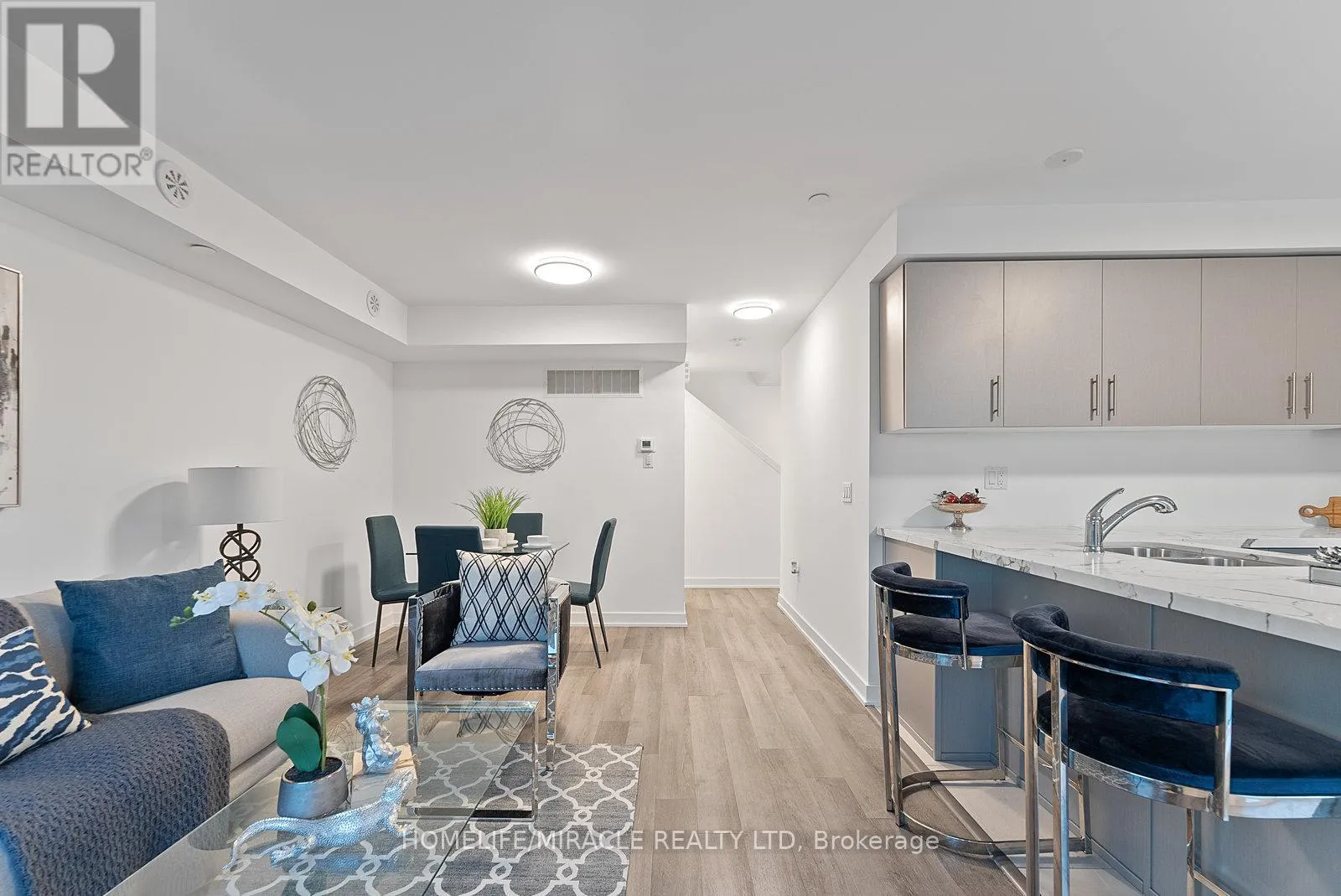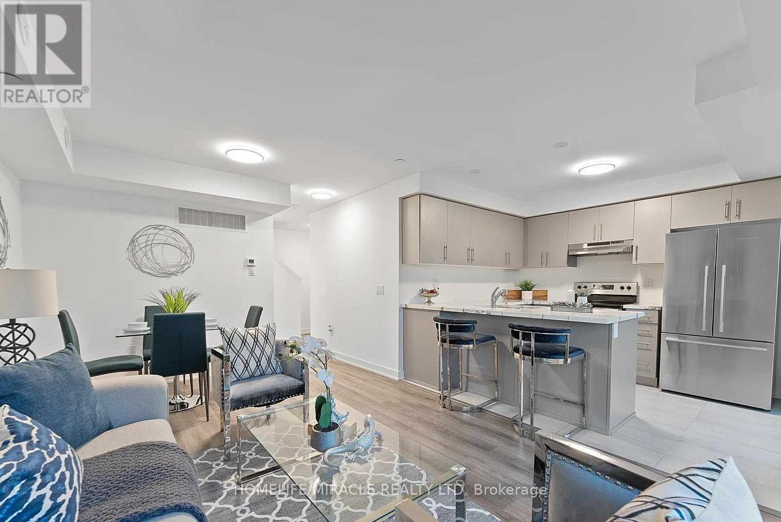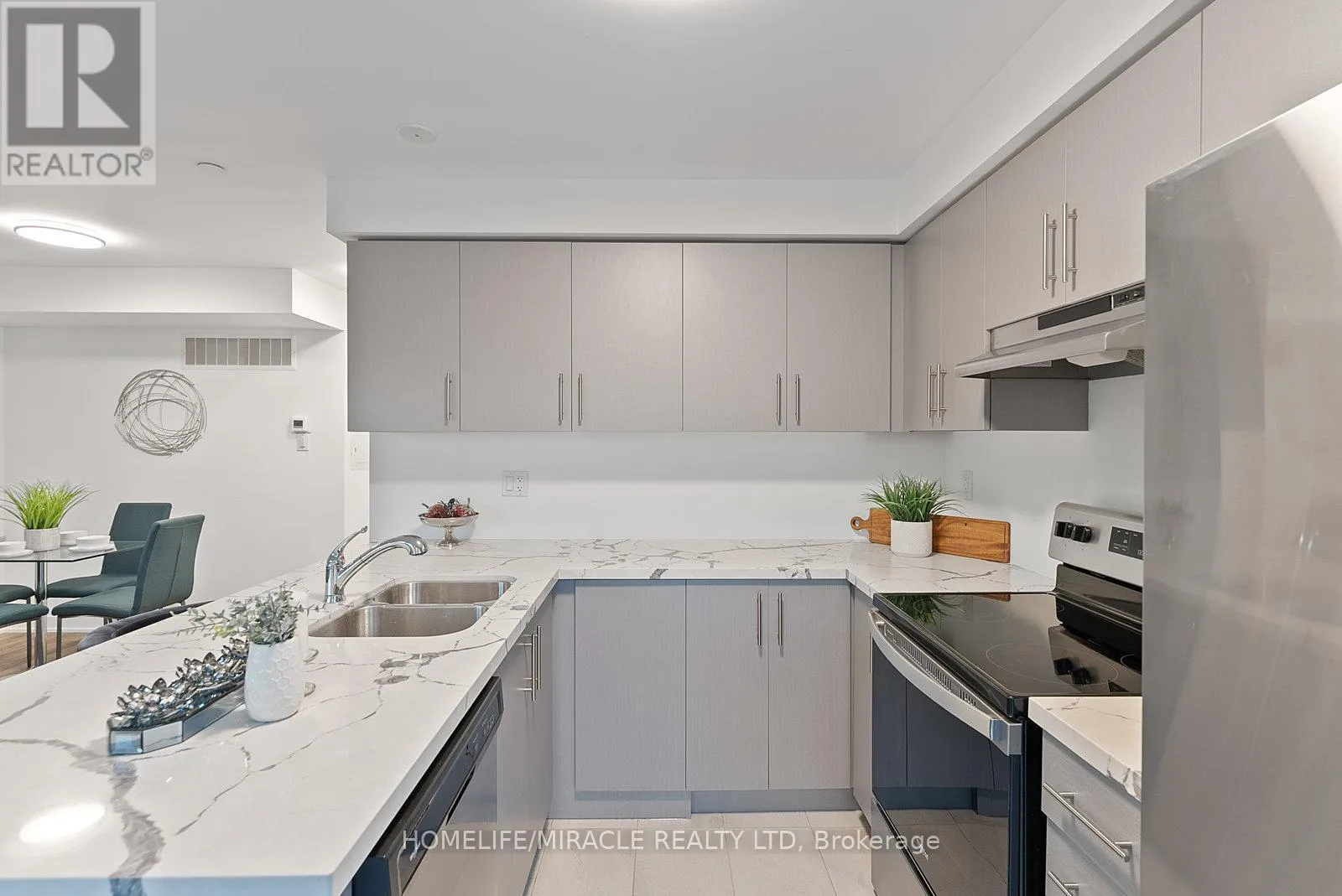 Mississauga Rd. & Sandalwood Pk. Discover this stunning modern townhouse featuring a stylish brick exterior and a bright, open-concept layout with 2 bedrooms, 2 bathrooms. The contemporary kitchen is equipped with quartz countertops and stainless steel appliances, while the private balcony offers a lovely spot to relax and enjoy the view. Located in a highly sought-after neighborhood, this home is close to banks, daycare, shopping plazas, Mount Pleasant GO Station, schools, soccer fields, and parks everything you need just minutes away! An ideal choice for first-time buyers, downsizers, or anyone seeking a low-maintenance lifestyle in a vibrant, family-friendly community. (id:27476)