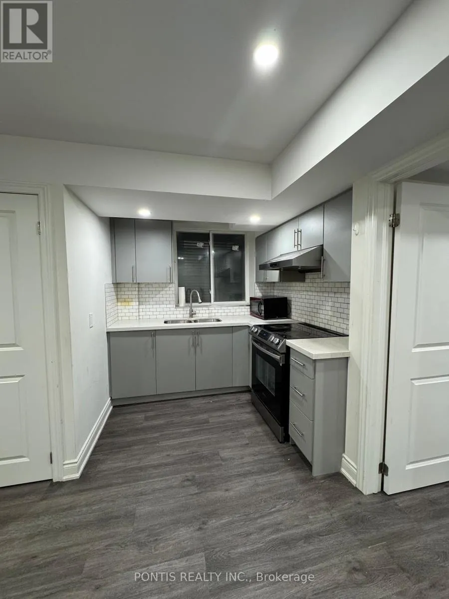 Mississauga Rd / Financial Dr Spacious and bright One-bedroom + DEN legal basement apartment with a private entrance. This beautifully finished unit offers large windows in both the living room and bedroom, filling the space with natural light. Features include luxury vinyl flooring, smooth ceilings with pot lights, and a spacious open-concept living area. The kitchen features stainless steel appliances, ample counter space, and sleek modern cabinetry. The 3-piece bathroom showcases a quartz vanity, glass-enclosed shower, and elegant porcelain tiles. Enjoy the convenience of a private laundry and exclusive driveway parking. Nestled in a quiet, family-friendly neighbourhood, this clean and stylish apartment is move-in ready and perfect for comfortable living. (id:27476)