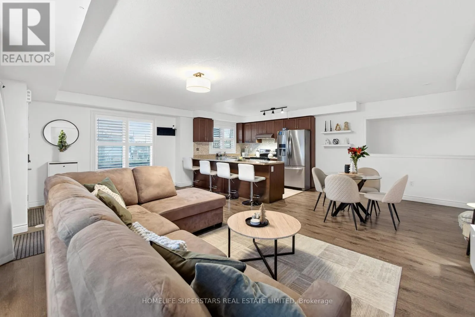 Sandlewood/Mississauga Rd Welcome to this beautiful three bedroom, three bathroom END Unit townhome featuring private front entrance with a large wrap around balcony. As an end unit, it benefits from additional windows that bring in abundant natural light throughout the home. This modern property offers high-quality finishes, 9-foot ceilings, and an open-concept layout that creates an inviting, open atmosphere. The kitchen includes stainless steel appliances with a stylish backsplash. Enjoy direct garage access, a rare convenience within this complex and area. Furthermore, the home is equipped with Smart Home Accessories for added convenience and security, including cameras, a smart garage door opener, and a smart thermostat. Home is freshly painted with wainscoting recently completed in all bedrooms. Ideally situated close to Mount Pleasant Go, Highway 407, Schools, Transit, playground, and everyday amenities. A brand new plaza including Dollarama, Pharmacy, Daycare, Dentist located right across the street and just steps in the other direction to a gas station, restaurants, and shops. Truly a well-maintained home in a fantastic location! (id:27476)