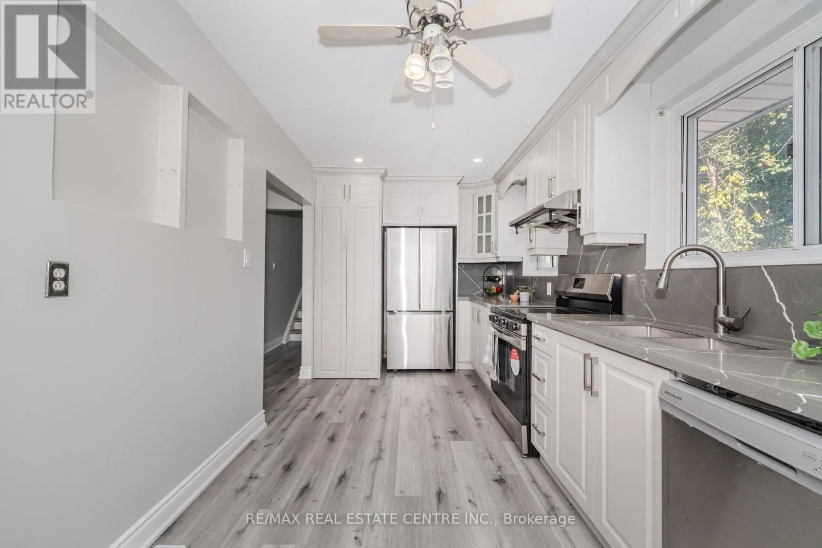 Cross Streets: FLOWERTOWN & WINDERMERE. ** Directions: Front door. Absolutely Fantastic Fully Renovated 3+3 BR semi-detached bungalow sits on an impressive oversized lot (164 ft deep 84 ft wide at the back), offering space, comfort, and income potential all in one. Its a Huge LOT perfect to make Additional GARDEN SUITE in the backyard-- The main level features 3 bright and spacious bedrooms, a brand-new custom kitchen with modern cabinets, and its own laundry area. The home is freshly painted throughout and completely carpet-free, giving it a clean, stylish, and move-in-ready appeal. The LEGAL BASEMENT APARTMENT with a separate entrance adds incredible value, offering 3 additional bedrooms, its own modern kitchen with new cabinetry (2024), and a second laundry perfect for extended family or as a mortgage helper. DETACH DOUBLE GARAGE-- NEW FURNACE (2024) NEW A/C (2024) Upgraded 125 amp Electrical panel (2024) Upgraded water line (22024) REPLACED ASHPHALT SHINGLES ALL NEW APPLIANCES (2024) Outside, the massive backyard provides endless possibilities for outdoor living with Fruit Trees , gardening, or future upgrades. Nestled in a quiet court location, this property combines privacy with convenience, close to schools, parks, shopping, and transit. Perfect for investors to make Upto $5500/M Rental potential, if you add Garden suite you can generate upto $7000/M so Don't miss this Fantastic opportunity (id:27476)