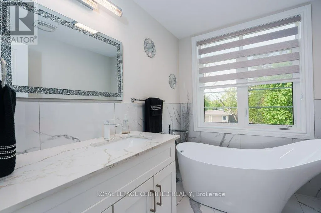 Cross Streets: Main St N/ English. ** Directions: Main St N/English/Murray. Renovated to perfection and ready for executive tenancy!This beautifully upgraded home offers an inviting open-concept main floor featuring a convenient main floor primary bedroom, with two additional bedrooms on the upper level. Enjoy the fully finished basement, complete with a spacious recreation room, dedicated laundry area, and plenty of extra storage.Outside, the property offers a 4-car driveway plus a detached single-car garage. The back door walkout leads to a concrete patio, perfect for relaxing or entertaining. Ideally situated close to all major amenities, schools, and public transit-this home provides exceptional convenience and comfort. (id:27476)