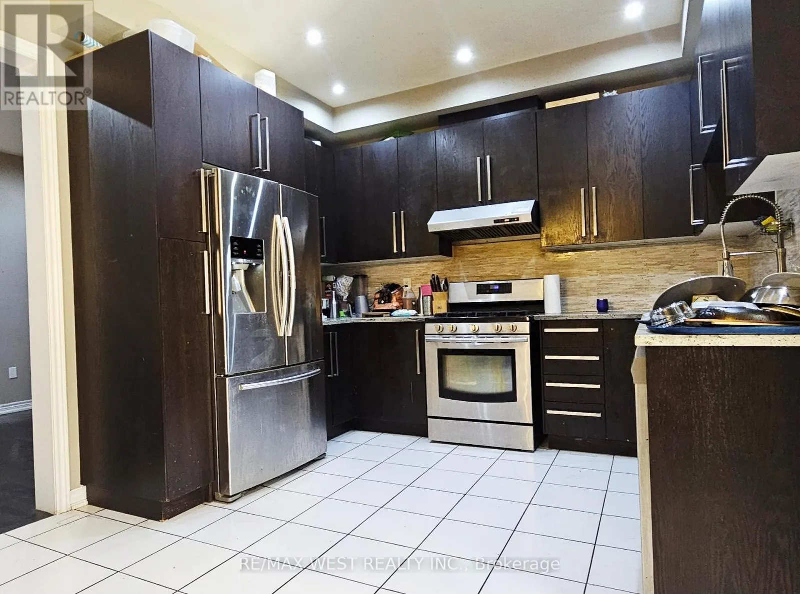 Williams Pkwy & Elbern Markell Move Into Brampton's Most Sought-After Neighborhood! This Beautiful 2060 sq ft, 4-bedroom home will be available January 1, 2026. It features pot lights, hardwood floors throughout (no carpet), granite countertops in the kitchen, 9 ft ceilings on the main floor, and a custom closet in the primary bedroom with a 5-piece ensuite. Additional upgrades include modern light fixtures, California shutters, garage storage shelving, interior parage access, a concrete backyard patio, and a concrete walkway to the front with 3 Parking Spots. Located close to Eldorado Park, Mount Pleasant GO, top schools, transit, and major amenities - this opportunity will not last! Note: Basement has a separate entrance and laundry. Utility: Upstairs tenants pay 70%. (id:27476)