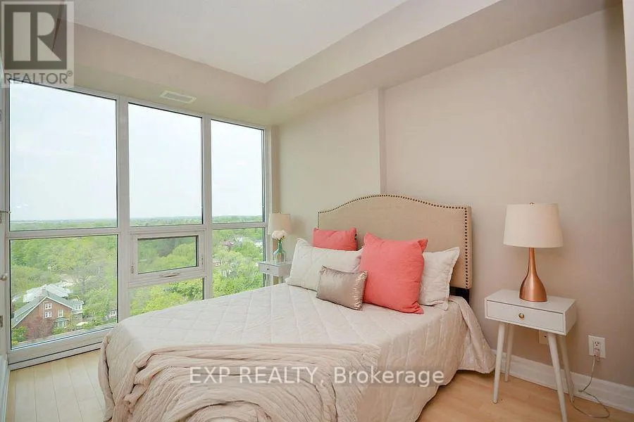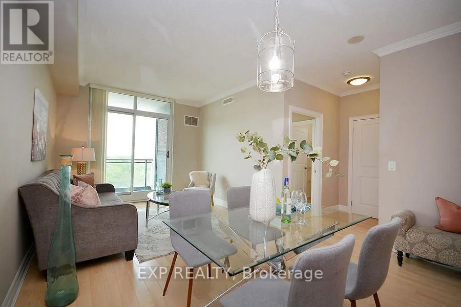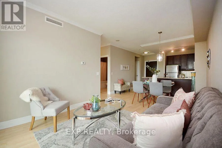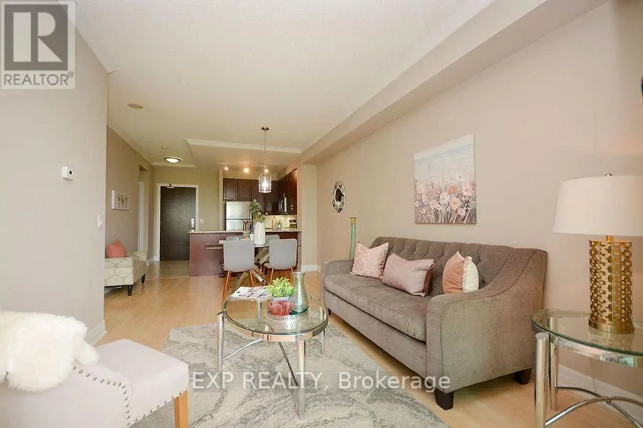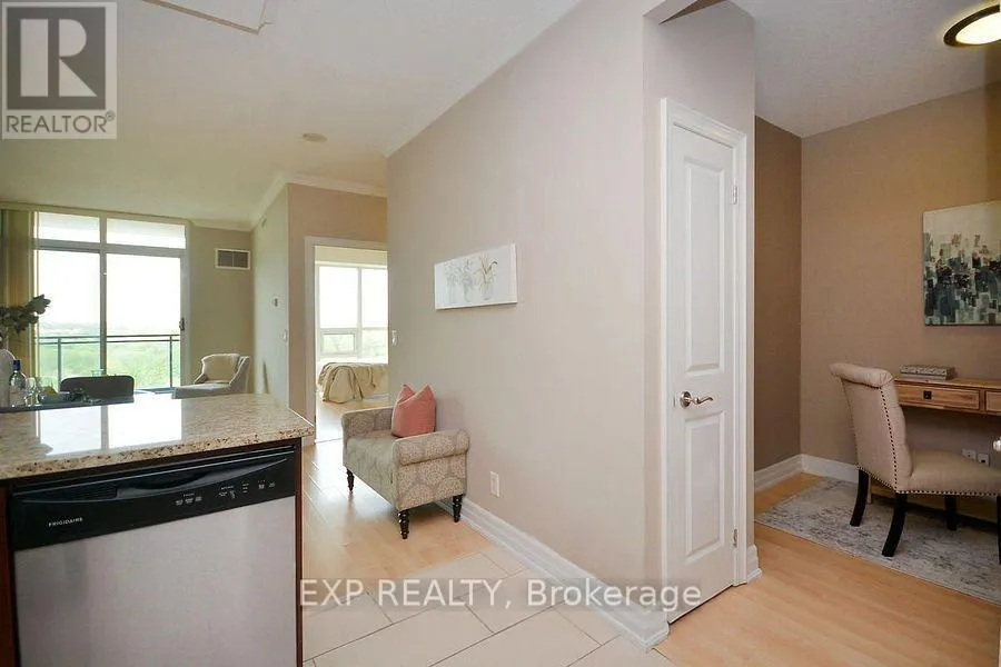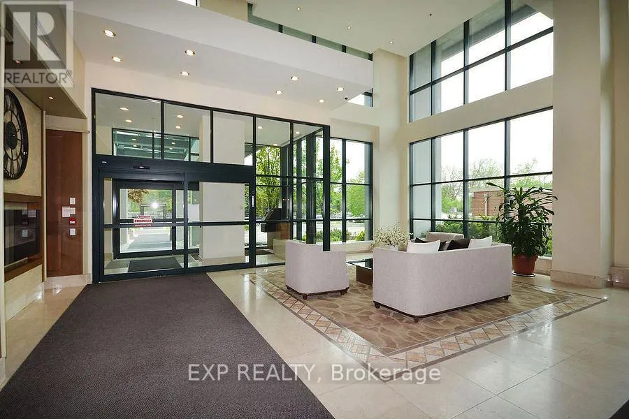 Cross Streets: Queen & Centre. ** Directions: Visitor Parking at Ground level. Welcome to this bright and spacious 1+Den condo in the heart of downtown Brampton, offering just under 800 sq ft of comfortable living. This open-concept unit features a modern kitchen with granite counters, extended cabinetry, black stainless steel appliances, and a spacious living area with large west-facing windows providing stunning sunset views. The primary bedroom is generously sized with plenty of natural light, and the den is perfect for a home office or study area. Enjoy 9' ceilings, in-unit laundry, and clean modern finishes throughout. Located in a well-managed building with excellent amenities including 24-hour concierge, fitness centre, party room, billiards room, library, guest suites, and more. Walk to Gage Park, Rose Theatre, Brampton GO Station, restaurants, shopping, and hospital. Ideal for professionals, couples, or downsizers seeking lifestyle and convenience. (id:27476)