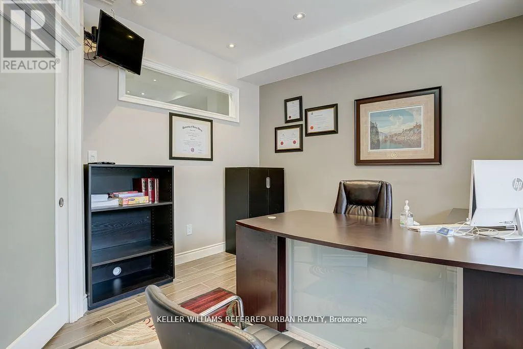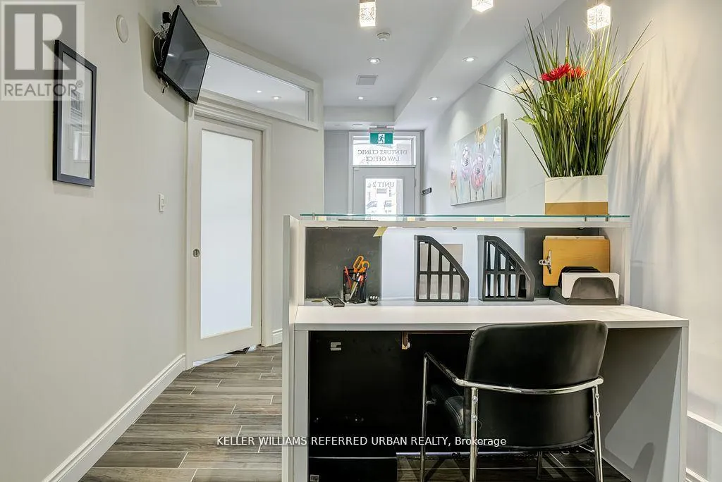 Creditview/James Potter Nestled in a prime location, just a stone's throw away from the bustling Mount Pleasant GO station and surrounded by a thriving residential area, this 600 sq.ft. commercial office space offers the ultimate fusion of convenience and opportunity. Being part of a lively residential neighborhood not only fosters a sense of community but also presents boundless opportunities for networking and potential clientele. Your office space at 44 Baycliffe Crescent will become the go-to destination for local professionals seeking excellence and expertise. Step into a realm of boundless potential as you explore the thoughtfully designed interior of this unit. Two expertly crafted offices await, adorned with modern accents and functionality to inspire your best work. The welcoming reception area, sets the stage for a warm and inviting atmosphere, making every visitor feel right at home. Tenant to pay utilities, taxes, and HST. Client parking is available directly on the street. One operator parking is available at the back. (id:27476)