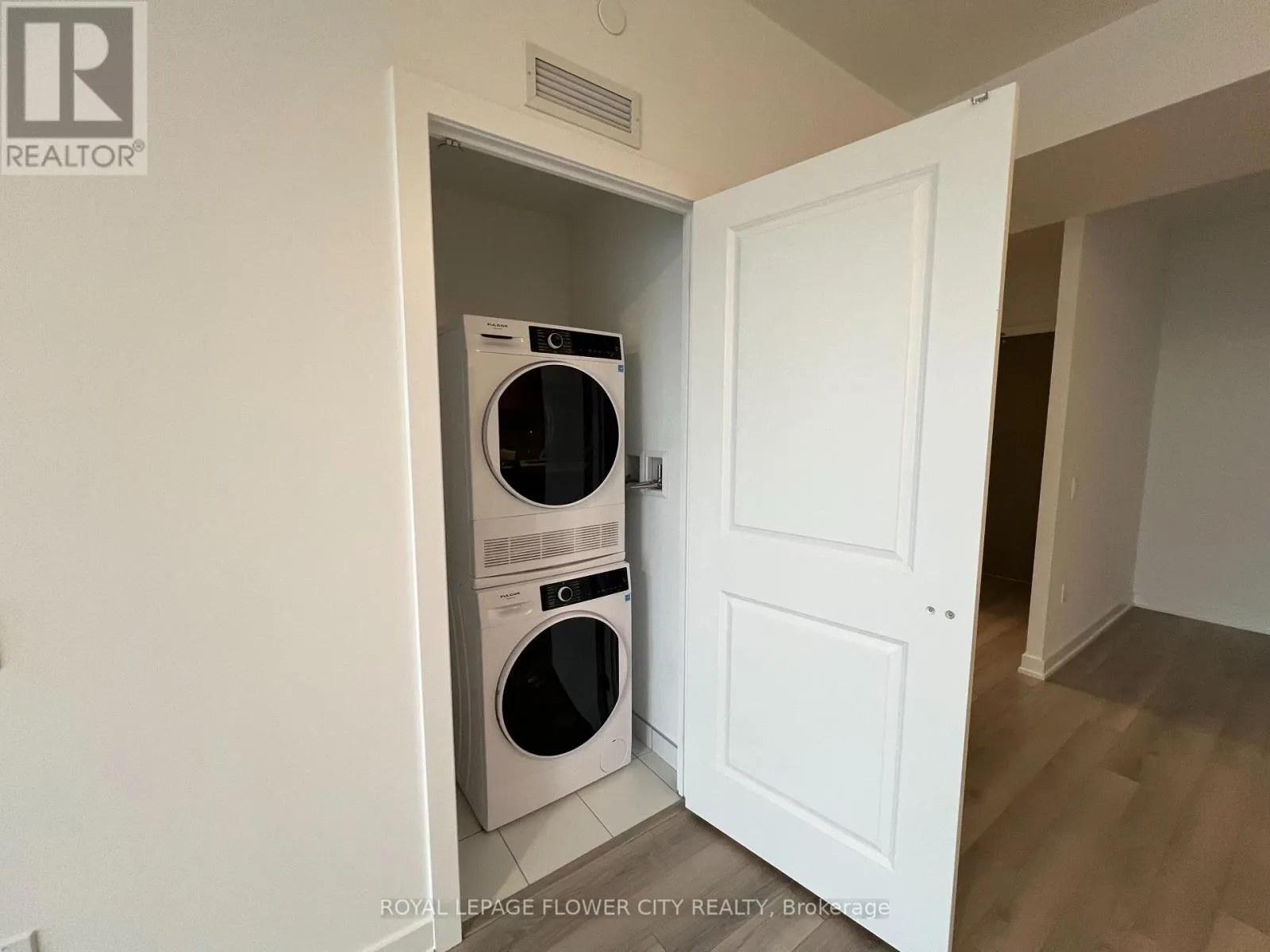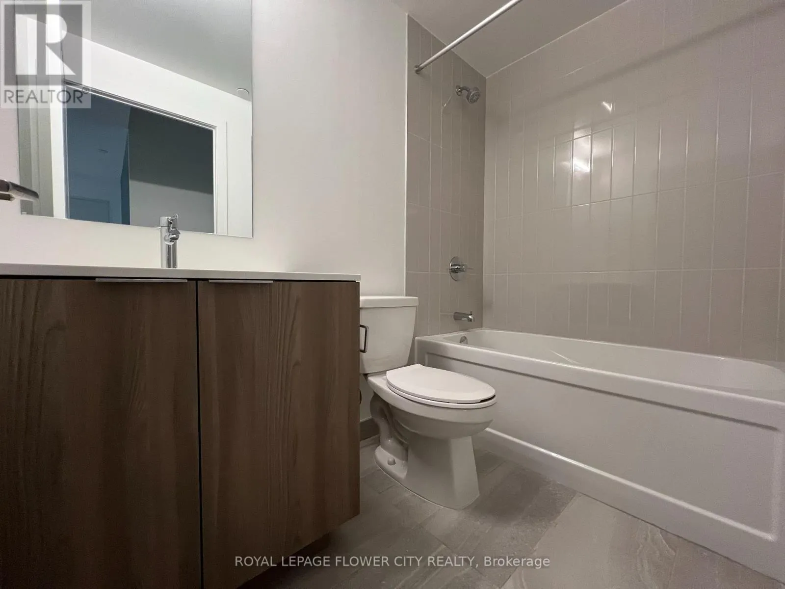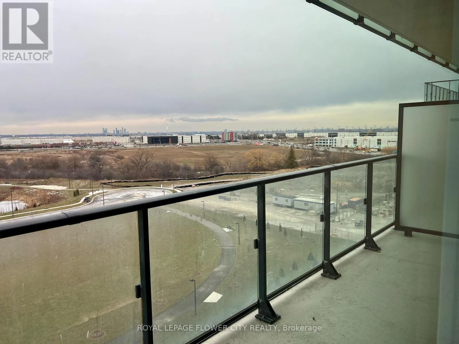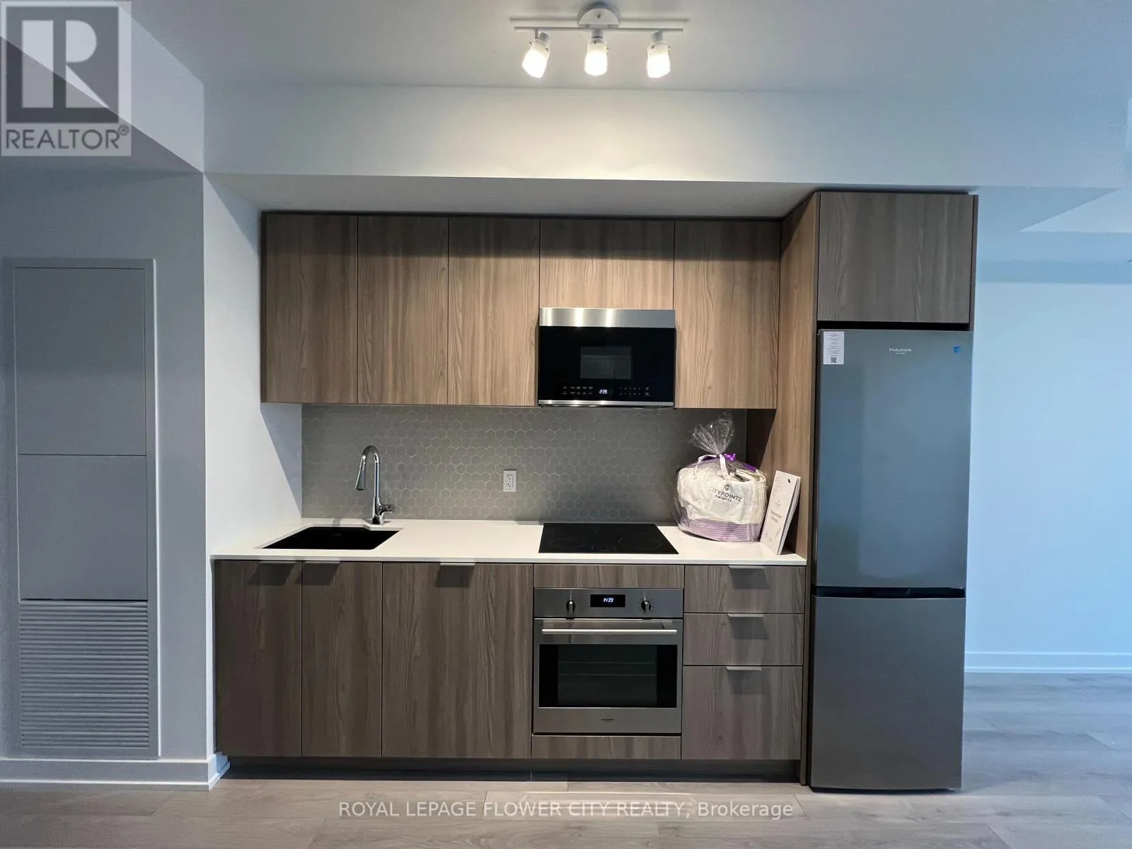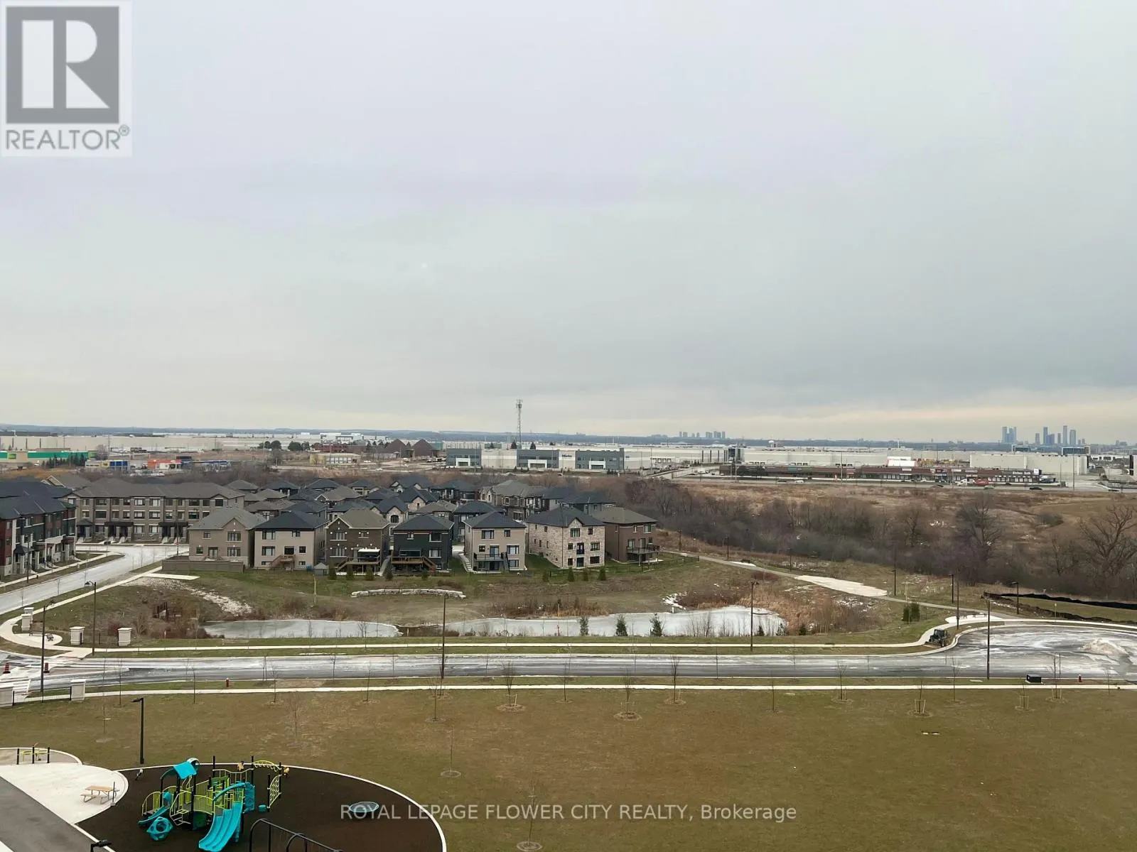 The Gore Rd & Hwy 7 Welcome to City Pointe at 15 Skyridge Drive in Brampton's sought-after Bram East community. This brand-new762 sq. ft. 1-bedroom plus den, 2-bath suite offers a bright, open-concept design featuring 9-foot ceilings creating a warm and welcoming ambiance. Thoughtfully designed den can easily serve as a second bedroom, home office, study, or guest area. A sleek modern kitchen with built-in appliances and a contemporary backsplash smoothly connects to living and dining area, which opens onto a large private balcony. The primary bedroom features laminate flooring and a full ensuite. One underground parking space is included. Residents enjoy access to an impressive selection of building amenities, including a fully equipped fitness centre, theatre room, coffee bar, recreation and games rooms, and a stylish party room. Conveniently located just minutes from Costco, grocery stores, restaurants, cafés, places of worship, parks, walking trails, and lush green spaces. Top location offering a perfect balance of urban living and natural serenity. Quick access to Highways, public transit, and major arterial roads makes commuting to Vaughan, Woodbridge, and across the GTA smooth and convenient. (id:27476)