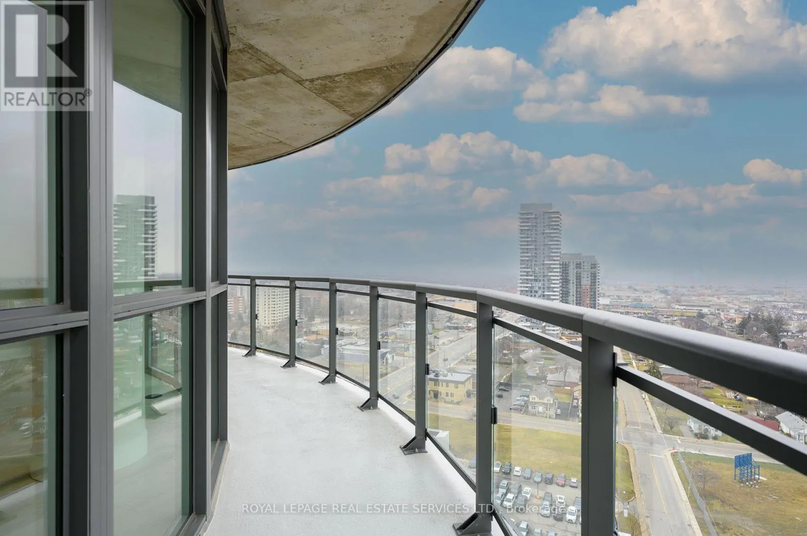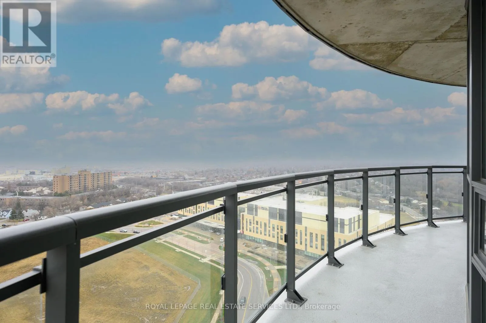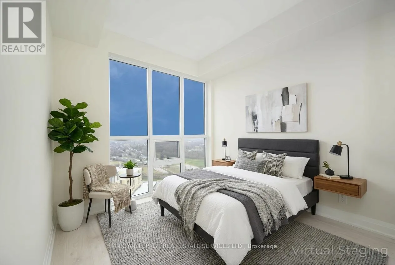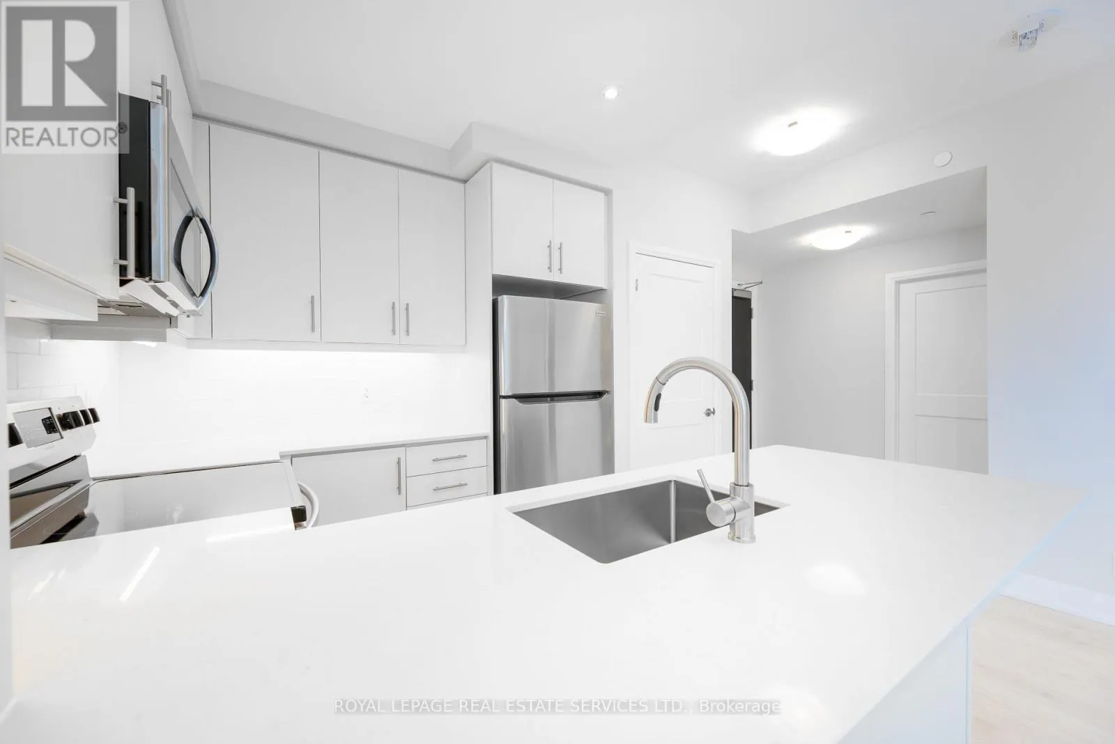 Lynch St & John St Discover elevated urban living at the Symphony Condos, perfectly situated in the heart of Brampton. This captivating suite is defined by its expansive floor-to-ceiling windows and a stunning wrap-around balcony that floods the home with natural light. Step through the bright foyer into a modern kitchen featuring quartz countertops, a sleek subway tile backsplash, and stainless steel Frigidaire appliances, all overlooking a pristine living area with spectacular views. The primary retreat offers a large walk-in closet and a private 3-piece ensuite with granite counters and a walk-in shower, while the versatile second bedroom serves ideally as a guest room or home office. Complete with a 4-piece main bath, in-suite laundry, one parking space, and one locker, this unit offers unmatched convenience just moments from Highway 410, shopping, dining, and health amenities. Some photos have been virtually staged. (id:27476)