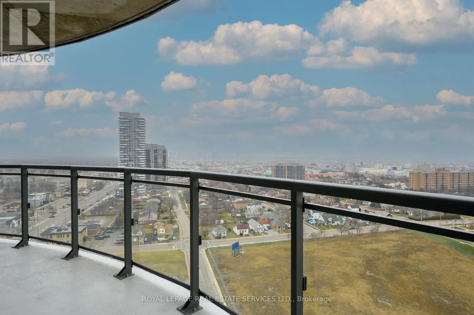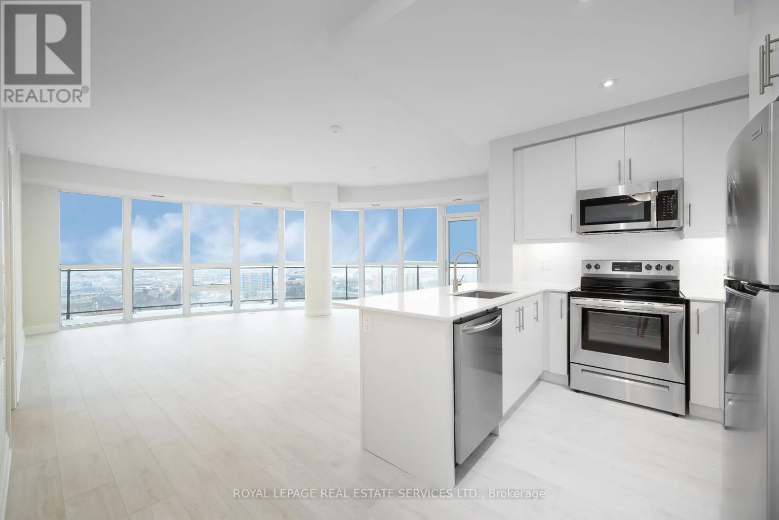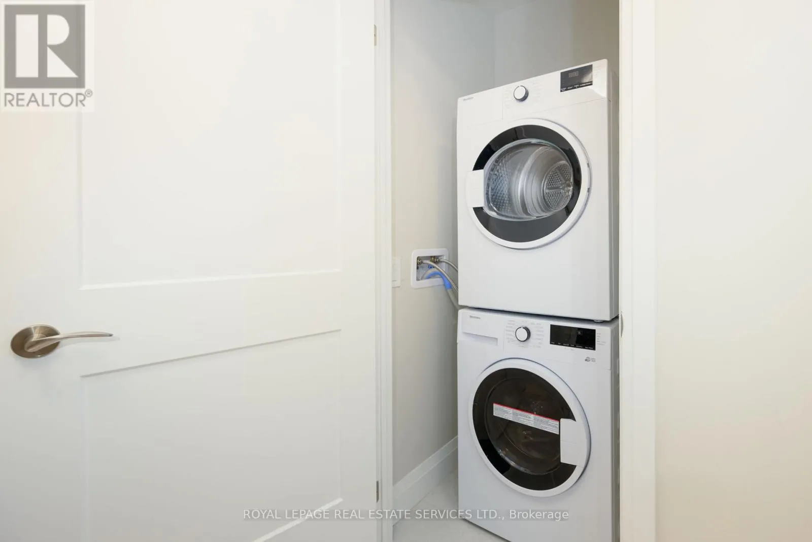 Lynch St & John St Discover elevated urban living at the Symphony Condos, perfectly situated in the heart of Brampton. This captivating suite is defined by its expansive floor-to-ceiling windows and a stunning wrap-around balcony that floods the home with natural light. Step through the bright foyer into a modern kitchen featuring quartz countertops, a sleek subway tile backsplash, and stainless steel Frigidaire appliances, all overlooking a pristine living area with spectacular views. The primary retreat offers a large walk-in closet and a private 3-piece ensuite with granite counters and a walk-in shower, while the versatile second bedroom serves ideally as a guest room or home office. Complete with a 4-piece main bath, in-suite laundry, one parking space, and one locker, this unit offers unmatched convenience just moments from Highway 410, shopping, dining, and health amenities. Some photos have been virtually staged. (id:27476)