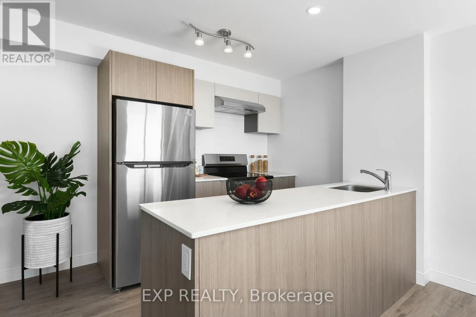 Hurontario & Bovaird Introducing The Tulip, a stylish and spacious 1 bedroom plus den suite at The Manett, Bramptons premier purpose-built rental residence. With 748 square feet of thoughtfully designed interior space and a 109 square foot private balcony, this home is ideal for anyone who wants a little extra room to work, create, or unwind. The open-concept layout features a bright living and dining area that flows into a modern kitchen with quartz countertops, sleek cabinetry, and stainless steel appliances. The full-size bedroom offers comfort and privacy with a generous walk-in closet, while the separate den is perfect for a home office, guest room, or cozy reading space. Other highlights include a 4-piece bathroom, in-suite laundry, large windows, and durable vinyl plank flooring. Central air conditioning and individually controlled heating and cooling keep things comfortable year-round. At The Manett, residents enjoy access to premium amenities including a fully equipped gym, a stylish party room, a landscaped courtyard, bike storage, and available underground parking and storage lockers. Visitor parking, a pet-friendly policy, on-site management, controlled access, and video surveillance offer peace of mind and convenience. Located next to Koretz Park and close to shopping, transit, and Mount Pleasant GO Station, The Tulip offers modern comfort in an unbeatable location. Limited-time offer: get 1 month free rent on a 13-month lease. Parking just $100 per month and storage lockers $25 per month for the first year when added to lease. Conditions apply. (id:27476)