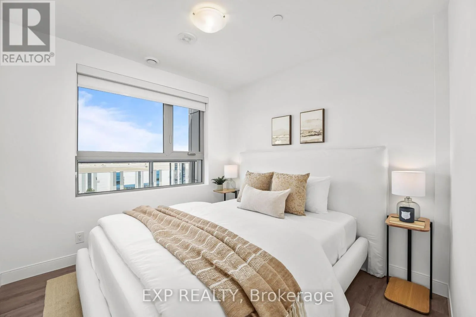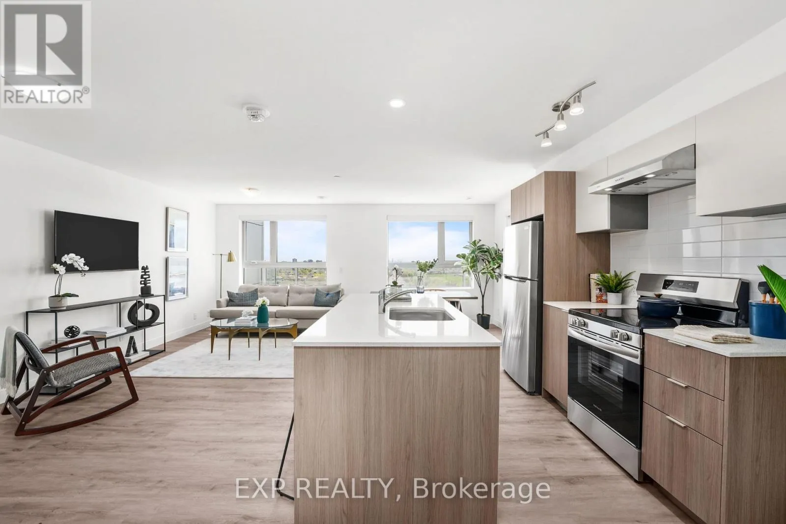 Hurontario & Bovaird Welcome to The Larch, a rare corner suite that truly feels like home. This beautifully designed 2-bedroom residence at The Manett blends spacious indoor comfort with exceptional outdoor living in the heart of Bramptons most thoughtfully crafted rental community. With 877 square feet of smartly designed interior space and a stunning 247 square foot private terrace, its perfect for those who love to relax, entertain, and enjoy the outdoors. Picture summer dinners under the sky, coffee surrounded by potted plants, or quiet afternoons in your own sun-filled retreat. Inside, both bedrooms are nearly 9 by 13.5 feet with full closets and bright windows. Whether you need a home office or a guest room, theres flexibility to suit your lifestyle. The open living and dining area spans over 27 feet, creating a bright, airy flow that feels welcoming and functional. The kitchen features quartz countertops, an island for casual meals, sleek cabinetry, and stainless steel appliances including a fridge, stove, and dishwasher. Vinyl plank flooring throughout adds a clean, modern touch, while in-suite laundry, central A/C, and individually controlled heating and cooling ensure everyday ease. At The Manett, you'll enjoy a fully equipped gym, social lounge, landscaped courtyard, secure key fob entry, video surveillance, and professional on-site management. Underground parking and storage lockers are available for lease, with visitor parking and a pet-friendly policy too. Limited-time offer: get 1 month free rent on a 13-month lease. Parking just $100 per month and storage lockers $25 per month for the first year when added to lease. Conditions apply. (id:27476)