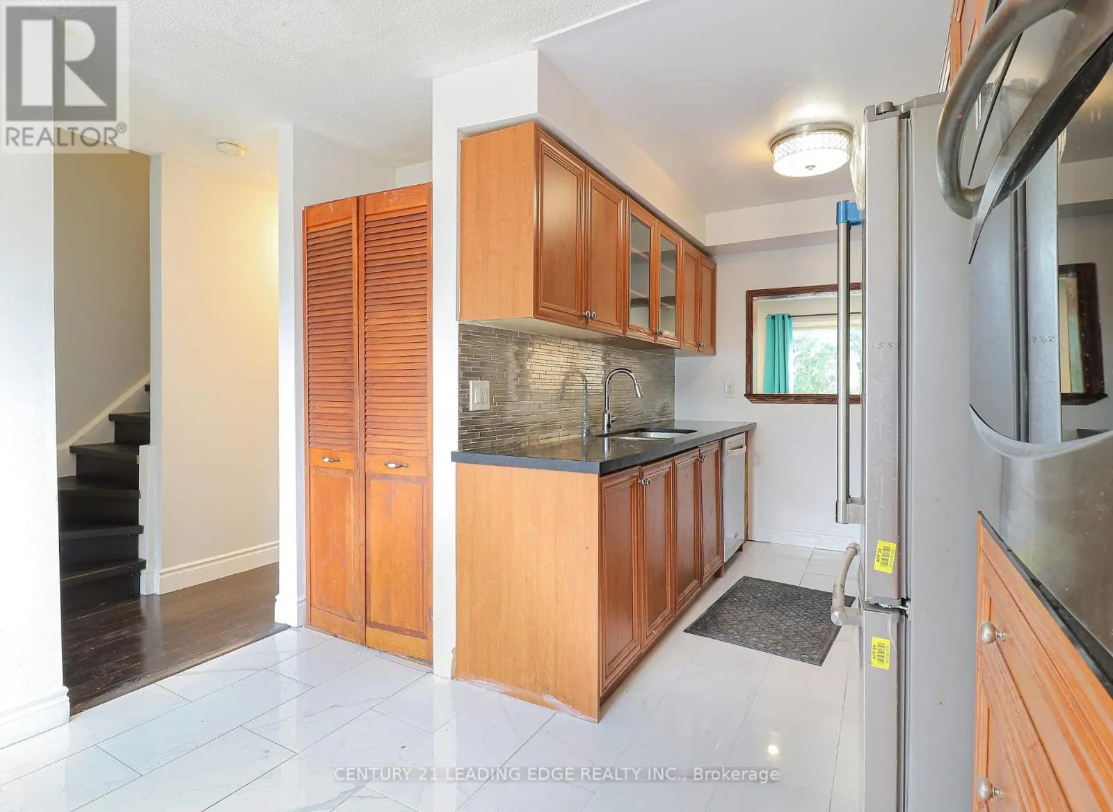 Dixie Rd. & Clark Ave. This beautifully updated and spacious 3+1 townhouse boasts over $50,000 in recent renovations and is nestled in a quiet, family-friendly complex within a highly sought-after central location. Step inside to a bright, contemporary eat-in kitchen featuring featuring a pantry. The main floor is finished with luxurious porcelain flooring, seamlessly flowing through the open-concept living and dining area, perfect for both everyday living and entertaining. A beautifully renovated four-piece bathroom offers a spa-like feel. Enjoy outdoor living in the fully fenced backyard, ideal for families and pets. This home offers true maintenance-free living, with lawn care and snow removal handled by the corporation. Residents will appreciate access to a community outdoor pool and the unbeatable convenience of being minutes from schools, parks, the library, Brampton City Centre, and public transit. Additional upgrades include extra attic insulation, adding comfort and energy efficiency. A perfect blend of style, comfort, and location-this home is not to be missed. (id:27476)