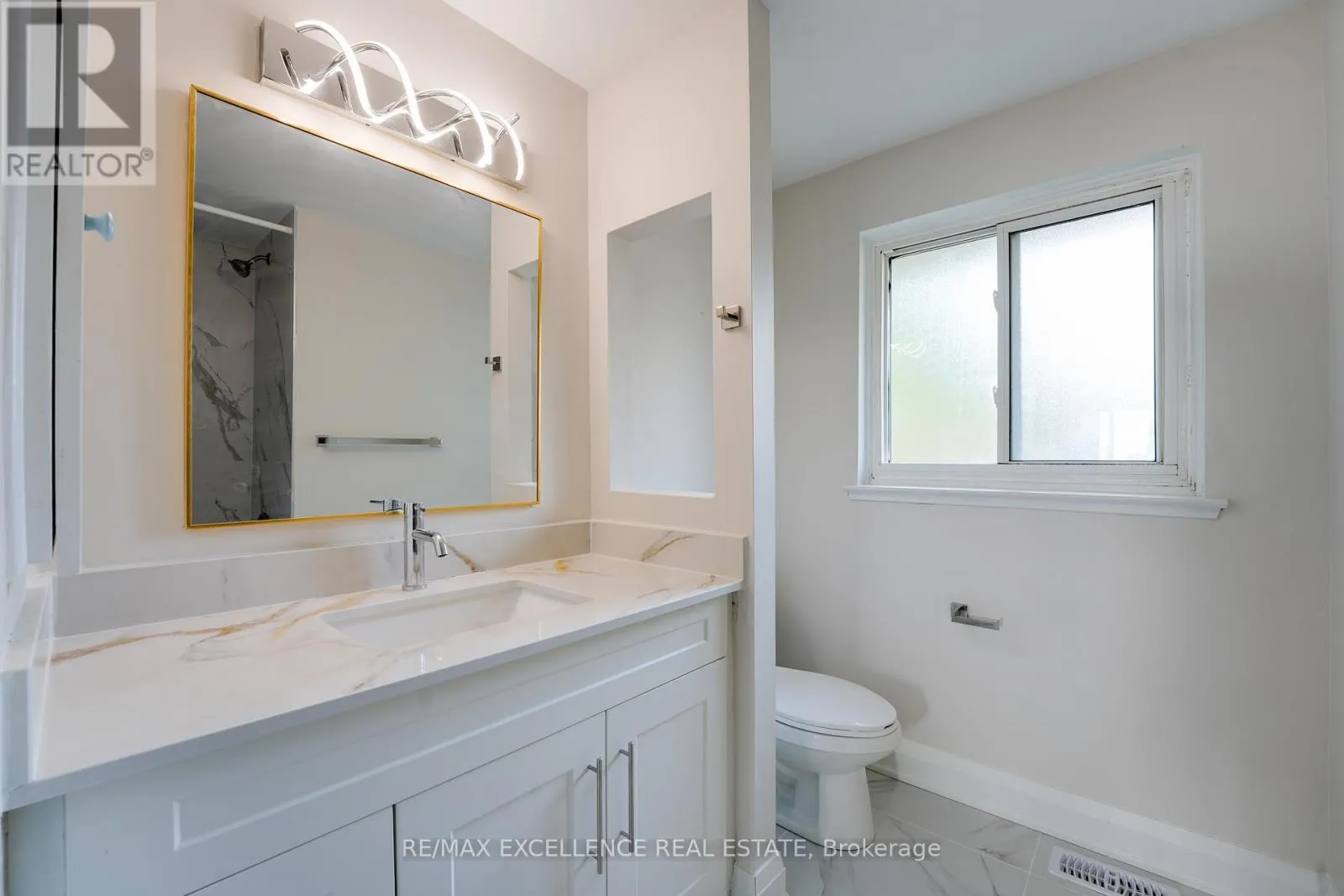 Kennedy/Bartley Bull Welcome to this beautifully renovated 3-bedroom detached side-split bungalow, offering modern comfort and timeless charm. Step inside to an inviting open-concept layout with brand-new laminate flooring throughout, creating a warm and seamless flow. The stunning new kitchen is the heart of the home, featuring sleek new cabinets, stylish countertops, stainless steel appliances, and a new range hood fan. Freshly painted in neutral tones, every room feels bright and refreshed. The home boasts upgraded lighting fixtures that add both elegance and functionality. The newly updated bathroom includes a new vanity, toilet, and bathtub, providing a spa-like retreat. The finished basement extends your living space, ideal for a family room, home office, or entertainment area. With a side-split design, this home offers both privacy and openness, perfect for todays lifestyle. Situated on a detached lot, it provides ample outdoor space for gardening, entertaining, or simply relaxing. Move-in ready with all the major updates complete just unpack and enjoy! (id:27476)