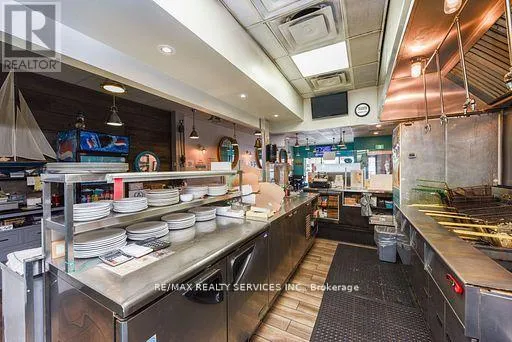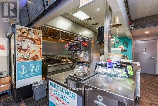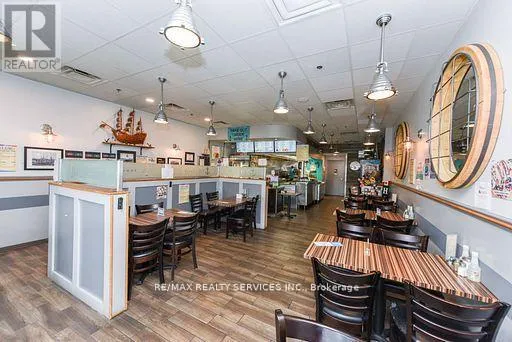Cross Streets: Kennedy rd and sandalwood pkwy east. ** Directions: Kennedy/ Sandalwood. Exceptional Turnkey Opportunity Award-Winning Fish & Chips Restaurant in Brampton! No Franchise restrictions, No royalty fees!. Own your own Brand Discover one of Brampton's highest-rated fish & chips restaurants on Google, boasting a diamond and platinum award from the Brampton Guardian for outstanding seafood and fish & chips. This beautifully designed, professionally built-out restaurant features a charming nautical-themed dining area and is LLBO licensed, offering a warm and inviting ambiance with a stunning 100-year-old barn board accent wall. Offers full dine-in & takeout service, plus a famous dessert menu featuring the best funnel cakes in town. Located in a high foot traffic plaza, this restaurant enjoys a loyal and abundant customer base with strong repeat business and excellent community presence. Option to extend business hours for increased revenue. The commercial kitchen is professionally and efficiently designed for optimal workflow and productivity ideal for busy service times. Don't miss this rare opportunity to own a thriving, reputable restaurant with proven success and strong brand recognition, successful business with room to grow! . This is Fantastic opportunity to take over a thriving. Fully operational Restaurant. (id:27476)