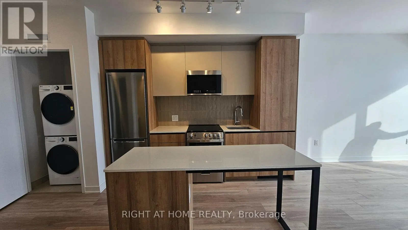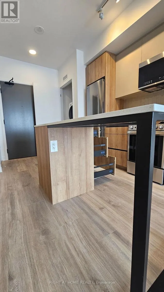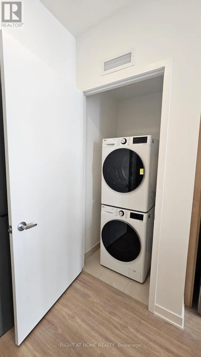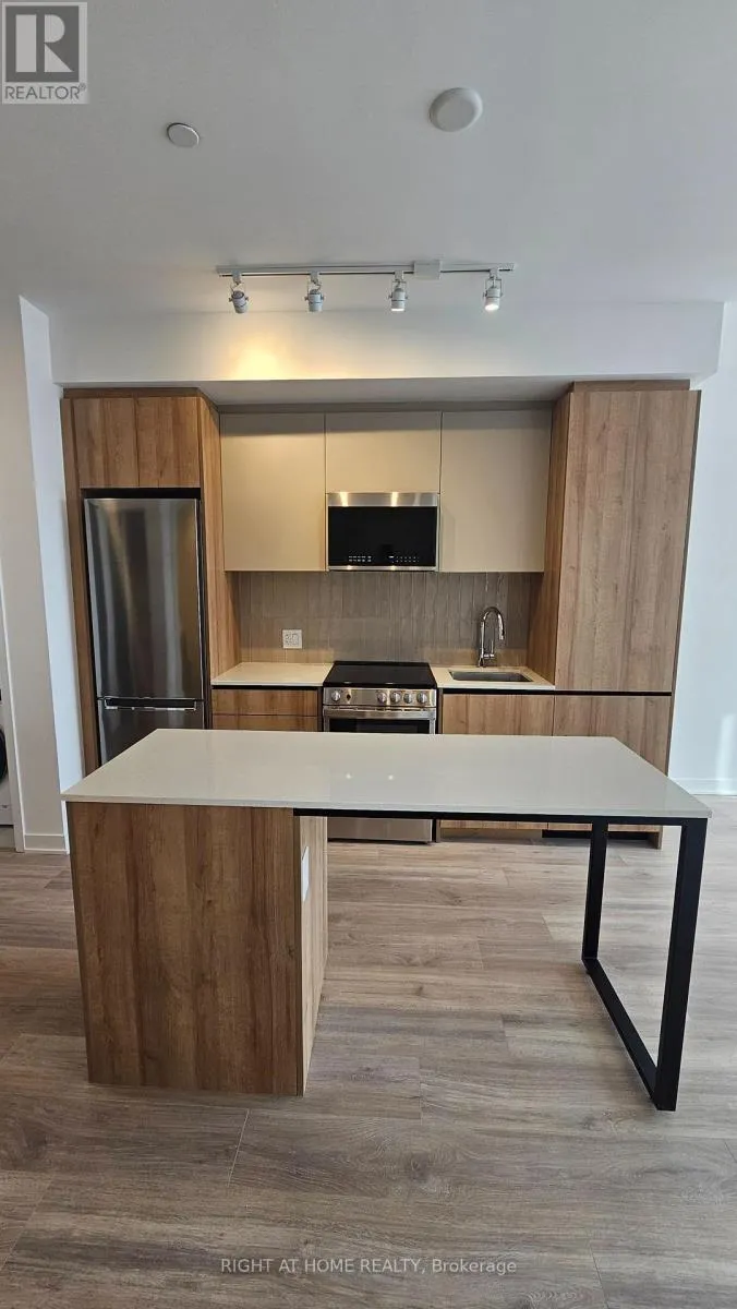 Mississauga Rd and Bovaird Gorgeous brand new 'never lived in' One Bedroom plus den condo located in the sought after Mount Pleasant area in MPV2 (East Tower) by "Daniels". Excellent layout with 9 foot ceilings, Led lighting, smooth ceilings, laminate plank floors throughout, and a walkout to a large balcony with an unobstructed South view. Property features one parking, LG en-suite laundry. Modern kitchen with quartz counter tops, soft closing cabinetry/drawers, ceramic backsplash, under cabinet lighting, under mount sink, centre island with storage space, paneled GE dishwasher, and stainless steel appliances. Open concept living/dining room area with walk-out to balcony. Primary bedroom with large double mirrored closet. Good sized den ideal for home office. 4 piece bathroom offering vanity with soft closing drawers and soaker tub. Premium building facilities with fitness centre, activity zone, impressive lobby area with 24 hour concierge, co-working space, kid's club, games lounge, party room, outdoor barbeque. Conveniently located just minutes to Mount Pleasant GO Station, shopping, parks, trails, schools, highways, and public transit. All utilities to be paid by tenant. (id:27476)