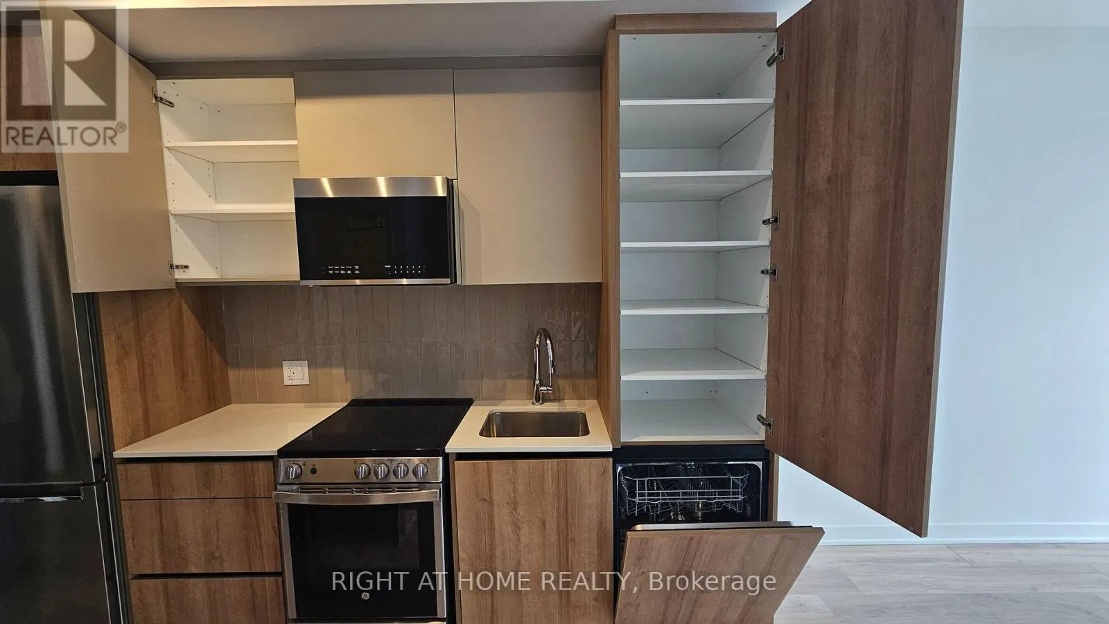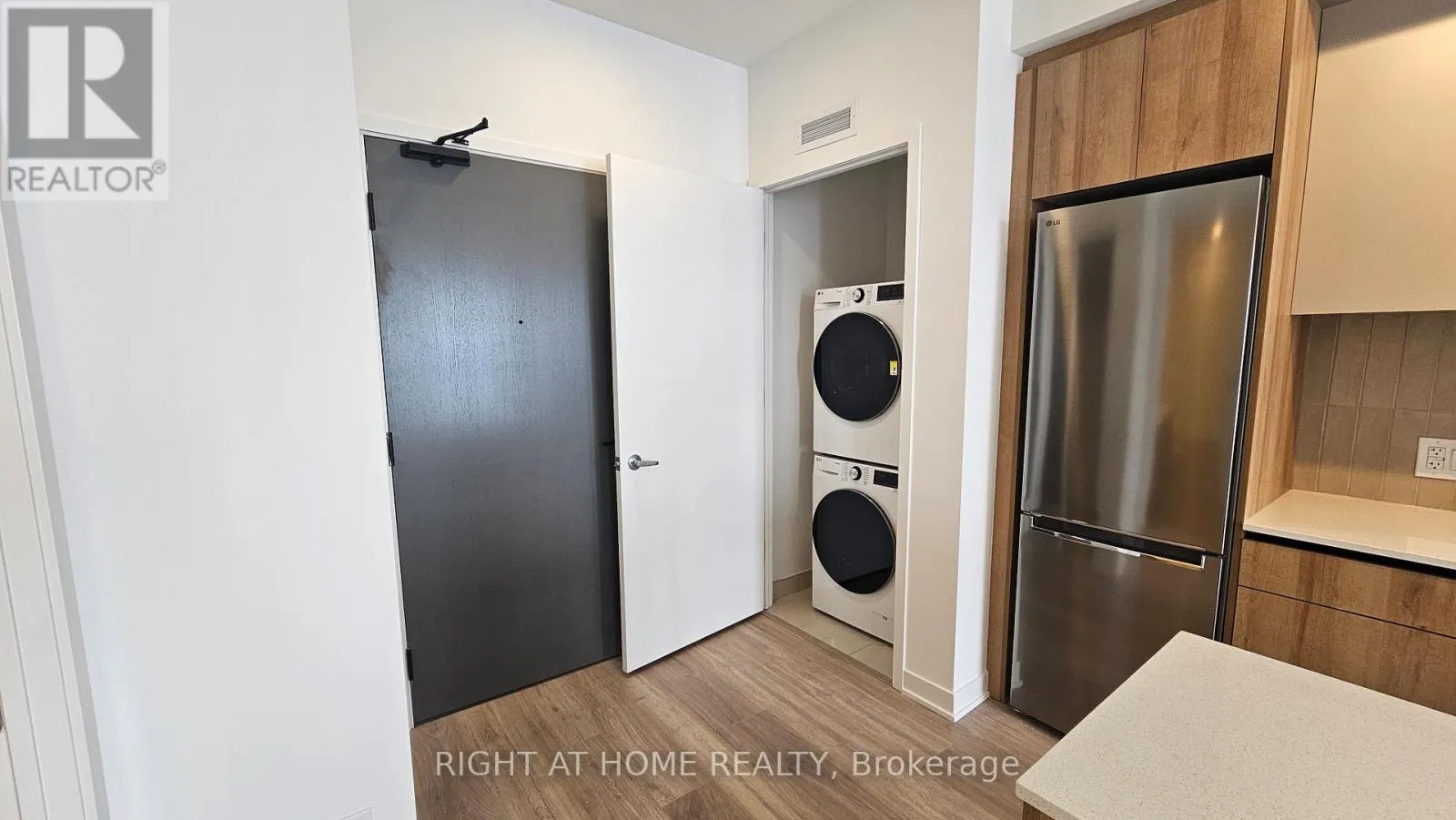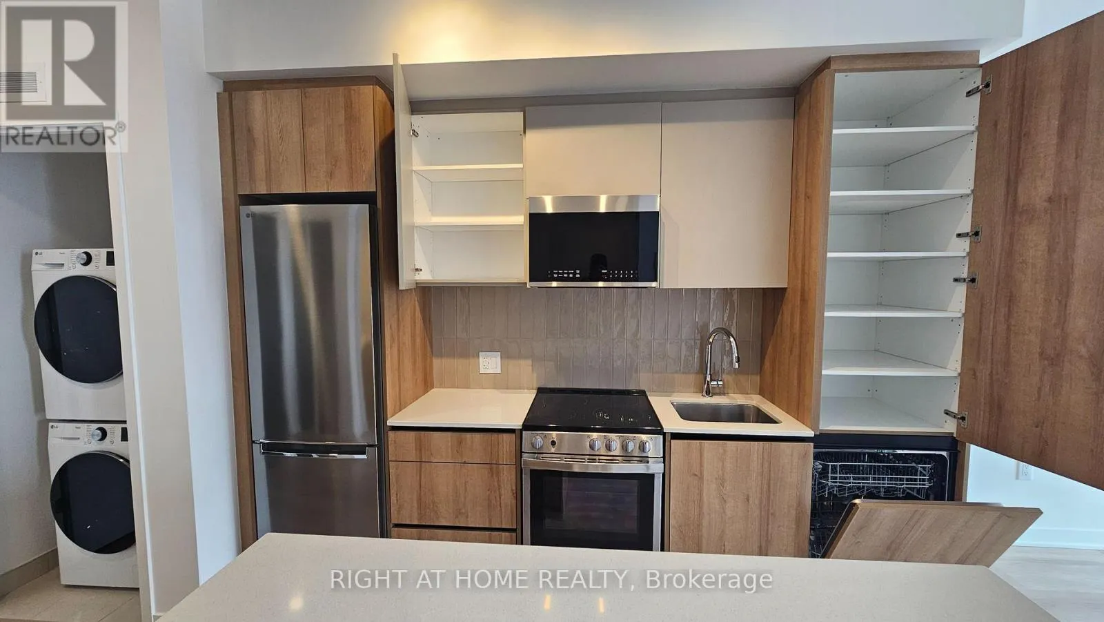 Mississauga Rd and Bovaird Gorgeous brand new 'never lived in' One Bedroom plus den condo located in the sought after Mount Pleasant area in MPV2 (East Tower) by "Daniels". Excellent layout with 9 foot ceilings, Led lighting, smooth ceilings, laminate plank floors throughout, and a walkout to a large balcony with an unobstructed South view. Property features one parking, LG en-suite laundry. Modern kitchen with quartz counter tops, soft closing cabinetry/drawers, ceramic backsplash, under cabinet lighting, under mount sink, centre island with storage space, paneled GE dishwasher, and stainless steel appliances. Open concept living/dining room area with walk-out to balcony. Primary bedroom with large double mirrored closet. Good sized den ideal for home office. 4 piece bathroom offering vanity with soft closing drawers and soaker tub. Premium building facilities with fitness centre, activity zone, impressive lobby area with 24 hour concierge, co-working space, kid's club, games lounge, party room, outdoor barbeque. Conveniently located just minutes to Mount Pleasant GO Station, shopping, parks, trails, schools, highways, and public transit. All utilities to be paid by tenant. (id:27476)