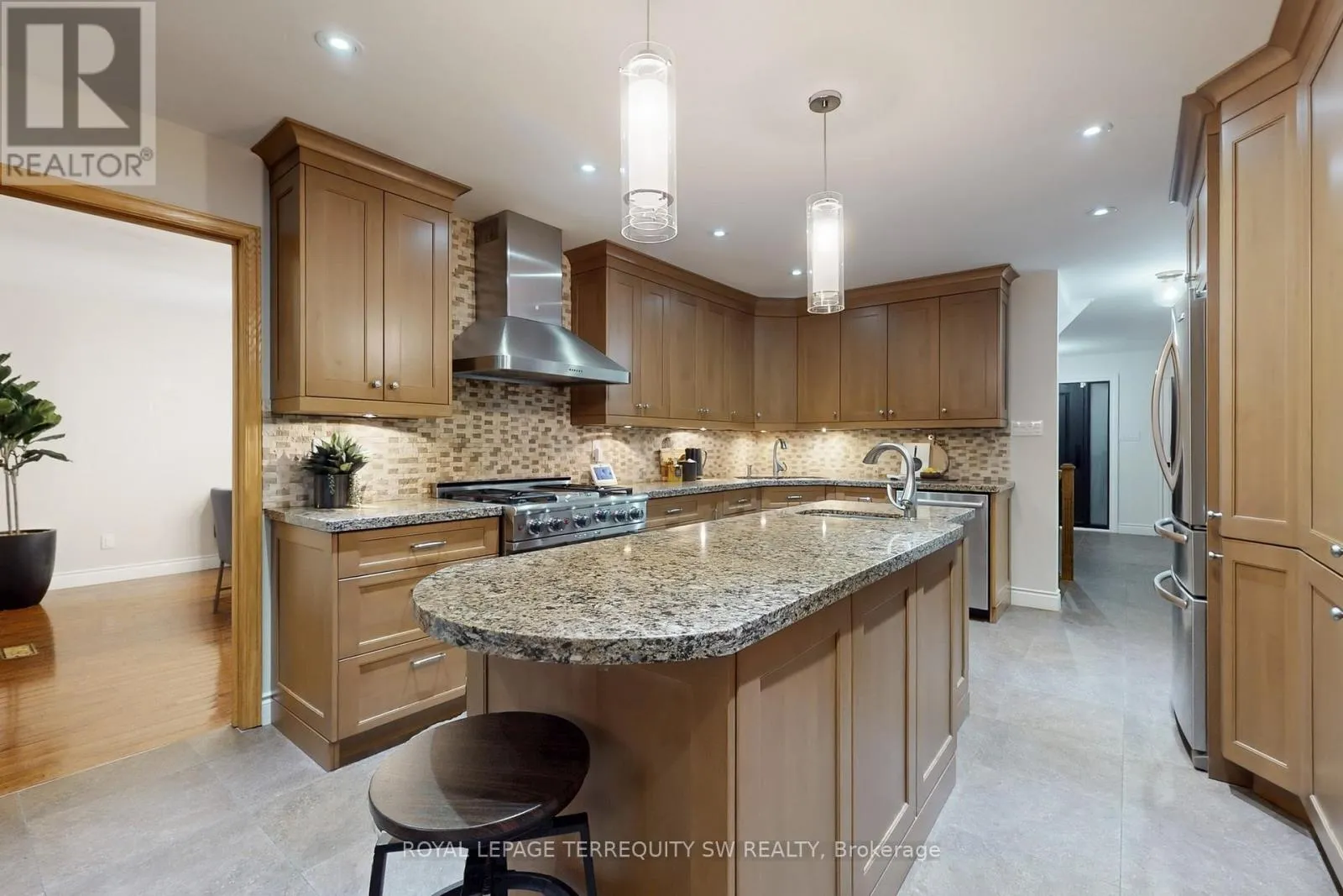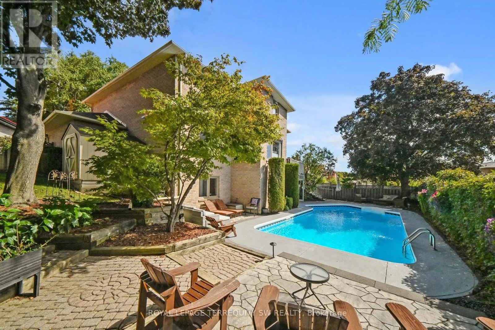 Kennedy Rd / Mcfadden Dr Tucked away on a quiet cul-de-sac in one of Brampton's most established enclaves, 8 Chalmers Court offers an exceptional balance of elegance, comfort, and family functionality. This detached 2 storey executive brick home sits on a mature, pie-shaped lot measuring 52 ft across at the front widening to over 130ft at the rear-surrounded by manicured gardens, mature trees, and resort-style outdoor living with a stone patio, gazebo, pristine heated in-ground pool. A gracious foyer opens to distinct principal rooms with refined finishes: formal living and dining rooms with French drs, smooth ceilings, and gleaming hardwood floors; a bright family room anchored by a gas fireplace, built-in cabinetry, and patio doors to the sun deck. The chef's kitchen impresses with granite countertops, centre island, custom backsplash, gas stove, under-mount lighting, pot lights, beverage fridge, and stainless-steel appliances. The adjoining breakfast rm-featuring a bay window and walk-out to the deck-overlooks the lush gardens, gazebo, and pool. Upstairs, the spacious primary suite (incorporating the fifth bedroom) offers a private dressing area, hardwood floors, and a luxurious 4-pc ensuite with heated floors, double sinks, glass shower, and standalone tub. Three additional bedrooms and a skylit hallway complete the level. The finished lower level adds a versatile recreation room with wood-burning fireplace, wet bar, games area, 4-pc bath with Jacuzzi, exercise space, built-ins, and a walk-out to the patio. Recent updates include roof(2023), main bath(2016), new blinds throughout, 200-amp service + pony panel, pool liner(10 yrs), pump(5 yrs), heater(10 yrs), and backyard patio (3 yrs). Additional features: central air, central vac, security system, in-ground sprinklers, landscape lighting, and gas line for BBQ/fire table. Minutes to schools, parks, and major routes (410/407/401), a beautifully maintained executive residence on a peaceful court-pride of ownership shines inside and out. (id:27476)