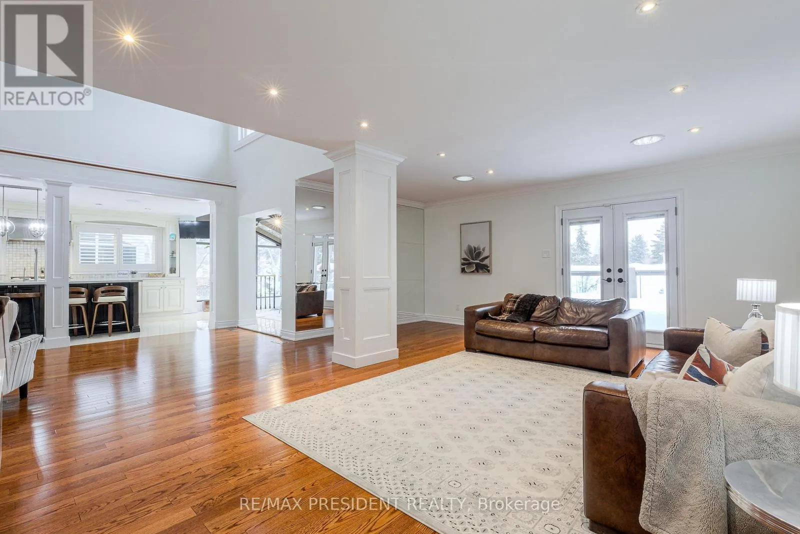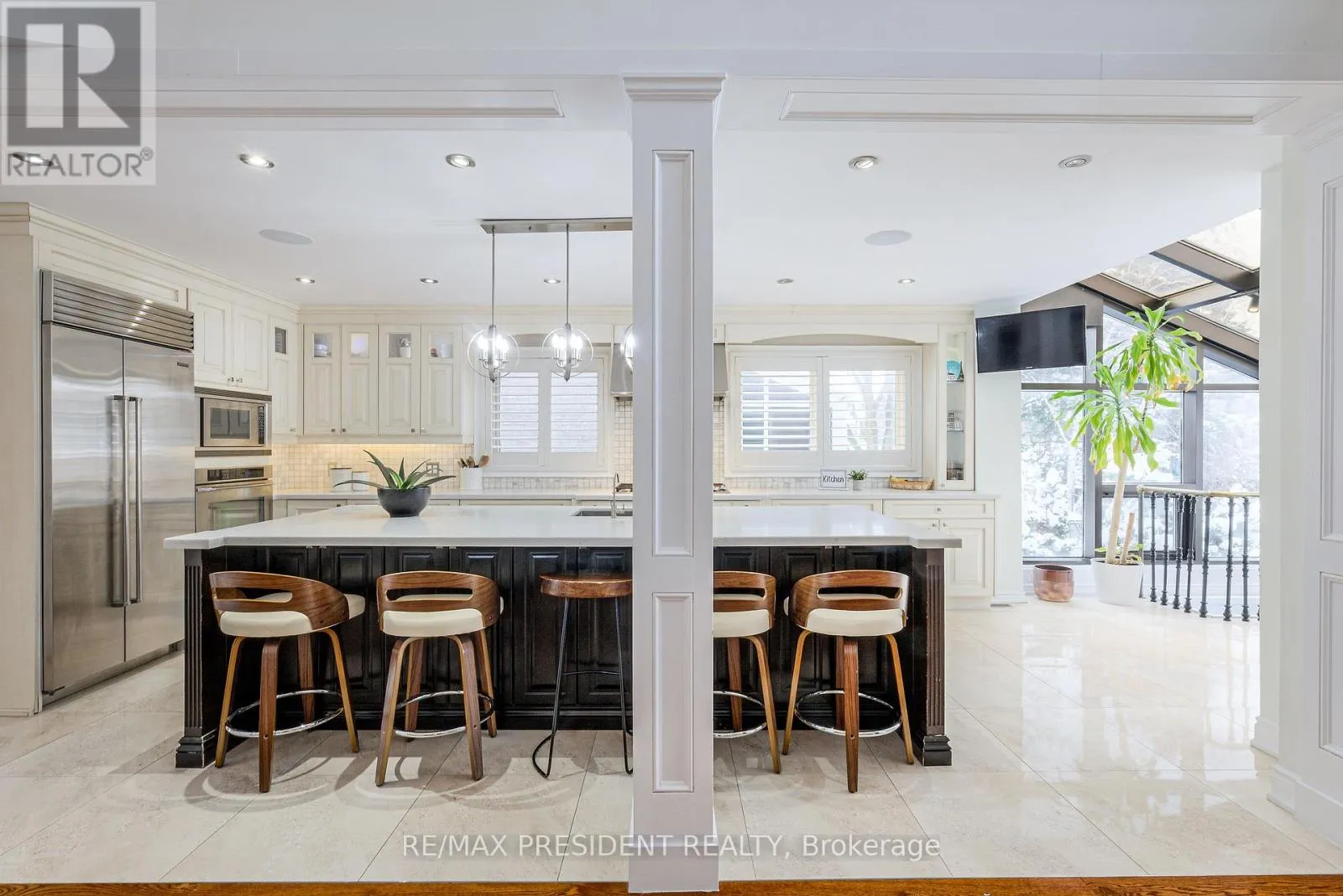 Kennedy / Conservation Dr Luxury, privacy, and entertainer's paradise at 42 Mount Forest. This 3,600 sq ft all-brick home sits on a rare 65' x 130' lot backing onto a serene greenbelt and trails. Featuring a 3-car garage and professionally landscaped grounds, the backyard boasts an underground pool, interlocking stone, and a dramatic stone waterfall. Step inside to a grand foyer with designer chandeliers and custom wainscoting. Sunken living and dining rooms are perfect for hosting, while the gourmet kitchen features high-end Sub-Zero and Dacor appliances, a 10' quartz island, marble backsplash, and overlooks a sitting area with a two-storey stone gas fireplace. Family room with custom TV wall unit and deck access. Two-level glass solarium with private greenbelt views, custom espresso bar, and cast-iron staircase. Second floor hosts four spacious bedrooms. The primary suite features a 4-piece ensuite, enormous walk-in closet, and custom wall unit. The second full bathroom is fully renovated, spa-like, with a custom curbless shower. No carpet throughout. Walkout basement includes a hot tub, sauna, custom home theatre ($250K invested), and two full-size bathrooms. Backyard oasis perfect for entertaining with pool and waterfall. A rare luxury home designed for comfort, style, and unforgettable gatherings. (id:27476)