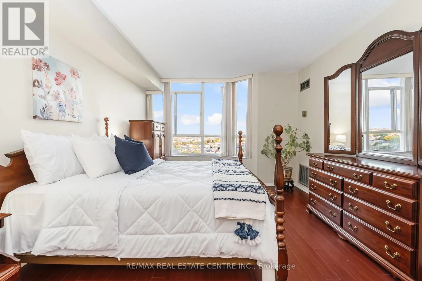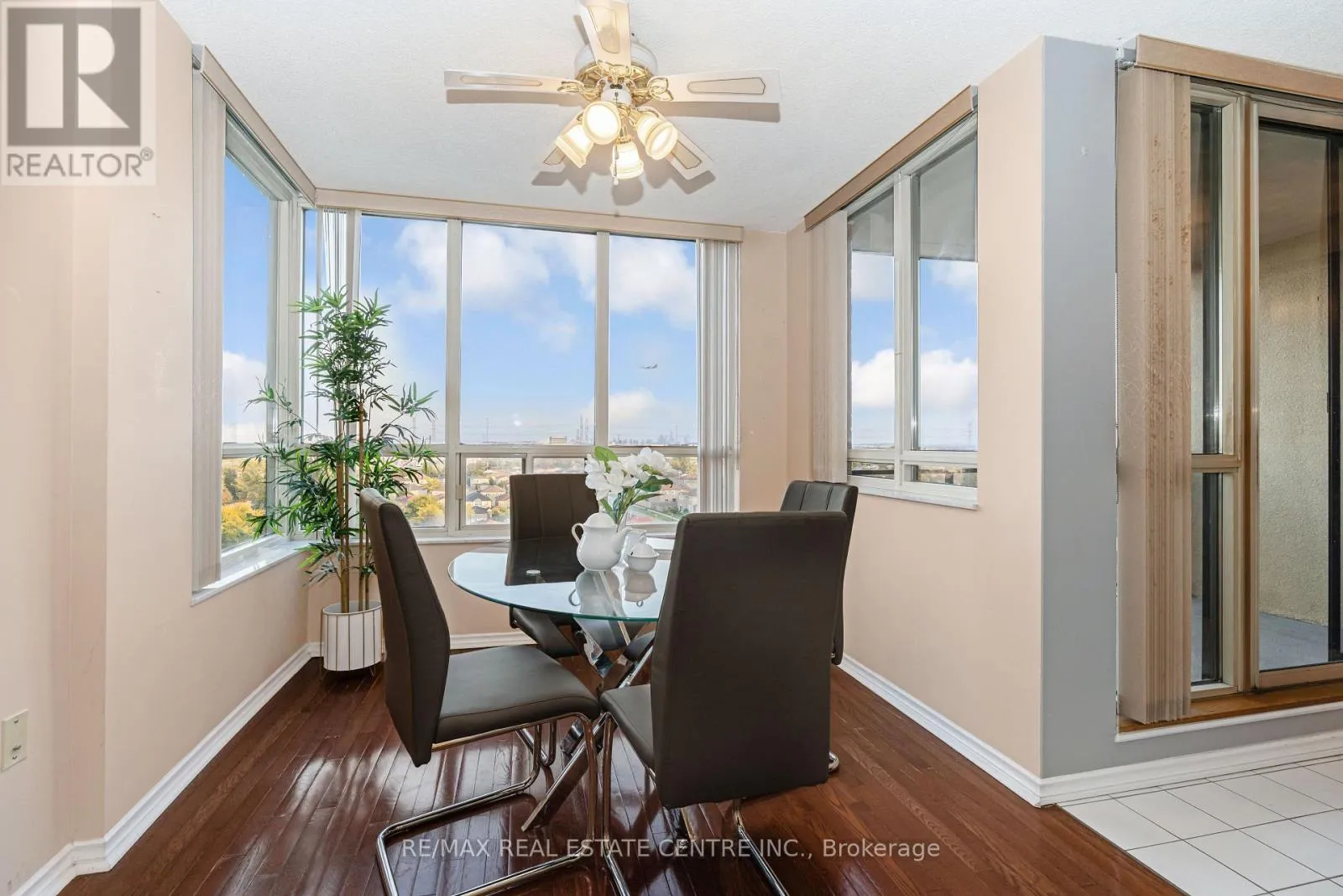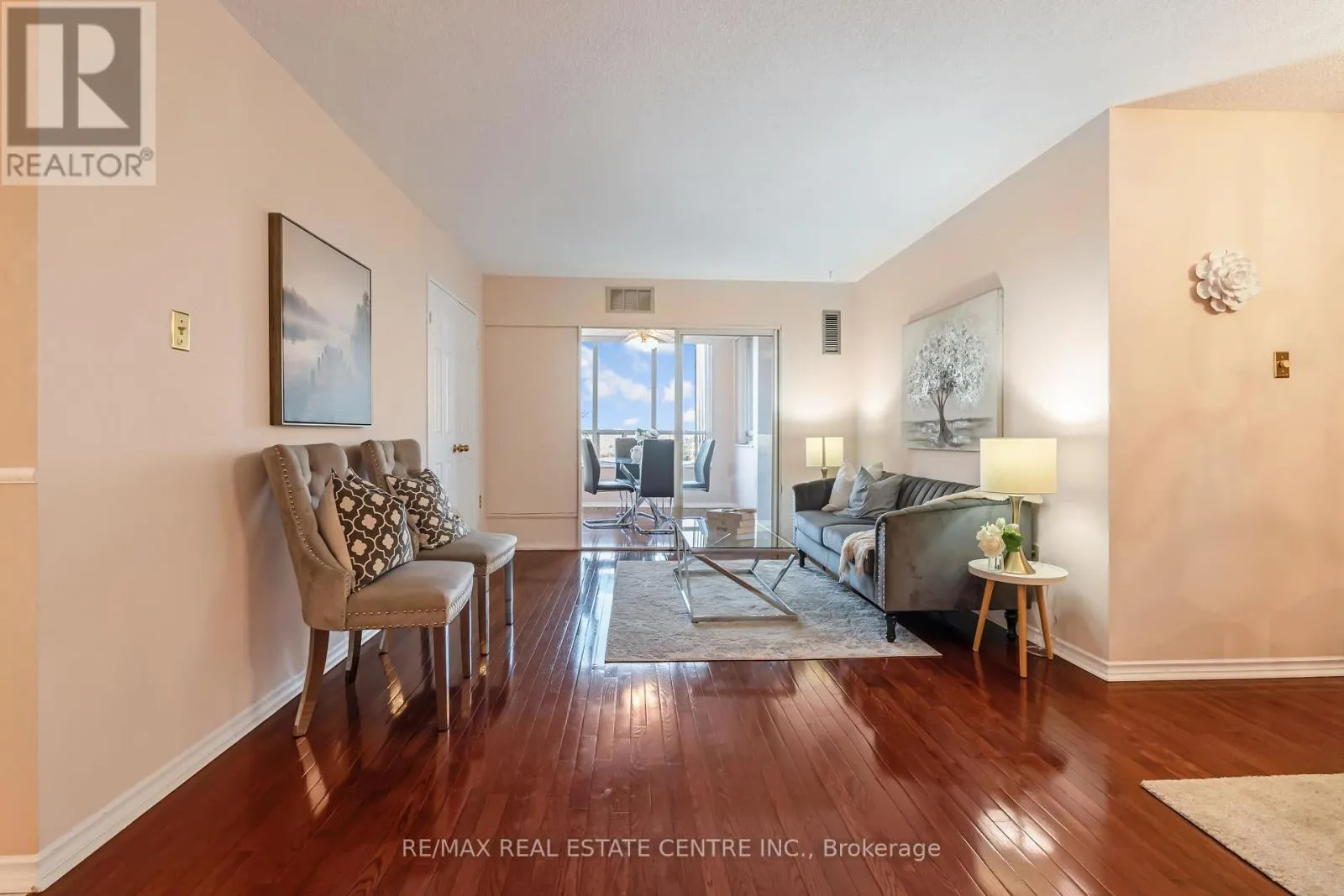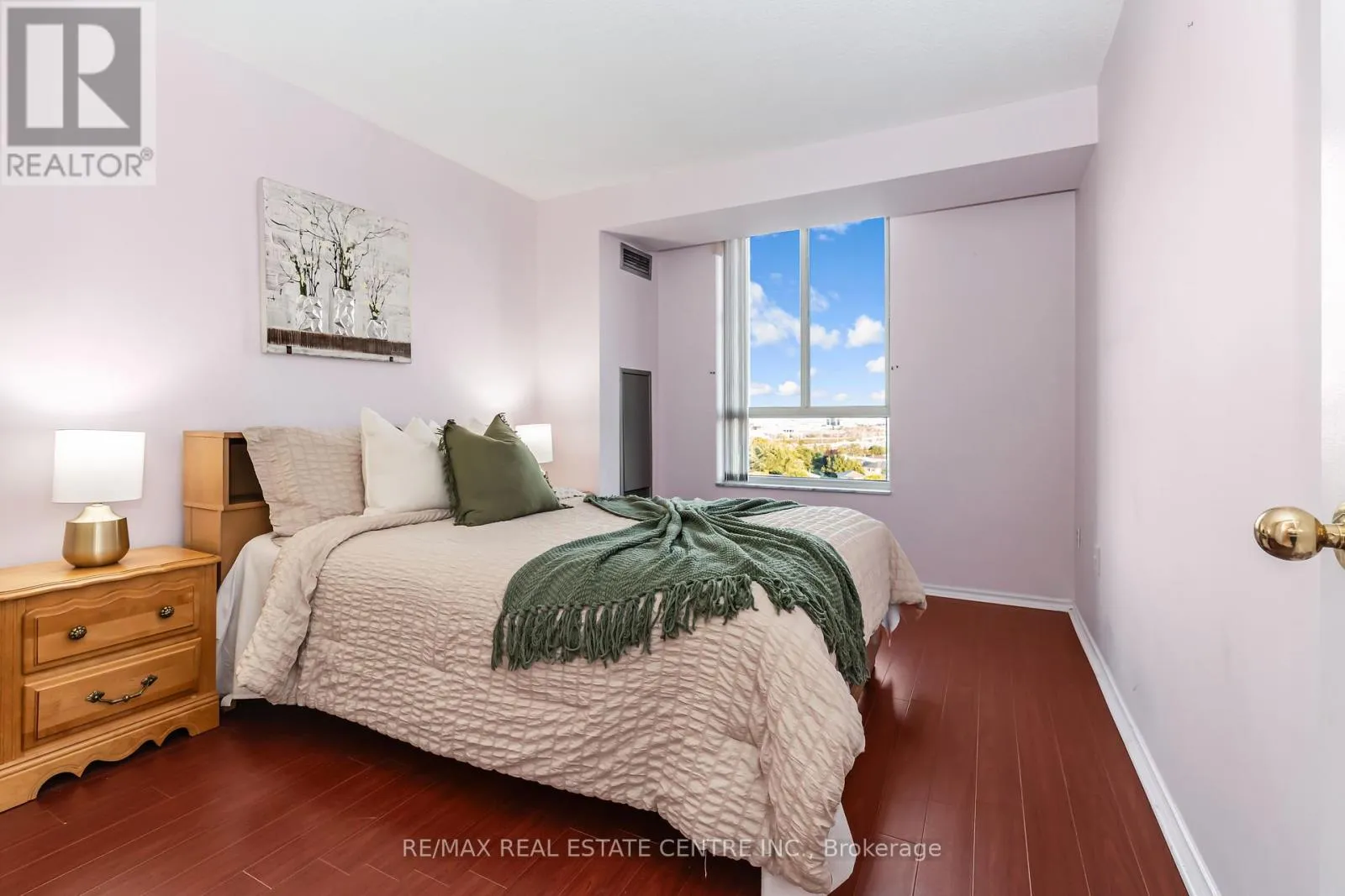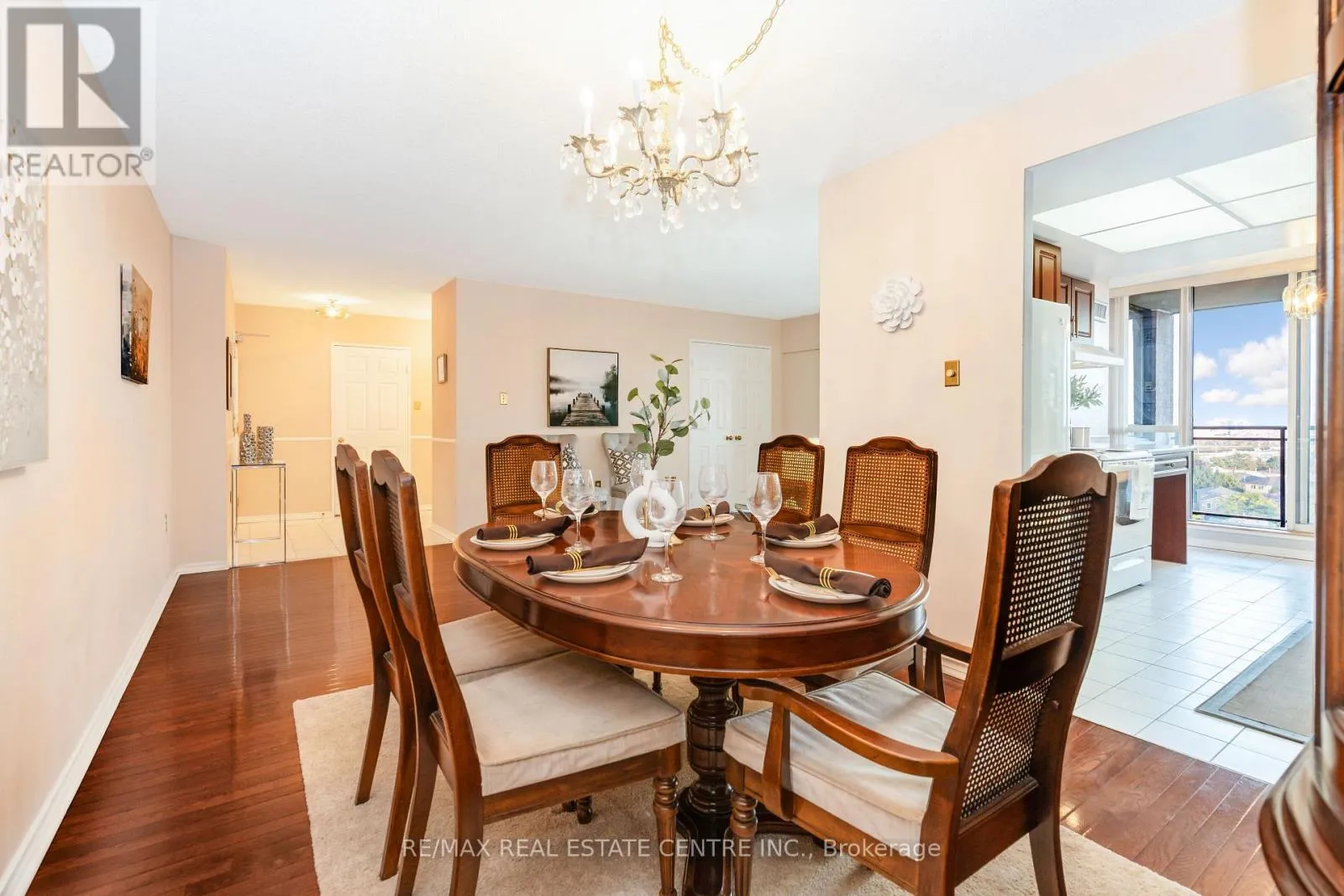Hurontario St & Ray Lawson Welcome to Crown West, Suite #802 and experience the joys of luxurious Condo living in a very well- maintained building. This gorgeous, bright and spacious 3 bedroom + den, 2 bathroom suite, offers 1,456 sq. ft. of comfortable living space, with stunning hardwood floors throughout; beautiful sun-drenched south-facing views and two exclusive underground parking spots plus one locker.The functional layout boasts a large open living and dining area, a beautiful adjoining den flooded with natural light from the wall-to-wall windows, and a bright welcoming kitchen with tons of cabinet space. From the kitchen, a private balcony opens up to an unobstructed, breath-taking view, both day and night, of the City of Mississauga. The primary bedroom includes a walk-in closet with custom built-ins and a private 4-piece ensuite with a soaker tub and walk-in shower. A full-size laundry room and ample closet space make everyday living a breeze. All utilities + internet are included, offering stress-free budgeting! Building Amenities include: 24-hour gated security, Gym, squash & tennis courts, a party room and library, walking trails nestled on beautifully landscaped grounds as well as an outdoor pool and BBQ area to enjoy the outdoors with family and friends . This sought after location (Major Intersection Hurontario and Ray Lawson Dr.) is the epitomy of convenience with quick access to Highway 401/407, steps to Grocery stores, Banks, Parks, Schools, Fletchers Creek Trail, and central to Shoppers World shopping plaza, GO/ZOOM connections and places of worship. This move-in-ready suit is perfect for families, downsizers, or anyone seeking resort-style living with total convenience and comfort. Priced to SELL!!! (id:27476)