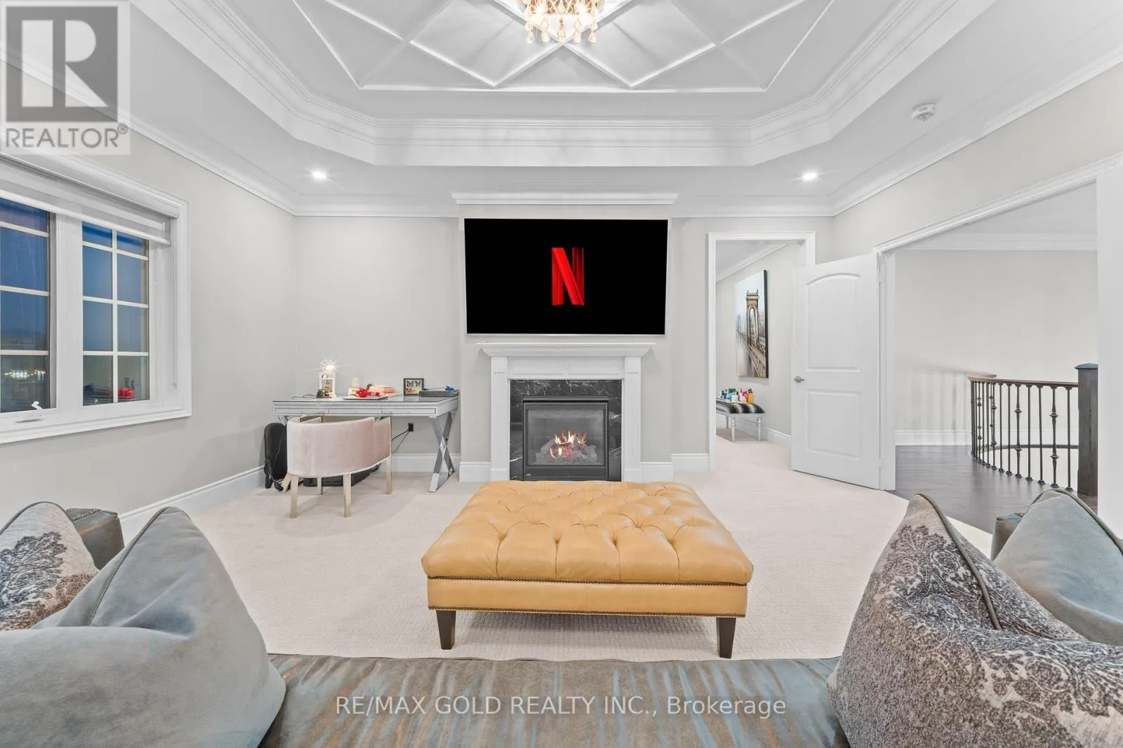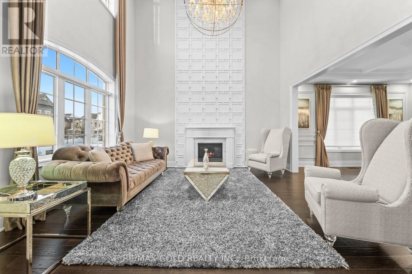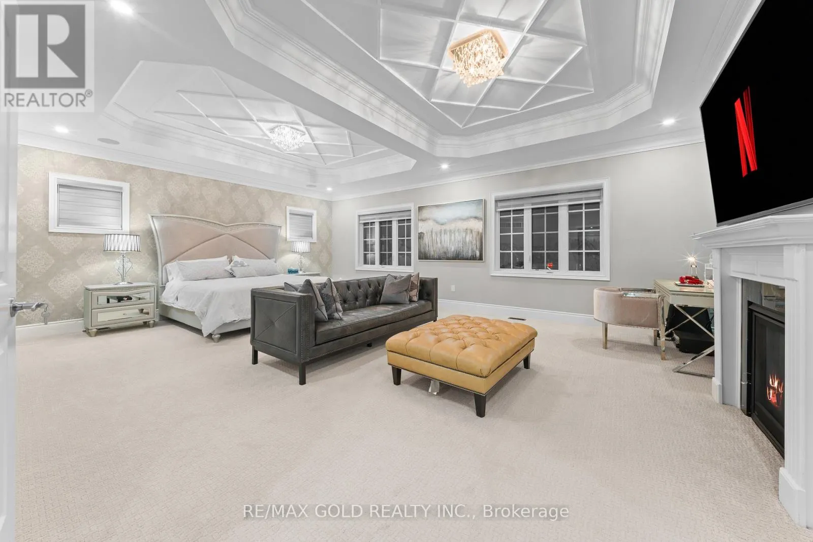 Cross Streets: COUNTRYSIDE / MCVEAN. ** Directions: MAYFIELD / MCVEAN. Welcome to 34 Yellowhammer Cres, an exceptional custom-built luxury detached residence situated on a rare 75.8 -ft wide premium Ravine lot with a Walk-Out Basement. This one-of-a-kind home offers a 3+1 (4-car) Garage, an impressive 9-Car private driveway, and a 8 feet grand double-door entrance, delivering outstanding curb appeal and functionality.A PRIVATE ELEVATOR services all three levels-basement, main floor, and second floor-a rare and highly desirable feature. The home boasts 10-ft ceilings on the main floor and 9-ft ceilings on the second floor and basement, complemented by high-end chandeliers, extensive pot lighting, custom wainscoting, and crown molding throughout.The main floor offers an elegant and functional layout with separate formal living and dining rooms, a large office, Servery with wet bar, walk-in pantry, breakfast area, family room, laundry, and mudroom. The living room features an open-to-above ceiling, gas fireplace, and large windows. The show-stopping chef's kitchen includes extended custom cabinetry, commercial-grade WOLF/SUB-ZERO Appliances, oversized island with undermount sink, quartz countertops and backsplash, upper cabinets, and a built-in recipe desk. The family room showcases a custom coffered ceiling, built-in cabinetry, gas fireplace, and ravine views.The second floor features 4 spacious bedrooms, all with private ensuite washrooms. The primary suite offers a 10-ft coffered ceiling, gas fireplace, large windows, a luxurious 6-pc ensuite with freestanding tub, frameless glass shower, private toilet room, and a walk-in closet with custom organizers.The finished walk-out basement includes 2 large bedrooms, each with attached 4-pc ensuite washrooms, recreation and sitting areas, party space, gym area, a luxury powder room, and rough-ins for bar, sauna, or kitchen. Additional features include 2 owned furnaces, 2 owned A/C units, owned hot water tank, exterior pot lights, and upgraded driveway lighting. A true luxury offering. (id:27476)