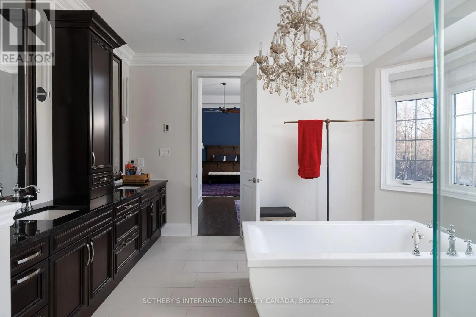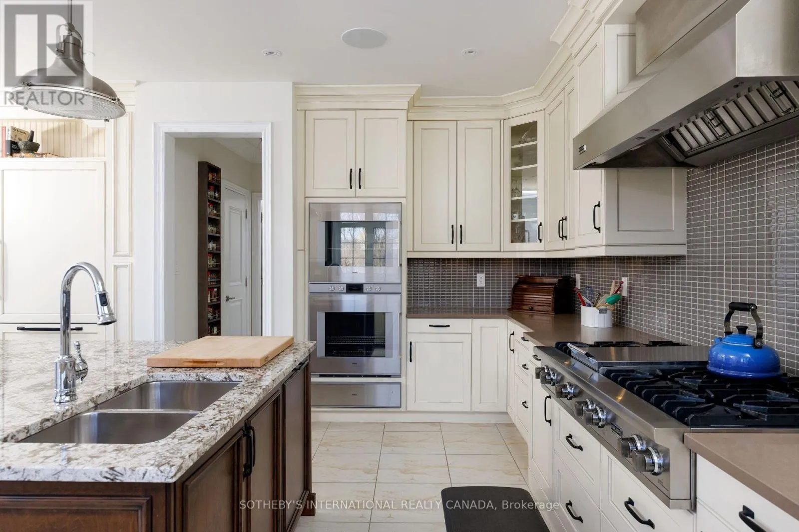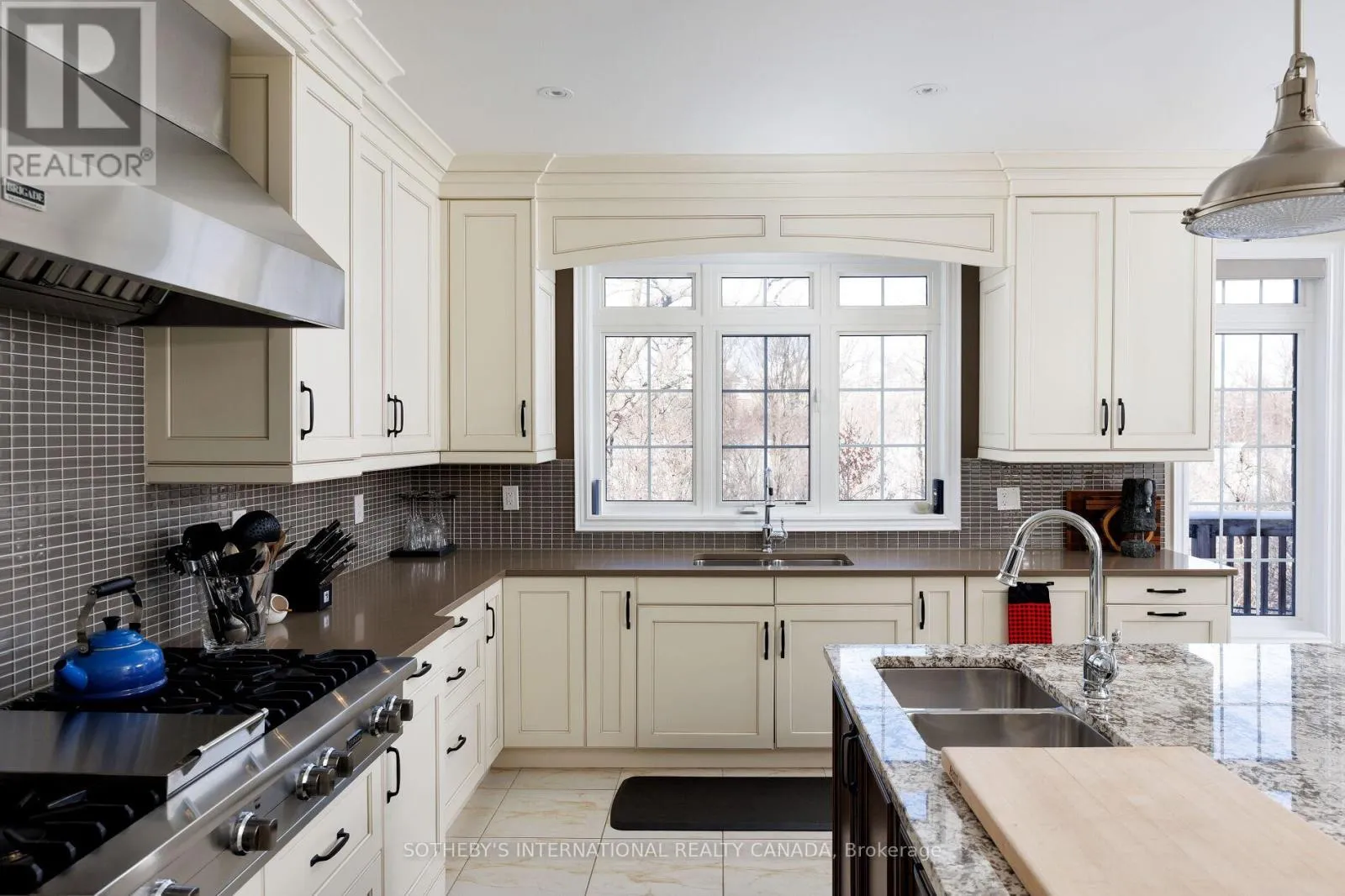 Royal W Drive & Queen Street W Set on a premium ravine lot in prestigious Credit Ridge, this exceptional luxury residence is offered for lease. Featuring over 5,300 sq. ft. of beautifully finished living space, this home combines elegant design with everyday functionality. A grand double-door entry welcomes you into an interior highlighted by wide-plank oak floors, crown moulding, and designer lighting throughout.The chef-inspired kitchen is ideal for entertaining, showcasing a large island seating ten, quartz and granite countertops, walk-in pantry, paneled refrigerator/freezer, double ovens, dual dishwashers, and under-cabinet lighting. The breakfast area opens to a deck overlooking the Credit River, a private landscaped yard and an impressive 18x36 saltwater pool. The main level also includes a spacious living room with a striking three-sided gas fireplace and a custom home office with built-in cabinetry.The upper level offers a secondary family room with gas fireplace and a luxurious primary suite featuring coffered ceilings, freestanding soaking tub with chandelier, glass rain shower, heated floors, and a generous walk-in closet. All additional bedrooms feature walk-in closets and access to ensuite or semi-ensuite bathrooms.The fully finished walkout lower level includes a separate entrance, fifth bedroom, and full bathroom, ideal for guests or extended family. Additional features include solid oak staircases with wrought iron spindles, custom window coverings, upgraded light fixtures, central air, central vacuum, security cameras, built-in speakers, ceiling fans in all bedrooms, built-in TVs, garage door openers, and owned hot water tank. Professionally painted and decorated, comes fully furnished. Conveniently located just 20 minutes from Pearson Airport. Pricing is all-inclusive. (id:27476)
