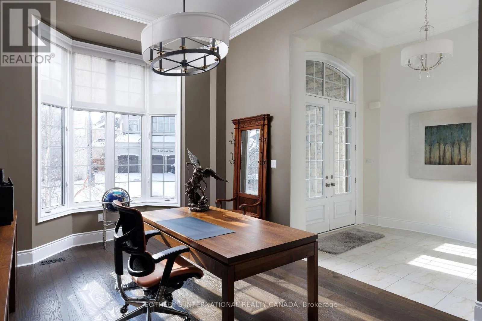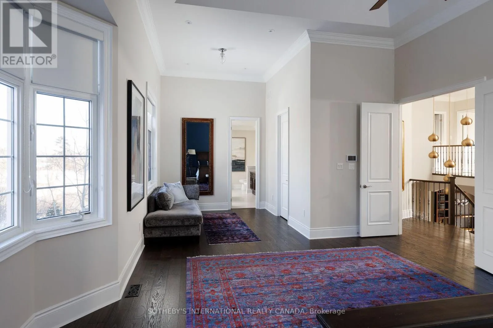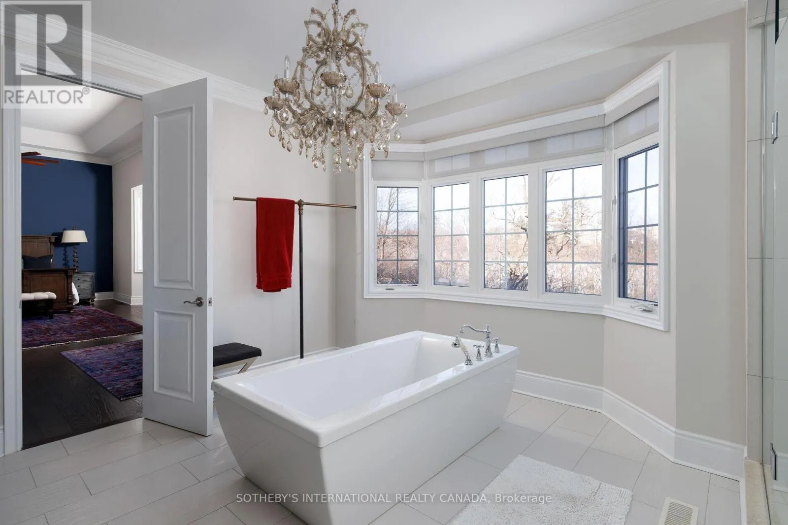Royal W Drive & Queen Street W Set on a premium ravine lot in prestigious Credit Ridge, this exceptional luxury residence is offered for lease. Featuring over 5,300 sq. ft. of beautifully finished living space, this home combines elegant design with everyday functionality. A grand double-door entry welcomes you into an interior highlighted by wide-plank oak floors, crown moulding, and designer lighting throughout.The chef-inspired kitchen is ideal for entertaining, showcasing a large island seating ten, quartz and granite countertops, walk-in pantry, paneled refrigerator/freezer, double ovens, dual dishwashers, and under-cabinet lighting. The breakfast area opens to a deck overlooking the Credit River, a private landscaped yard and an impressive 18x36 saltwater pool. The main level also includes a spacious living room with a striking three-sided gas fireplace and a custom home office with built-in cabinetry.The upper level offers a secondary family room with gas fireplace and a luxurious primary suite featuring coffered ceilings, freestanding soaking tub with chandelier, glass rain shower, heated floors, and a generous walk-in closet. All additional bedrooms feature walk-in closets and access to ensuite or semi-ensuite bathrooms.The fully finished walkout lower level includes a separate entrance, fifth bedroom, and full bathroom, ideal for guests or extended family. Additional features include solid oak staircases with wrought iron spindles, custom window coverings, upgraded light fixtures, central air, central vacuum, security cameras, built-in speakers, ceiling fans in all bedrooms, built-in TVs, garage door openers, and owned hot water tank. Professionally painted and decorated, comes fully furnished. Conveniently located just 20 minutes from Pearson Airport. Pricing is all-inclusive. (id:27476)
