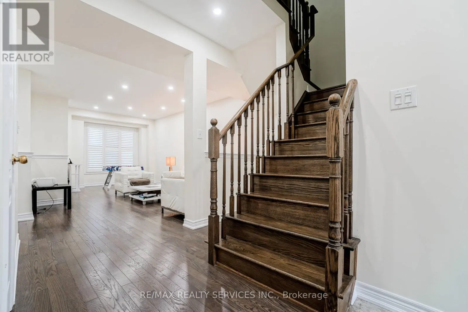 The Gore Rd & Ebenezer Move in Now! Experience luxury living in this beautifully upgraded 3-bedroom end-unit townhome located in a prime Brampton East neighborhood. This carpet-free home features a well-designed open-concept living and dining area, a convenient 2-piece powder room, and an entertainer's kitchen with a center island, granite countertops, stainless steel appliances, and a breakfast area with walk-out to a large private deck-perfect for morning coffee or summer BBQs. The upper level offers three spacious bedrooms, including a luxurious primary retreat with his-and-hers walk-in closets and a private ensuite, along with a second full bathroom-providing two full bathrooms upstairs-and the added convenience of upper-level laundry. The bright walk-out basement features an open-concept recreation room, ideal for a home office, gym, media room, or additional living space. The backyard has been upgraded with concrete (photos are from before the upgrade, no grass now), creating a sleek, low-maintenance outdoor area with no grass or landscaping required-perfect for entertaining friends and family. Prime Brampton East location with excellent access to highways, public transit, parks, community centers, shopping, restaurants, and religious centers-an unbeatable choice for families and commuters alike. (id:27476)