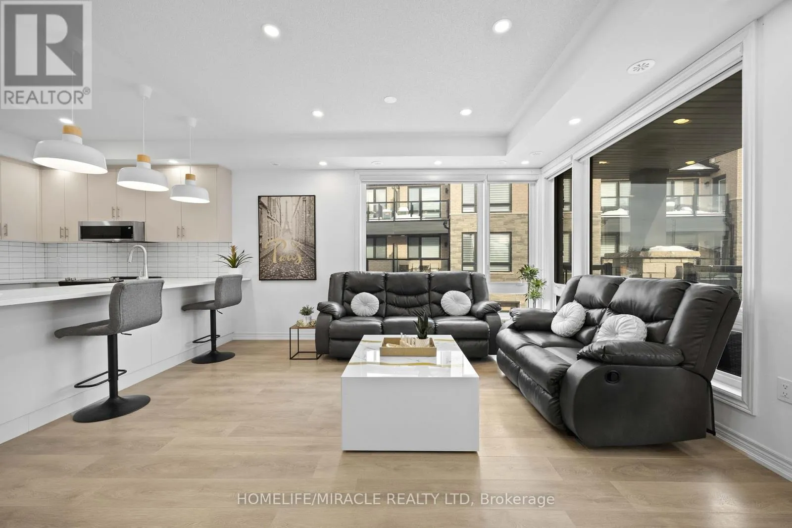 The Gore Rd & Cottrelle Blvd Welcome to Urban Living at Its Finest! This bright and spacious 2-bedroom, 2-bath Urban Town, built by the renowned Mosiak Homes, offers an exceptional blend of modern design, comfort, and convenience. The largest unit in the community, only 4 years old, and fully upgraded throughout, this home features approximately 1,220 sq. ft. + two balconies of 68 sq. ft. each of thoughtfully designed living space, making it ideal for first-time home buyers, small families, and investors. The open-concept main level showcases 9-ft smooth ceilings, elegant laminate flooring, and a sun-filled kitchen with a walk-out to a private balcony-perfect for everyday living and entertaining. Both balconies are walk-outs (68 Sq. Ft. each), providing excellent outdoor space and abundant natural light. The home is tastefully upgraded with premium finishes and top-of-the-line light fixtures, enhancing both style and ambiance throughout. Located in a highly desirable area with easy access to public transit, shopping, schools, and places of worship. Includes 1-car garage parking for added convenience. A fantastic opportunity to enjoy modern urban living with everything you need right at your doorstep. (id:27476)